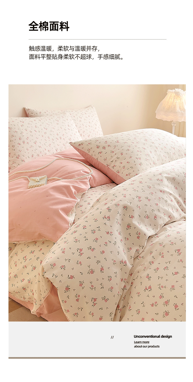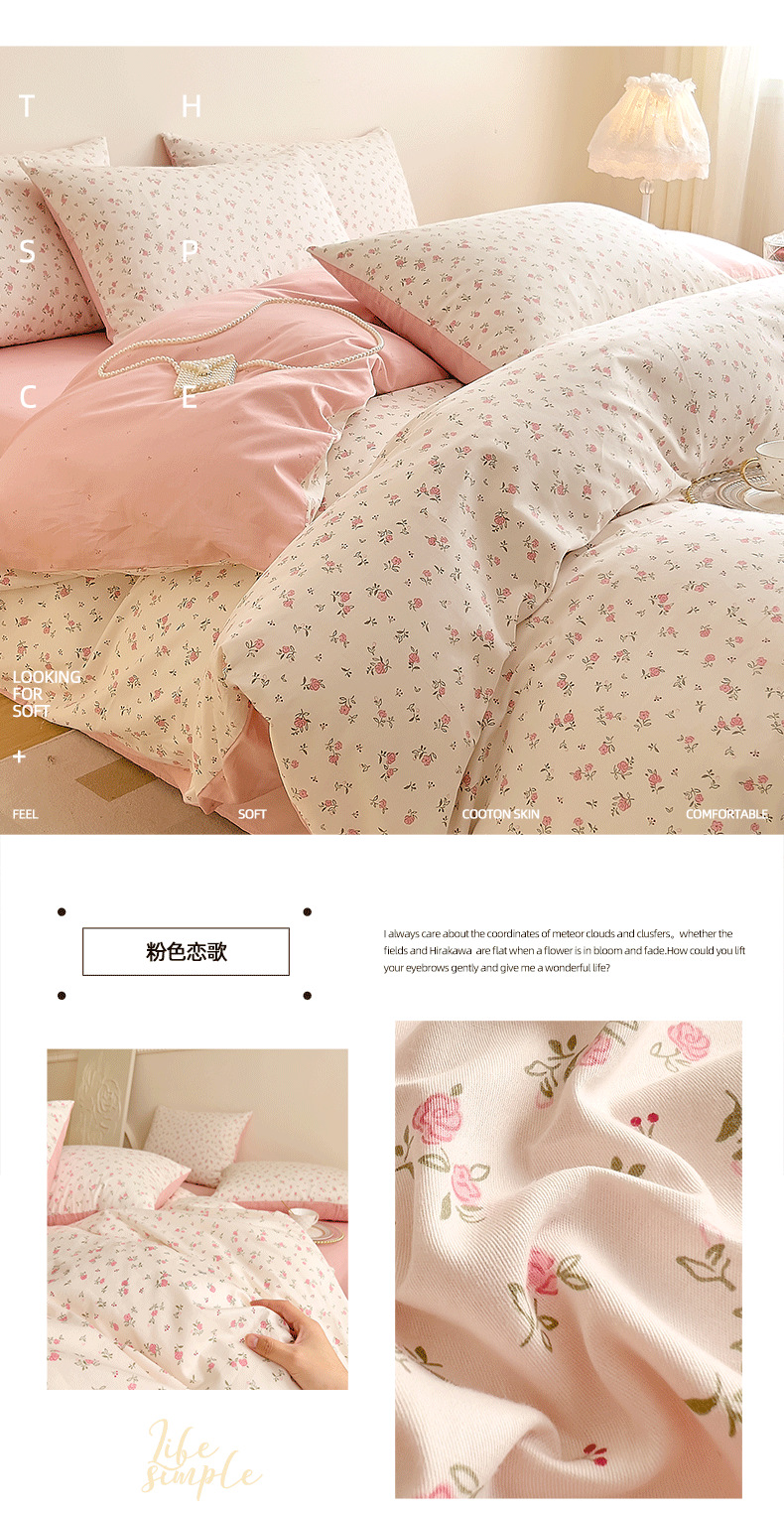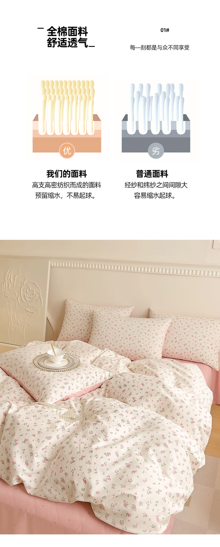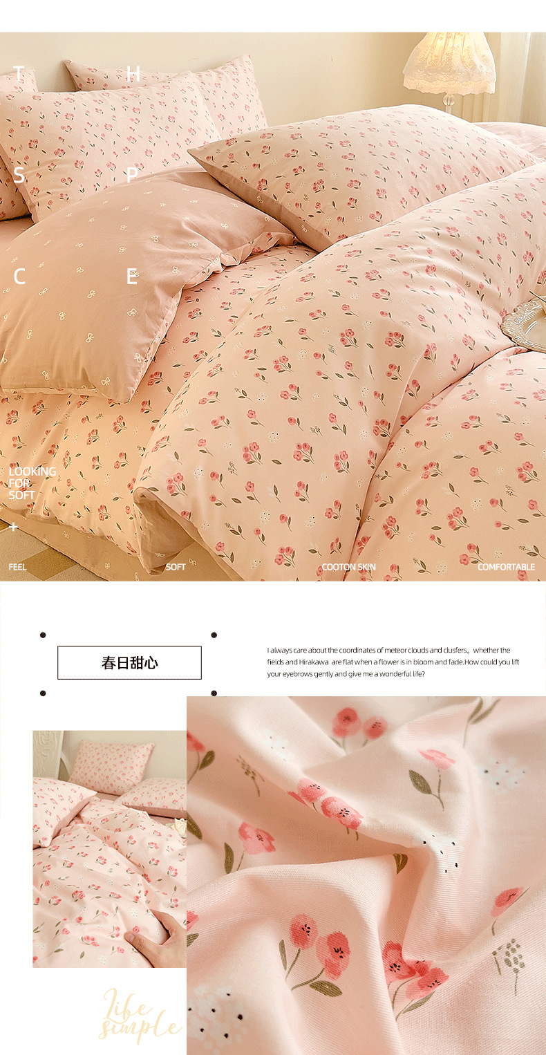 새로운면 작은 꽃 4 피스 면화 학생 기숙사 3 피스 세트는 벌거 벗은 편안한 기계 세척 지원 세대 머리카락을 잘 수 있습니다.스토어 가기