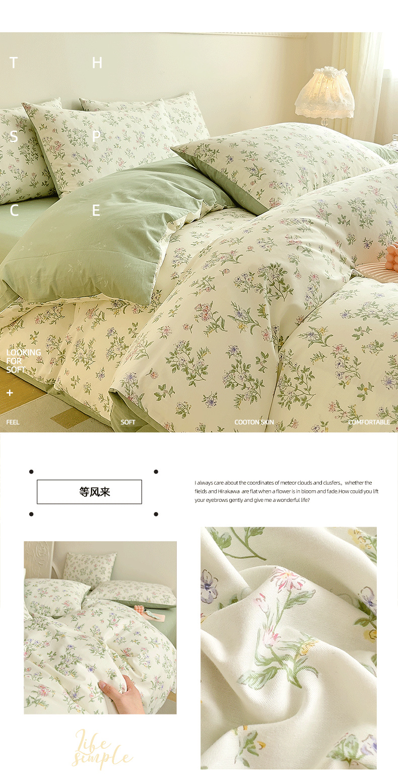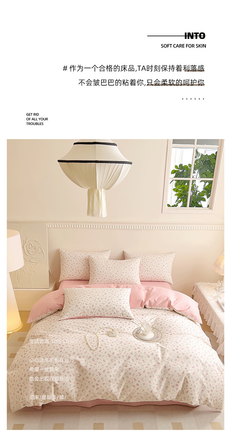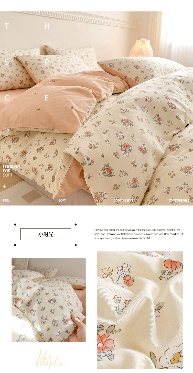 새로운면 작은 꽃 4 피스 면화 학생 기숙사 3 피스 세트는 벌거 벗은 편안한 기계 세척 지원 세대 머리카락을 잘 수 있습니다.스토어 가기