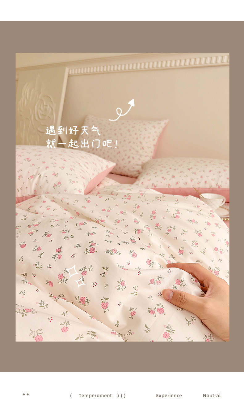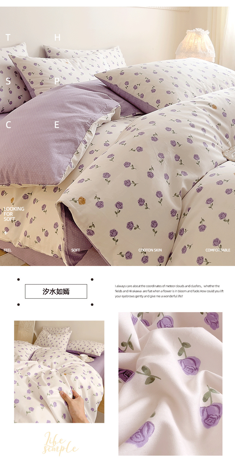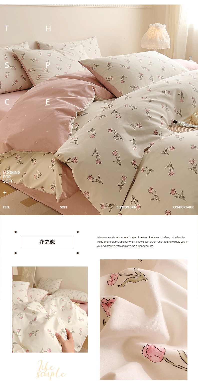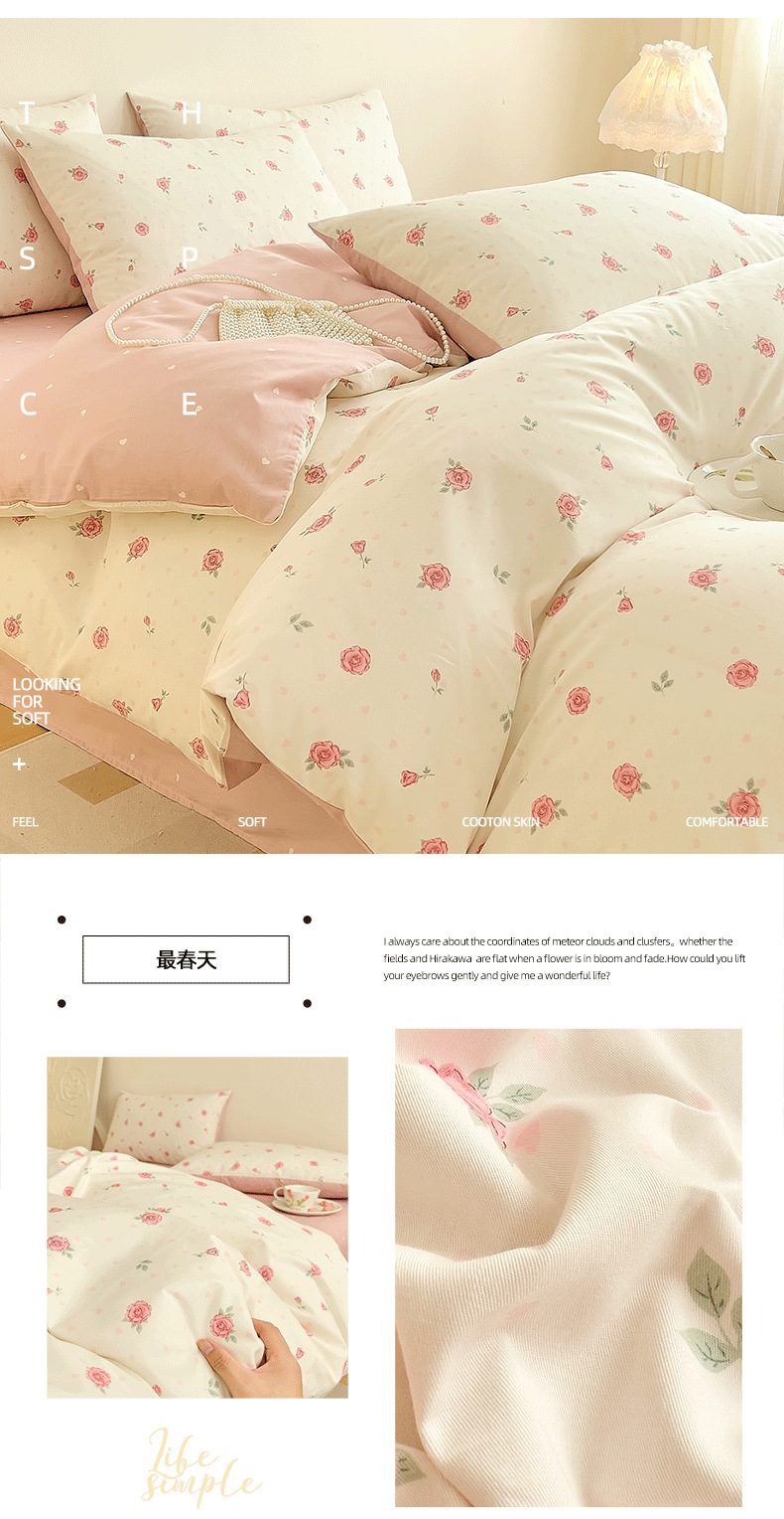 새로운면 작은 꽃 4 피스 면화 학생 기숙사 3 피스 세트는 벌거 벗은 편안한 기계 세척 지원 세대 머리카락을 잘 수 있습니다.스토어 가기