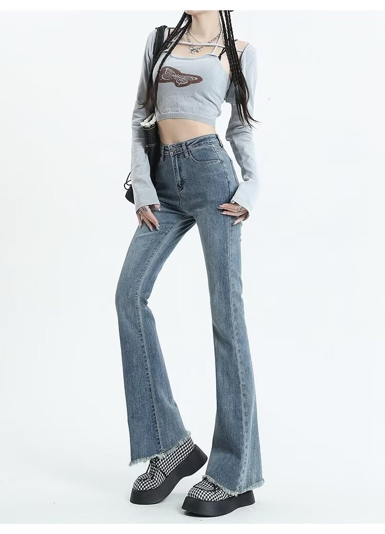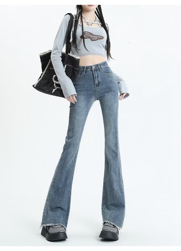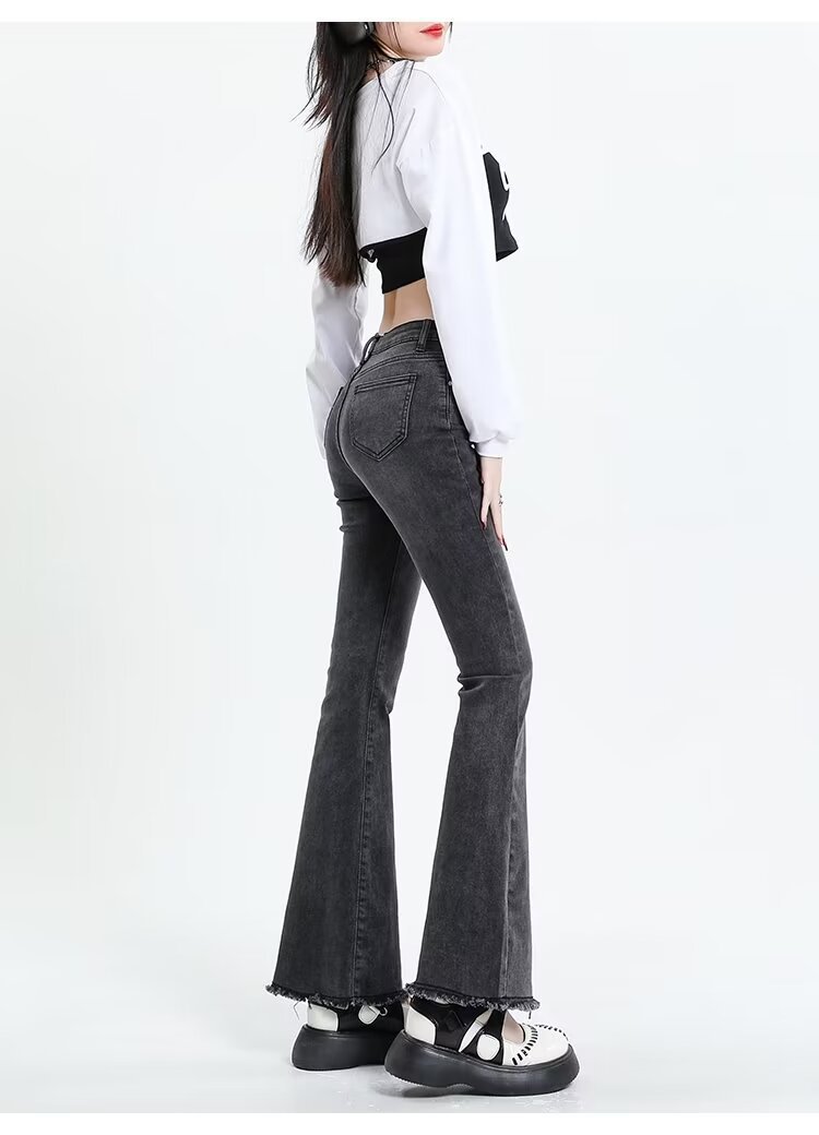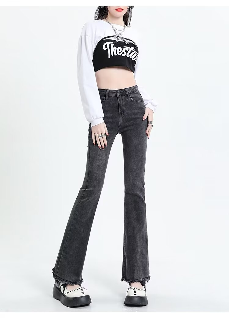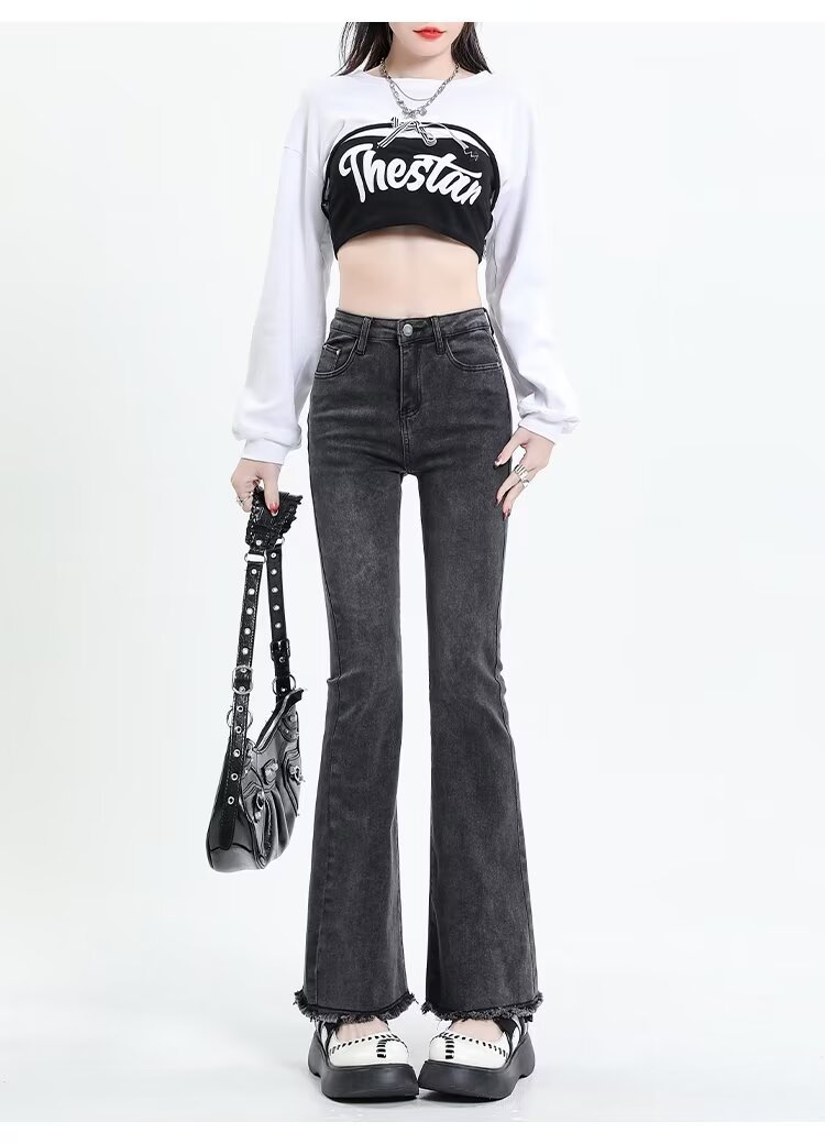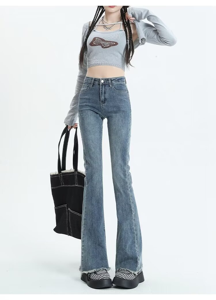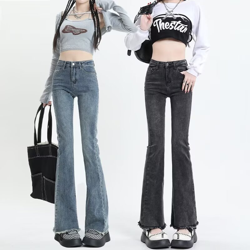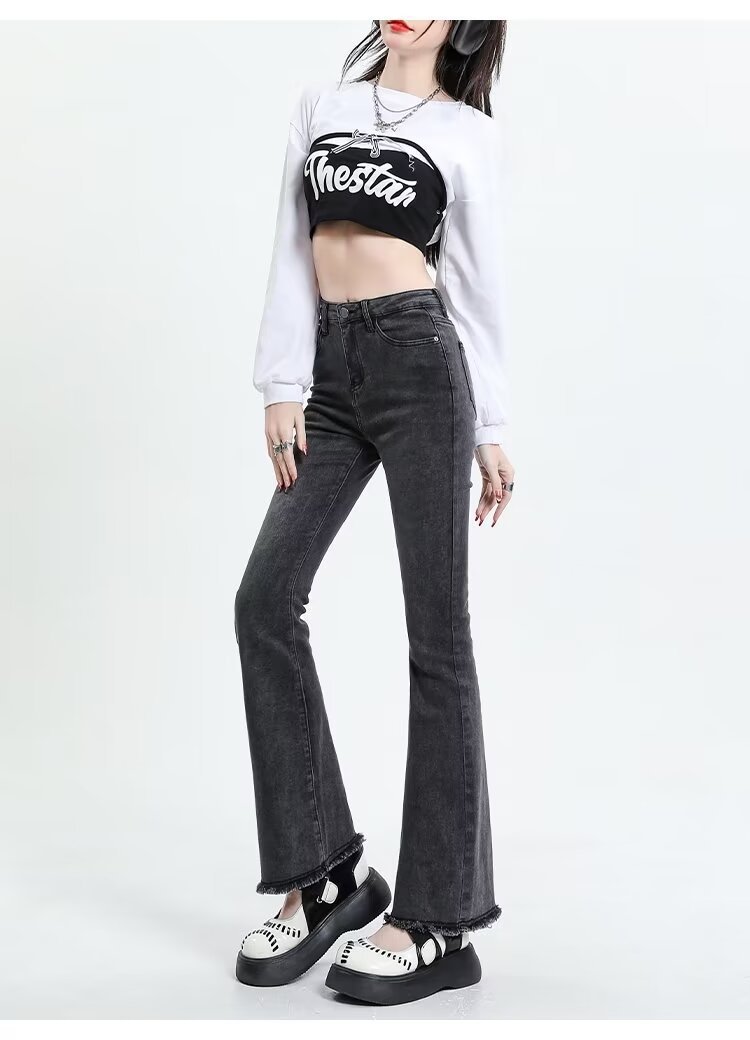 Tassel Weila Jeans 여성용 겨울 기모 두껍게 새로운 높은 허리 엉덩이 리프팅 슬림 핏 슬리밍 따뜻한 뿔 바지