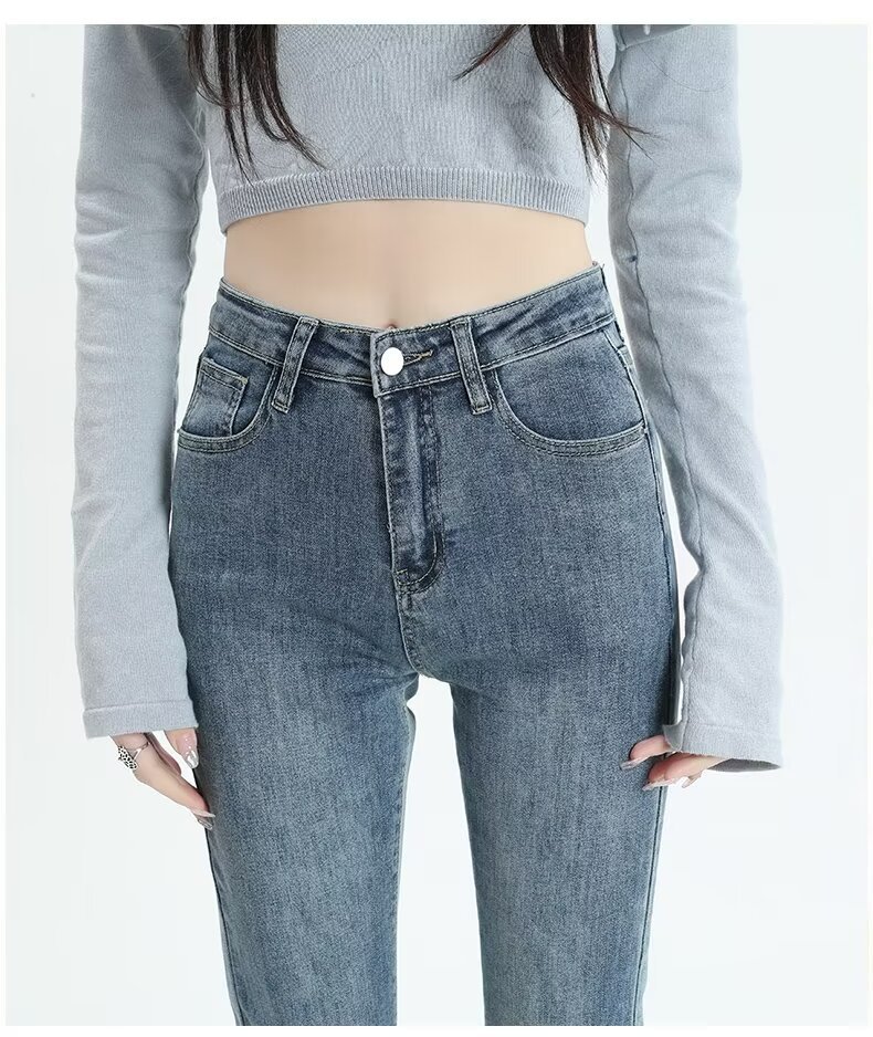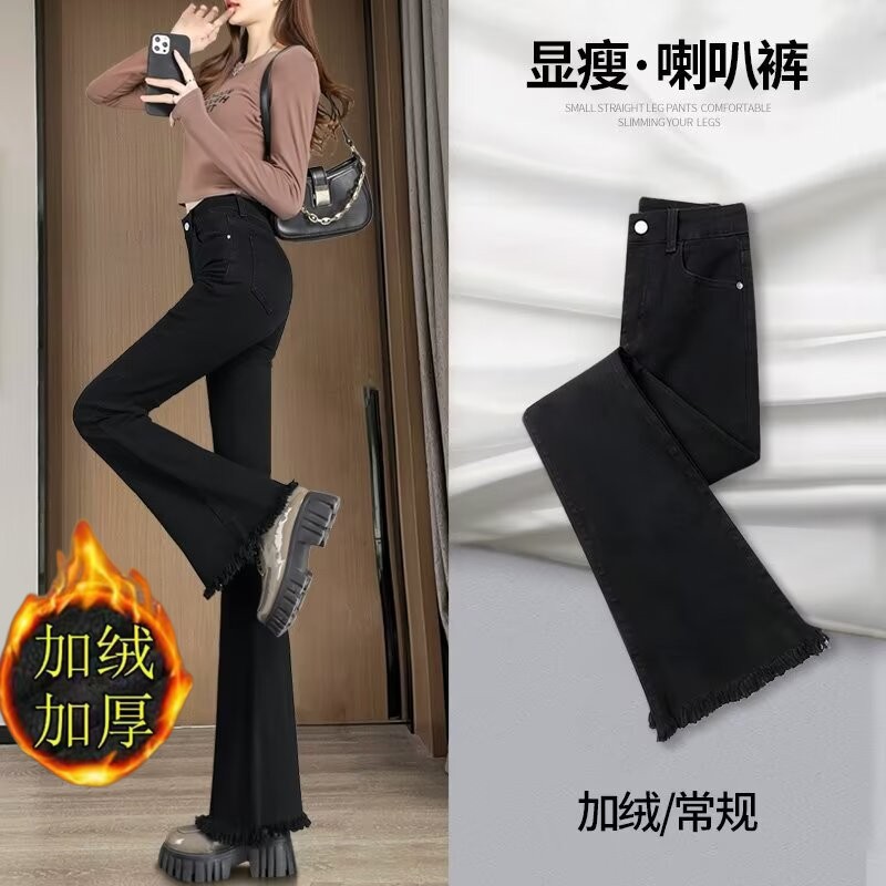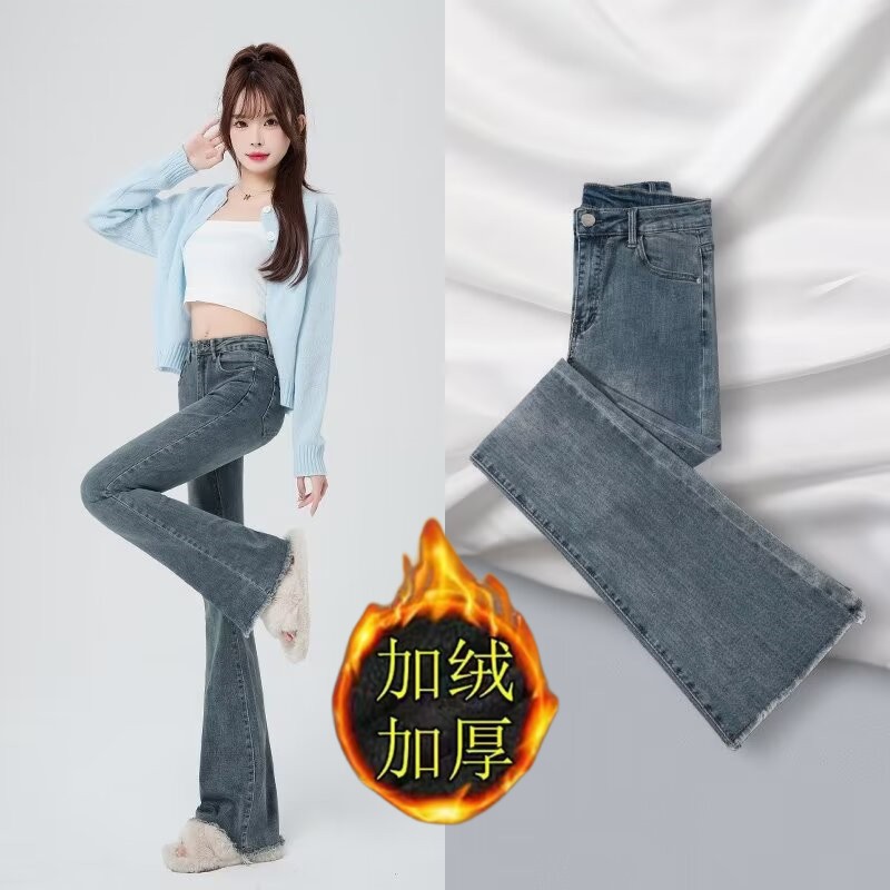 Tassel Weila Jeans 여성용 겨울 기모 두껍게 새로운 높은 허리 엉덩이 리프팅 슬림 핏 슬리밍 따뜻한 뿔 바지스토어 가기