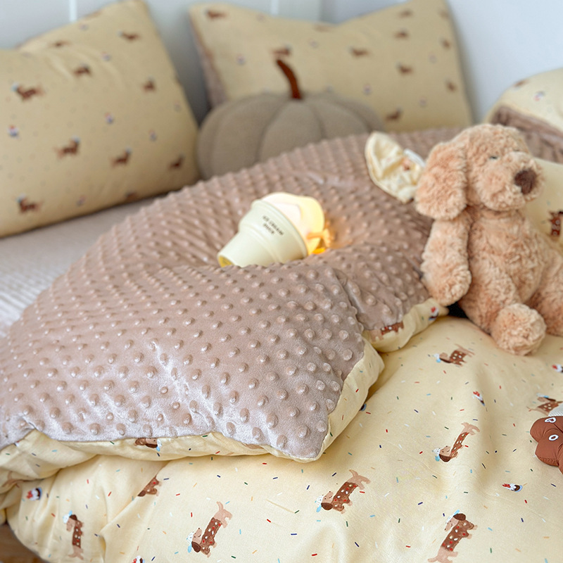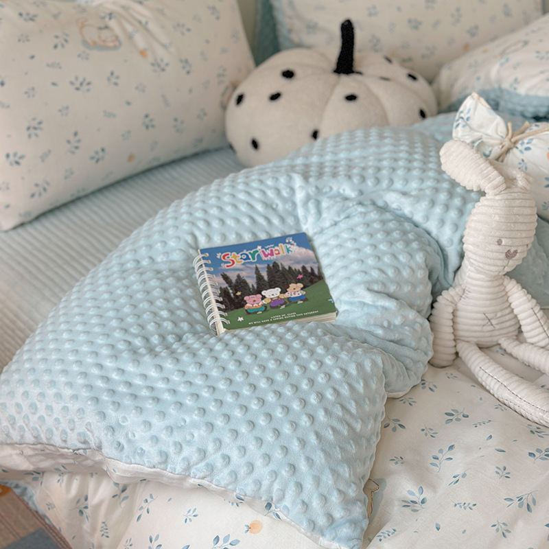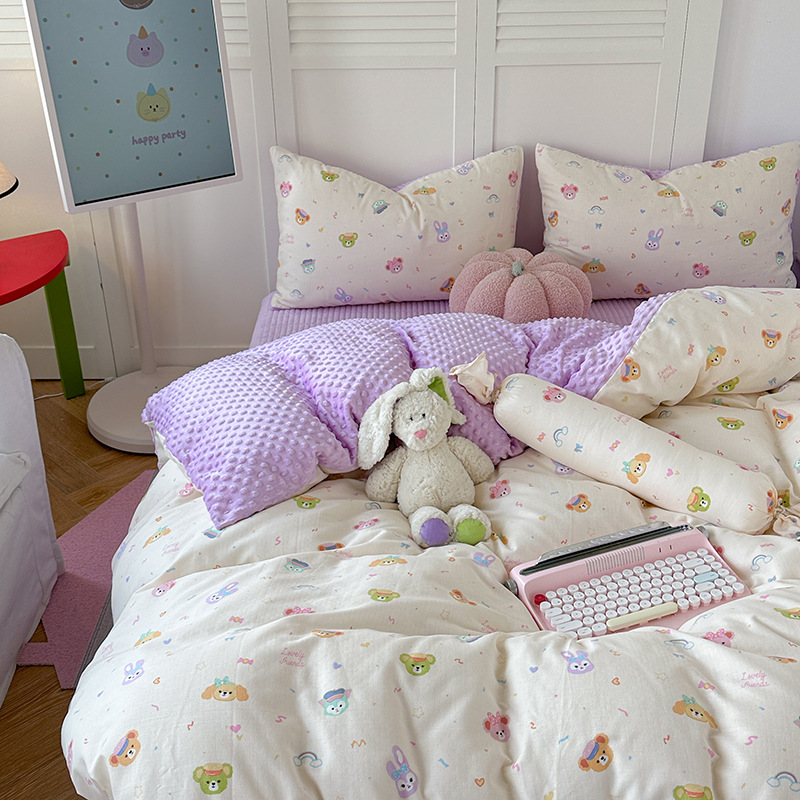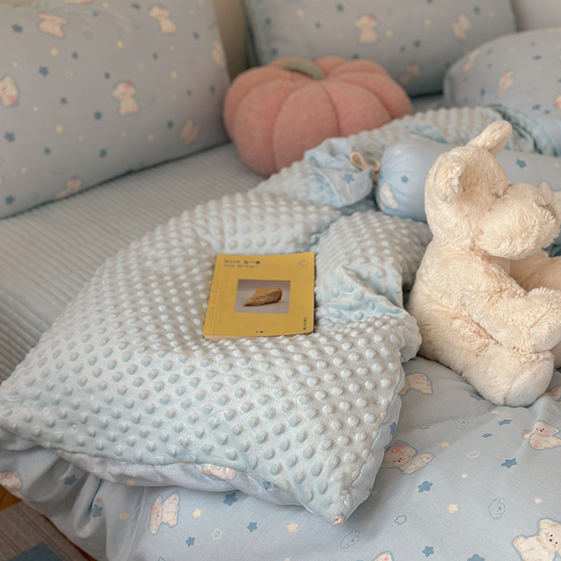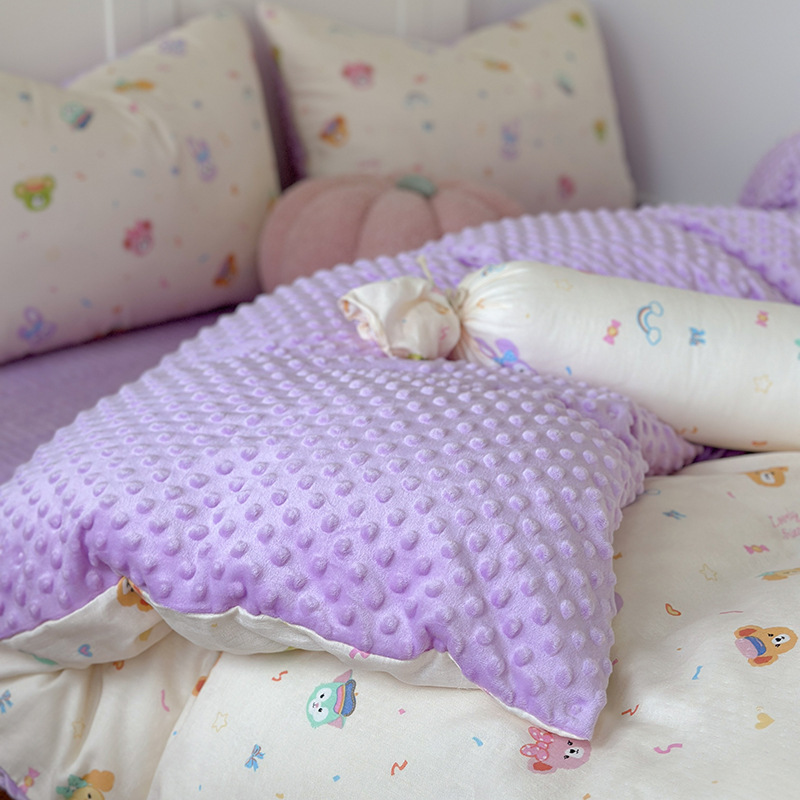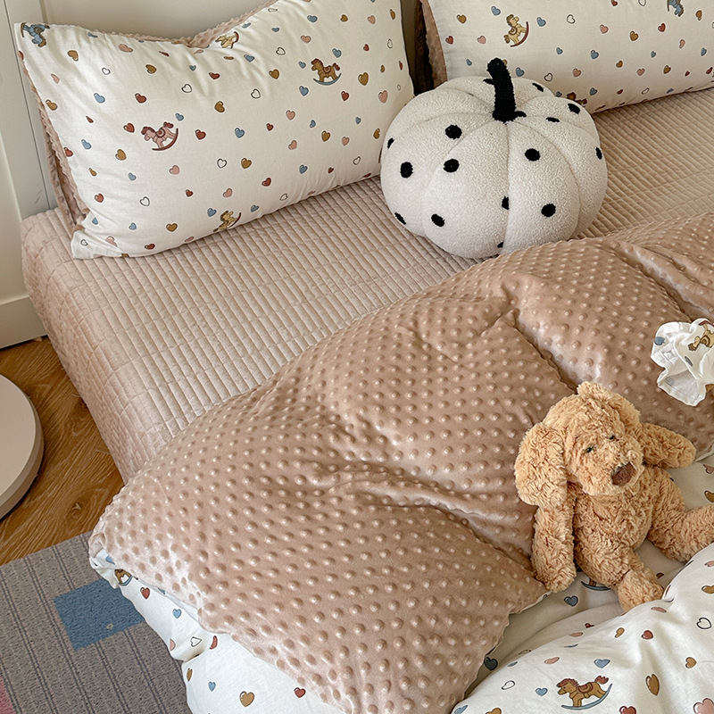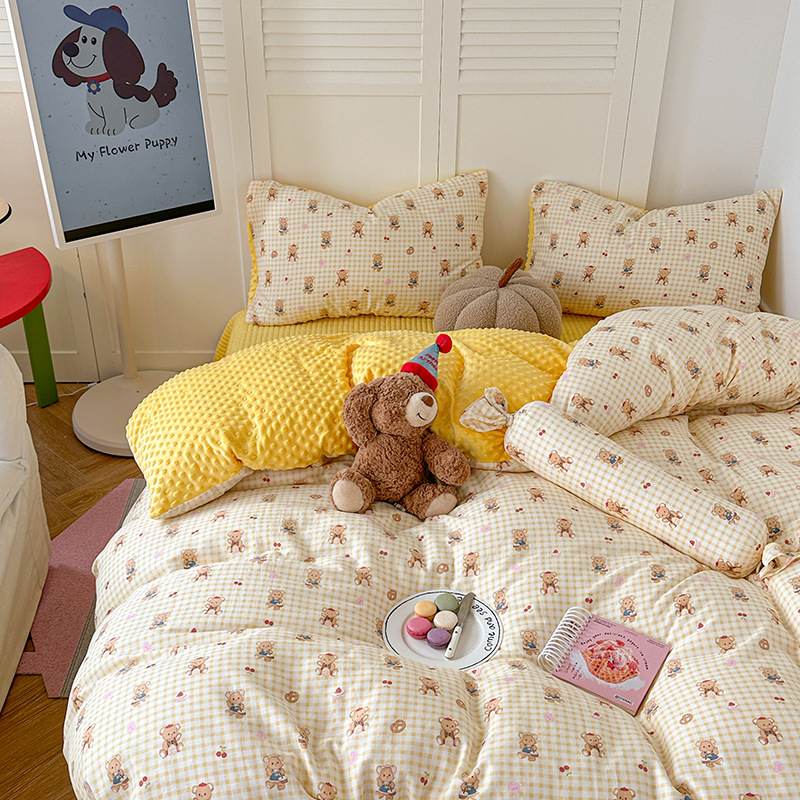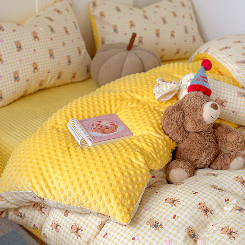 면 더블 원사 빈 벨벳 침구 4 피스 세트 어린이 가을 겨울 산호 벨벳 기모 아기 이불 커버 침대 커버