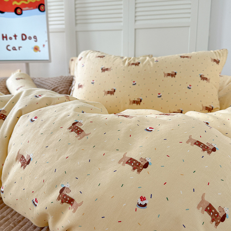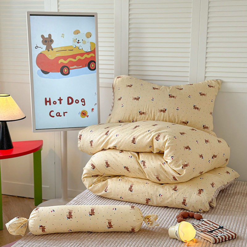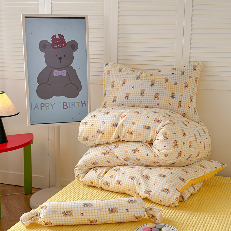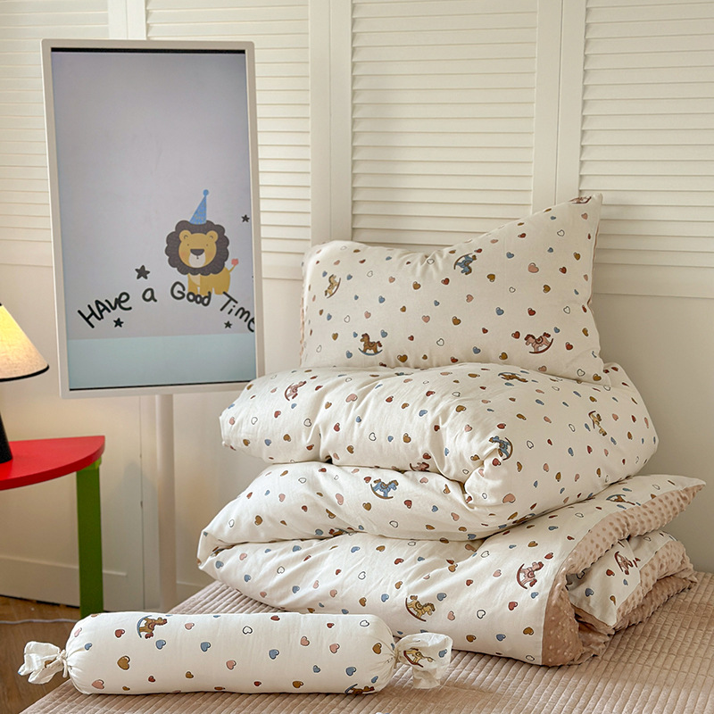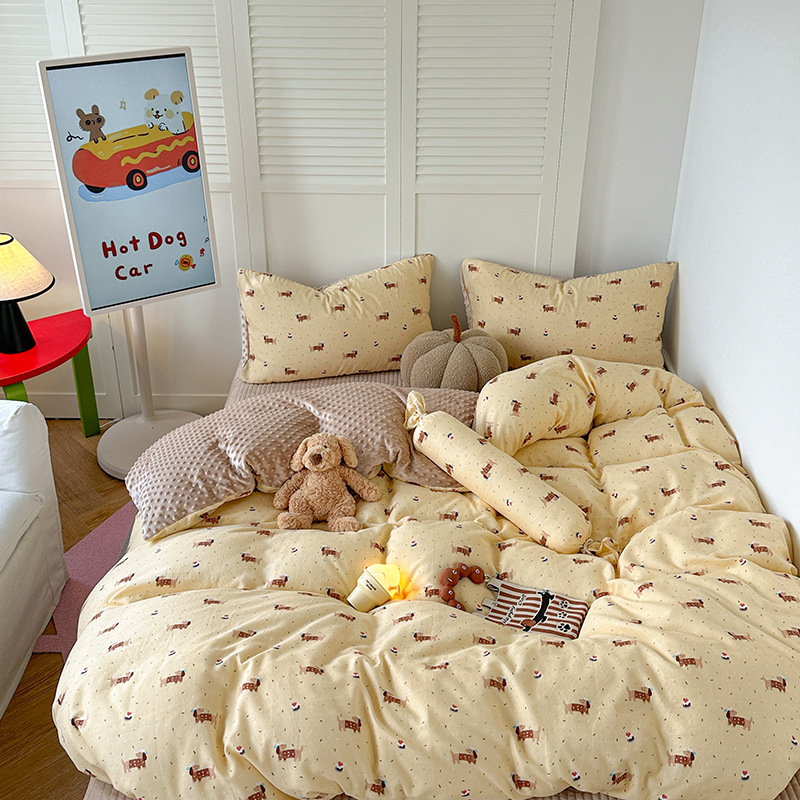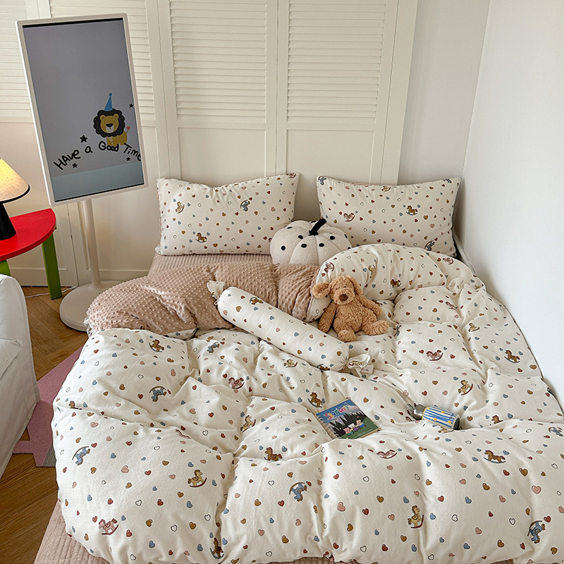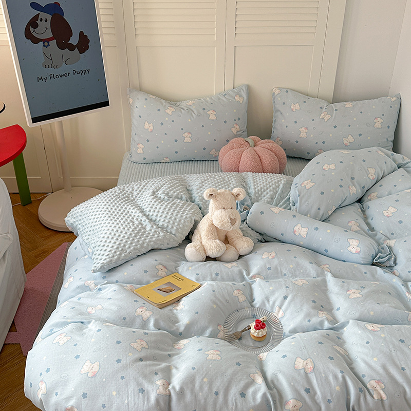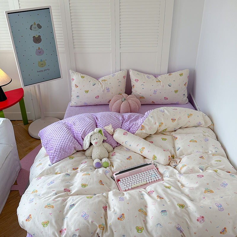 면 더블 원사 빈 벨벳 침구 4 피스 세트 어린이 가을 겨울 산호 벨벳 기모 아기 이불 커버 침대 커버