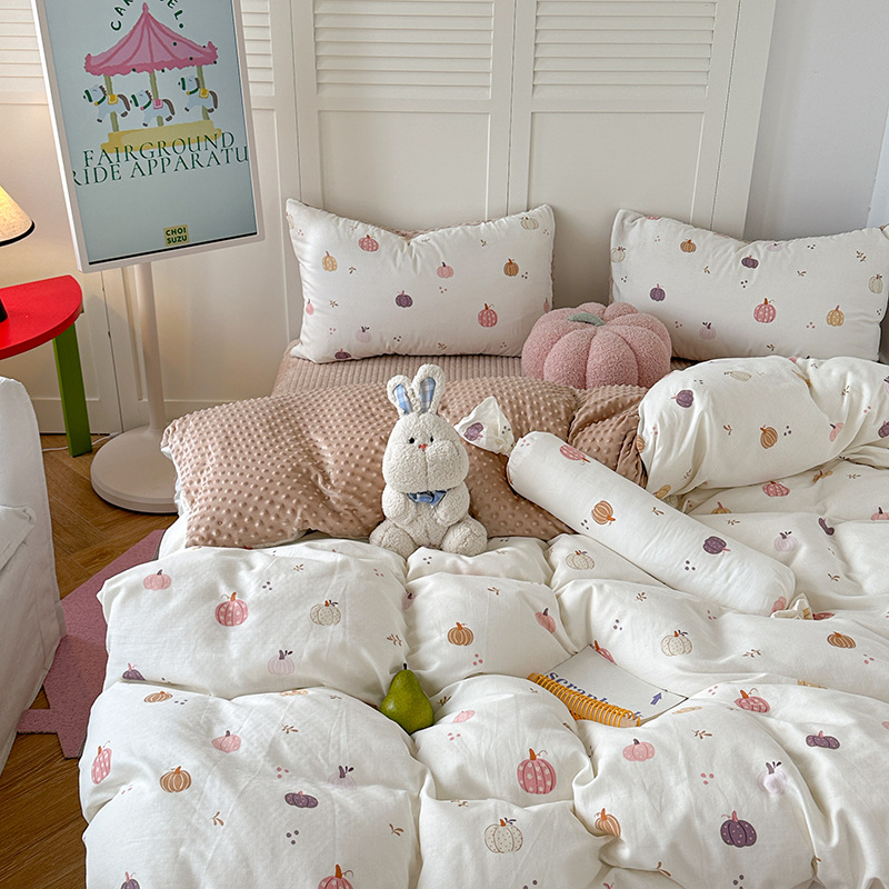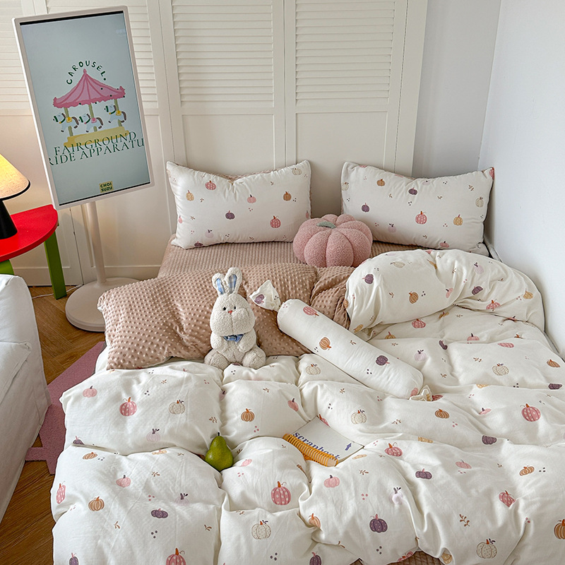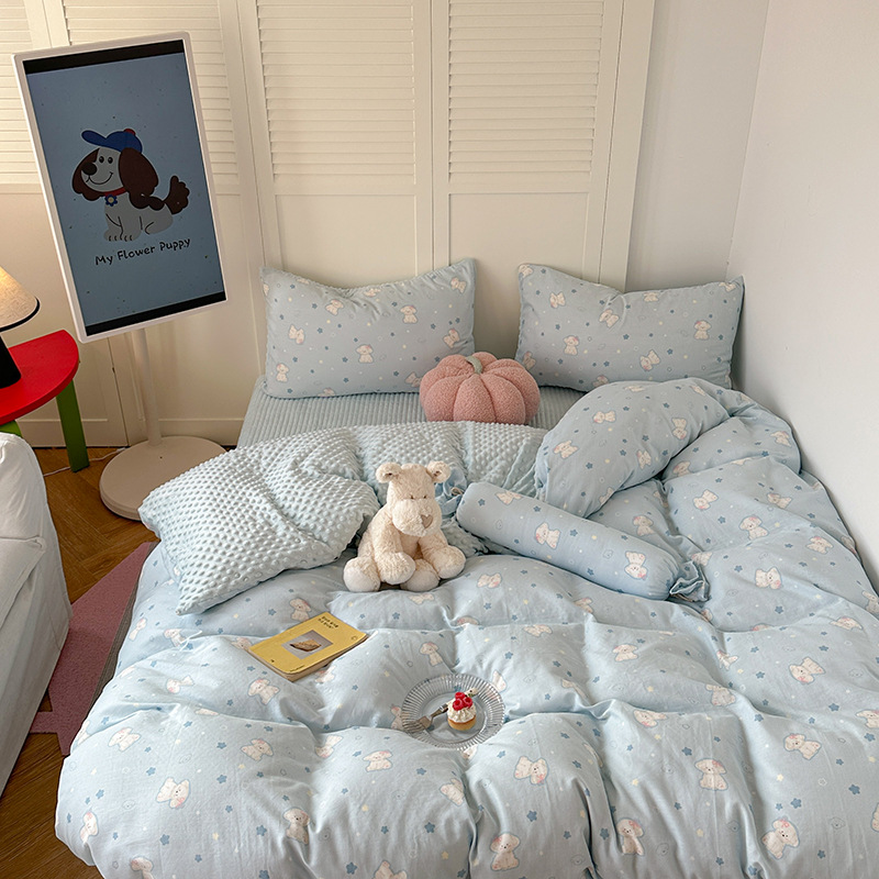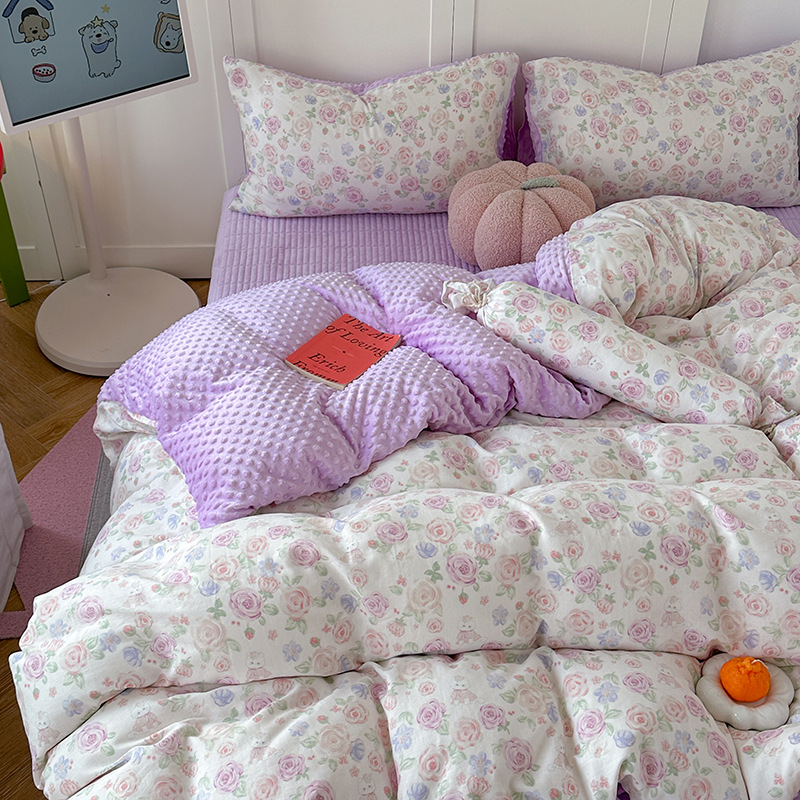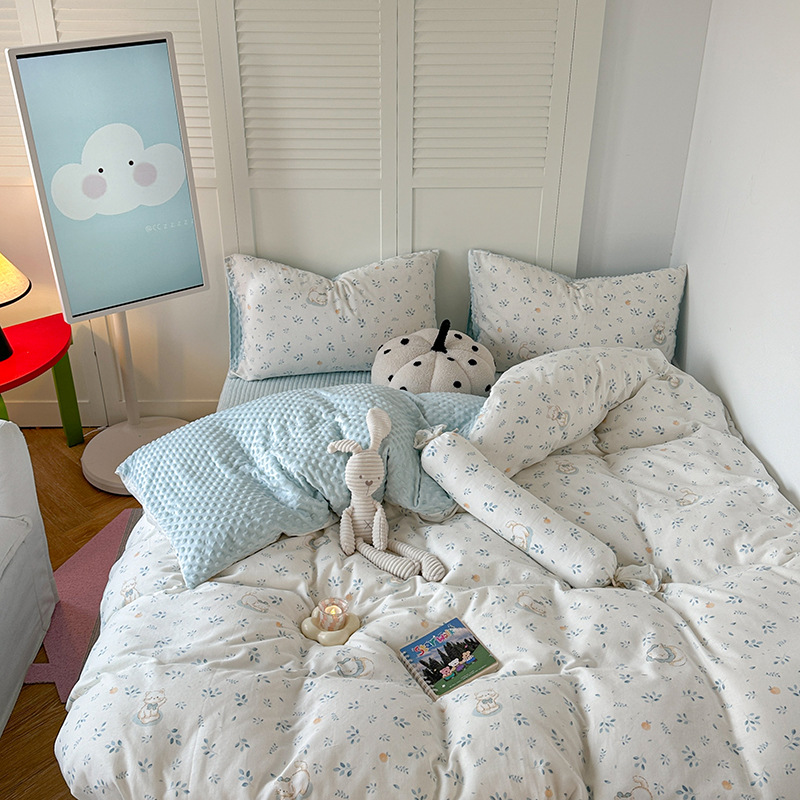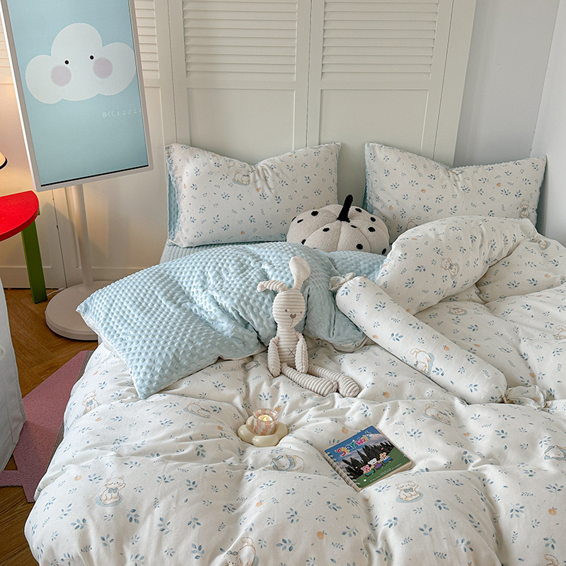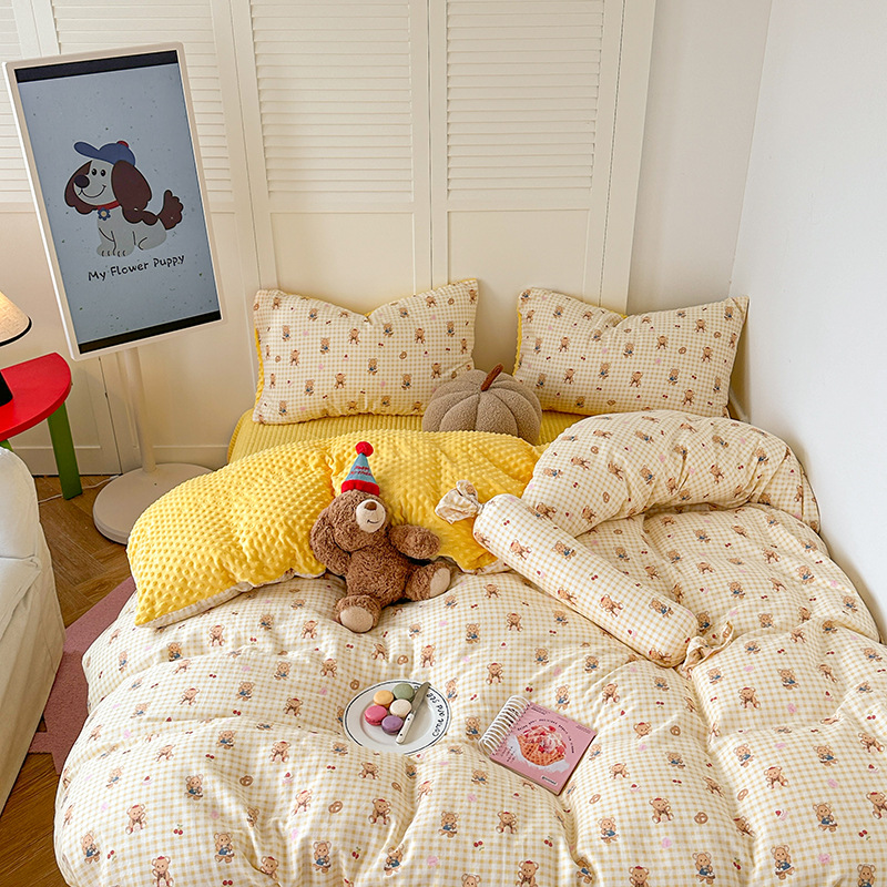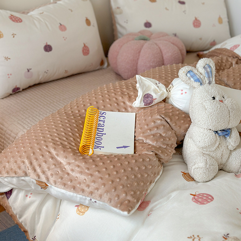 면 더블 원사 빈 벨벳 침구 4 피스 세트 어린이 가을 겨울 산호 벨벳 기모 아기 이불 커버 침대 커버스토어 가기