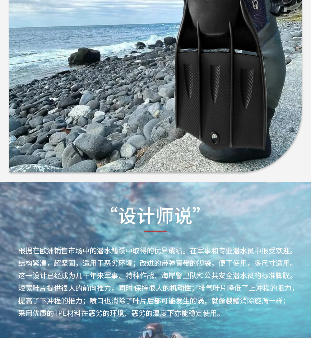 SENHON 다이빙 핀 제트 핀 조정 가능한 스프링 버클 스트랩 전문 스쿠버 훈련 강력한 추력 부츠
