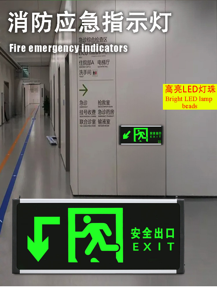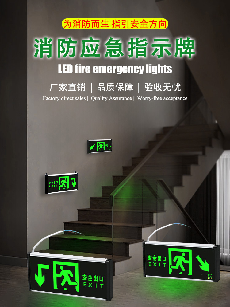 화재 비상 표지판 바닥 통로 탈출 대피 정전 표지판 새 GB 안전 출구 표시기