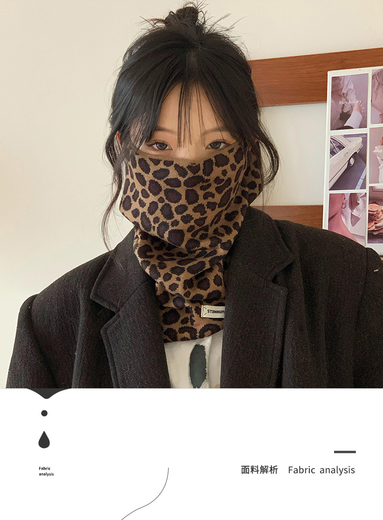 승마 마스크 새로운 방풍 방수 레트로 달콤한 멋진 레오파드 패턴 스카프 따뜻한 질감 유행 우아한 작은 스카프스토어 가기