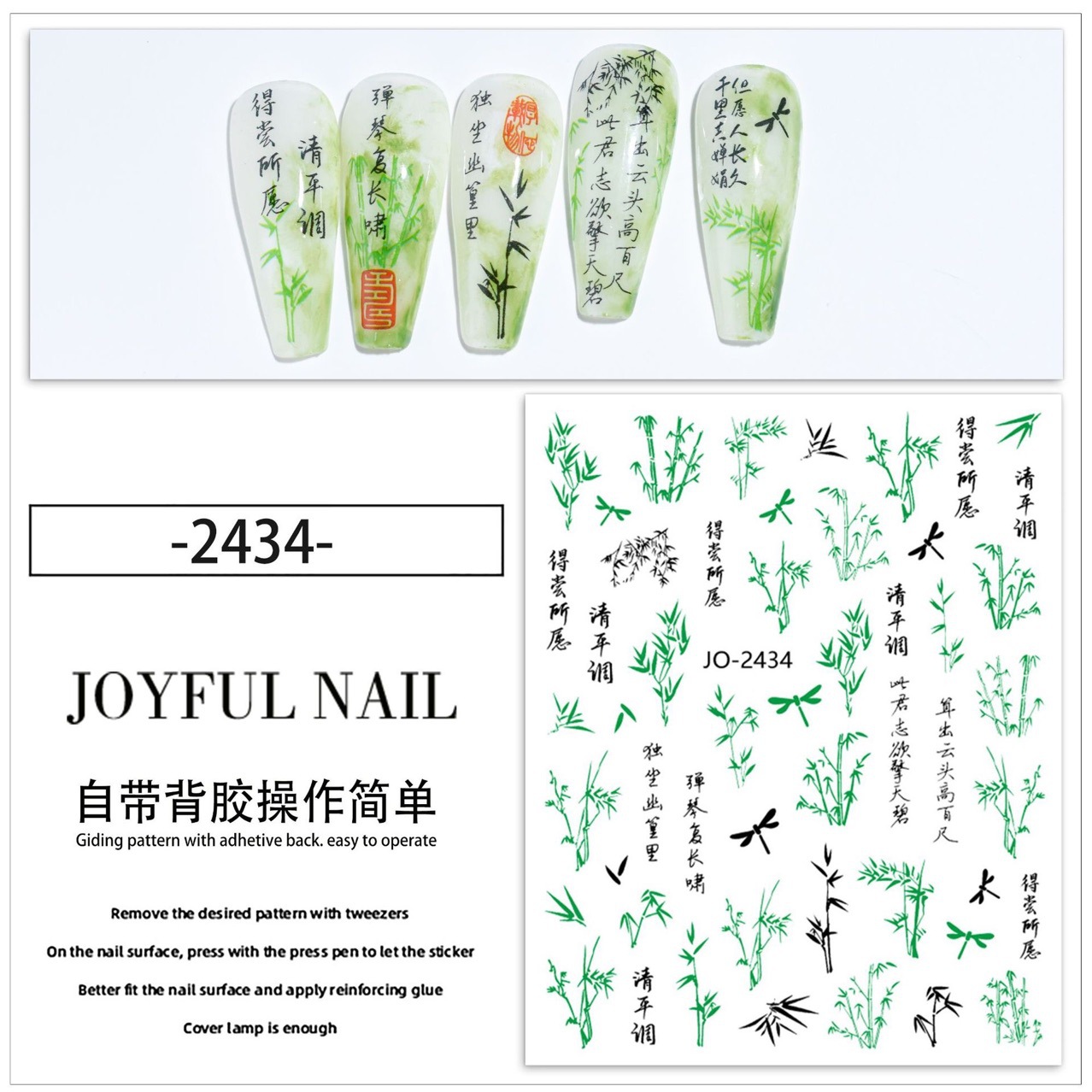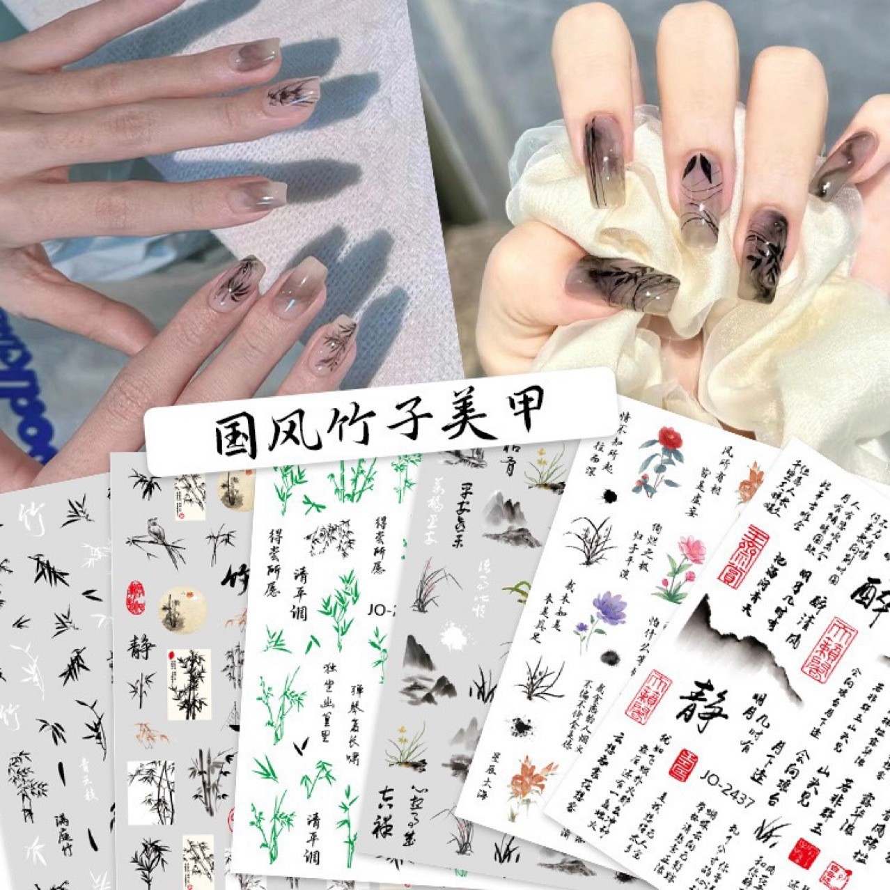 국가 스타일 대나무 네일 아트 스티커 새로운 골동품 흑백 텍스트 국가 조수 잉크 로즈 봉쇄 접착제 네일 장식 스티커스토어 가기