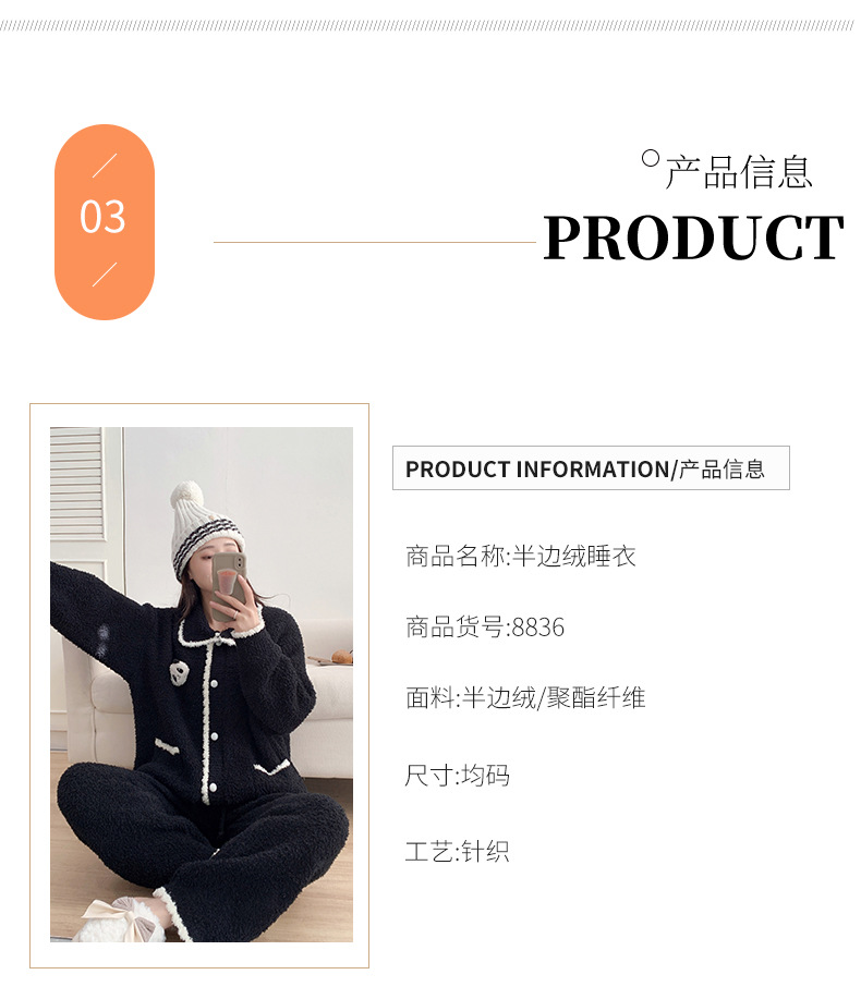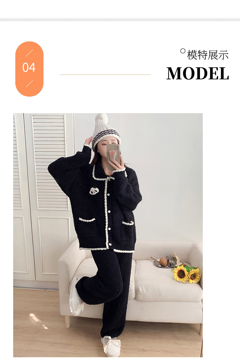 겨울 귀여운 만화 부드러운 반쪽 벨벳 파자마 여성 기모 두꺼운 외부 옷깃 홈 옷 세트스토어 가기