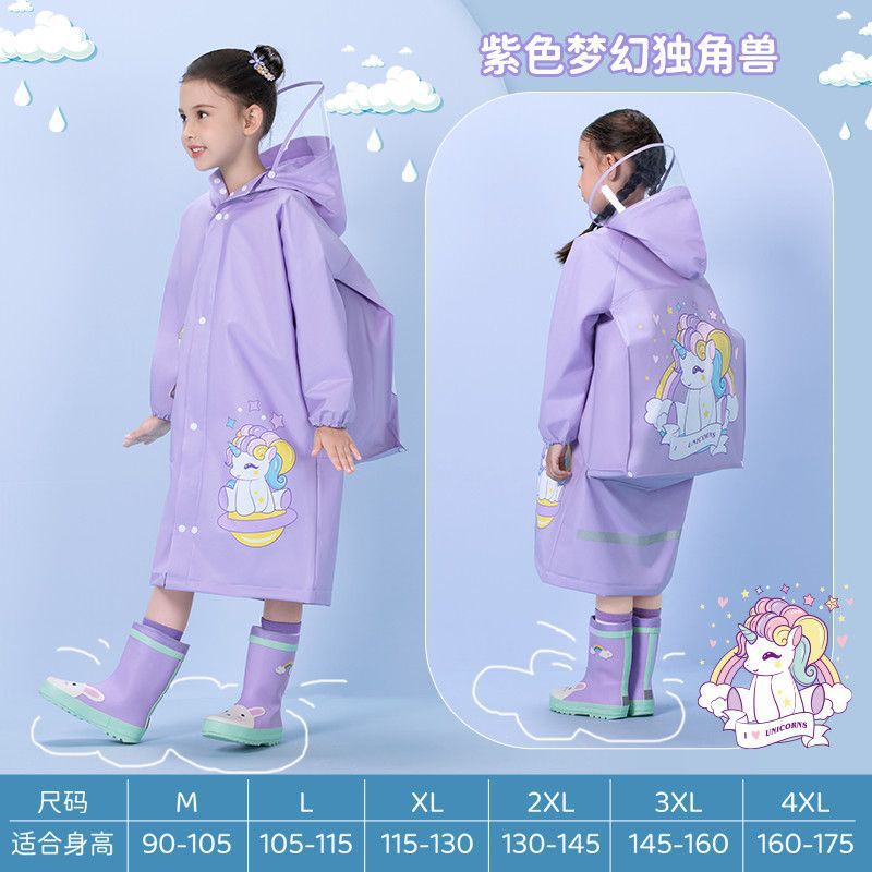 소년 소녀를위한 새로운 어린이 비옷 두꺼운 전신 안티 폭동 비 벨트 스쿨 백 유치원 초등학교 판초