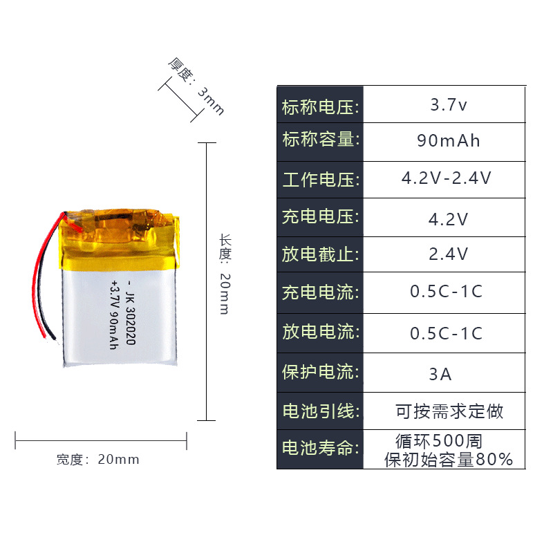 재고 302020 리튬 배터리 90mAh 플러스 보드 플러스 라인 블루투스 헤드셋 폴리머 배터리 스마트 팔찌