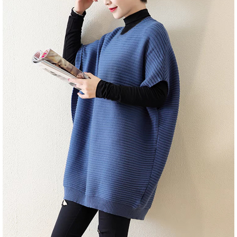 가을과 겨울 일본 스타일 새로운 디자인 감각 느슨한 플러스 사이즈 중간 길이의 니트 조끼 스웨터 여성의 느슨한 한국 스타일스토어 가기