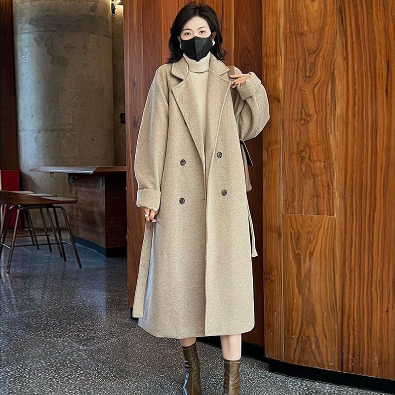 모직 코트 여성 중장 2024 가을과 겨울 새로운 한국식 헵번 스타일 느슨한 두꺼운 모직 코트스토어 가기
