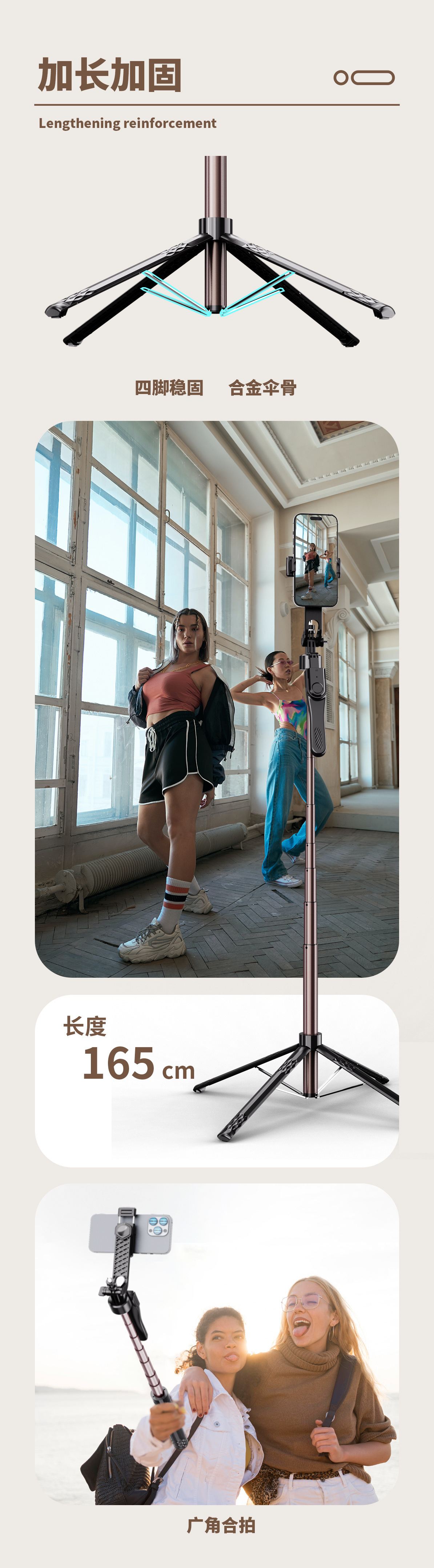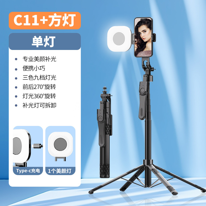 새로운 블루투스 셀카 스틱 C11 4 다리 브래킷 알루미늄 합금 범용 휴대 전화 라이브 방송 플로어 브래킷 핸드 헬드 안정기