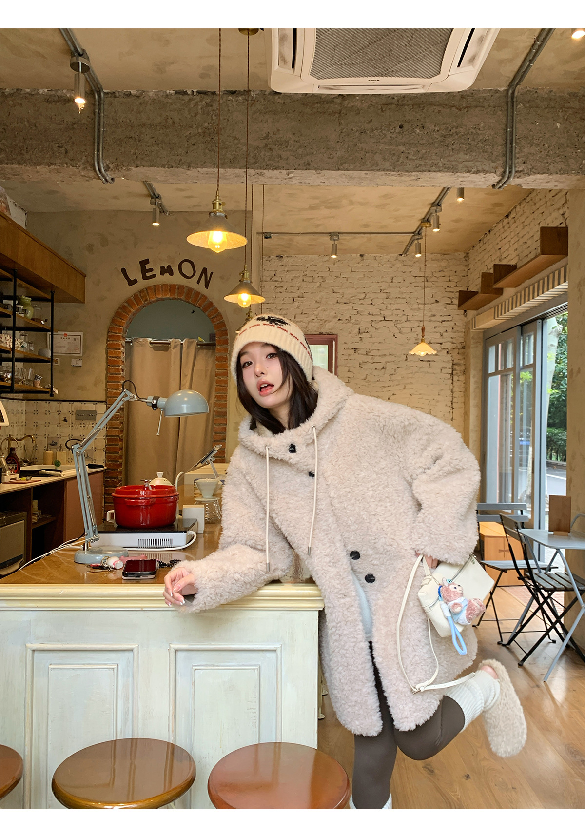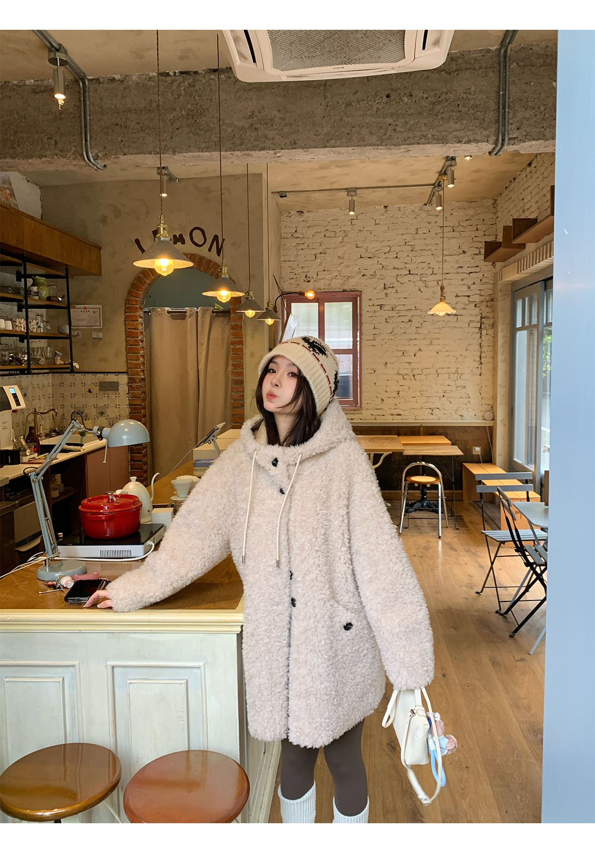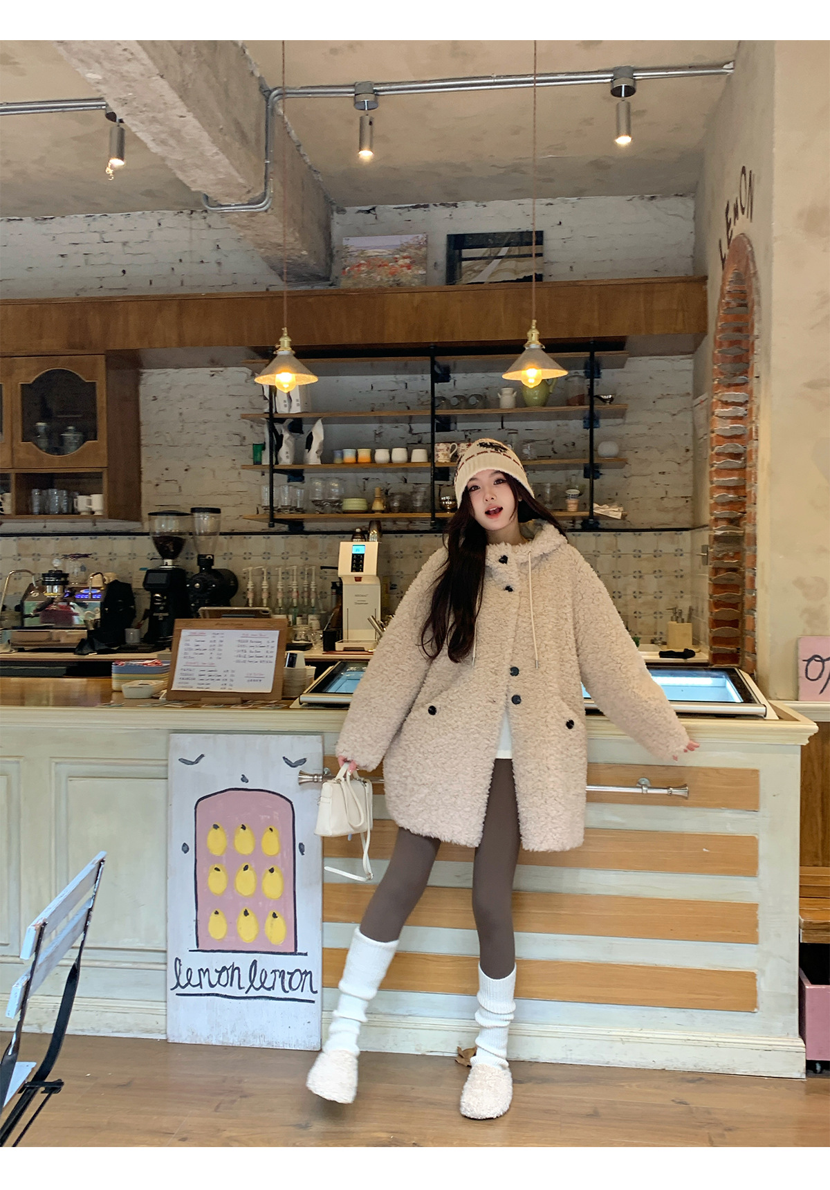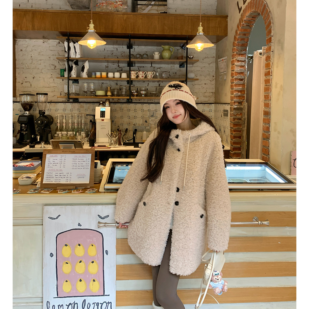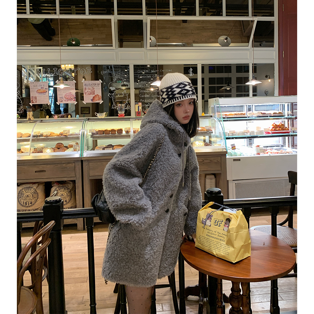후드 양고기 모피 코트 여성용 스웨이드 원피스 곡물 벨벳 캐시미어 양털 스웨트 셔츠 24 겨울 의류스토어 가기