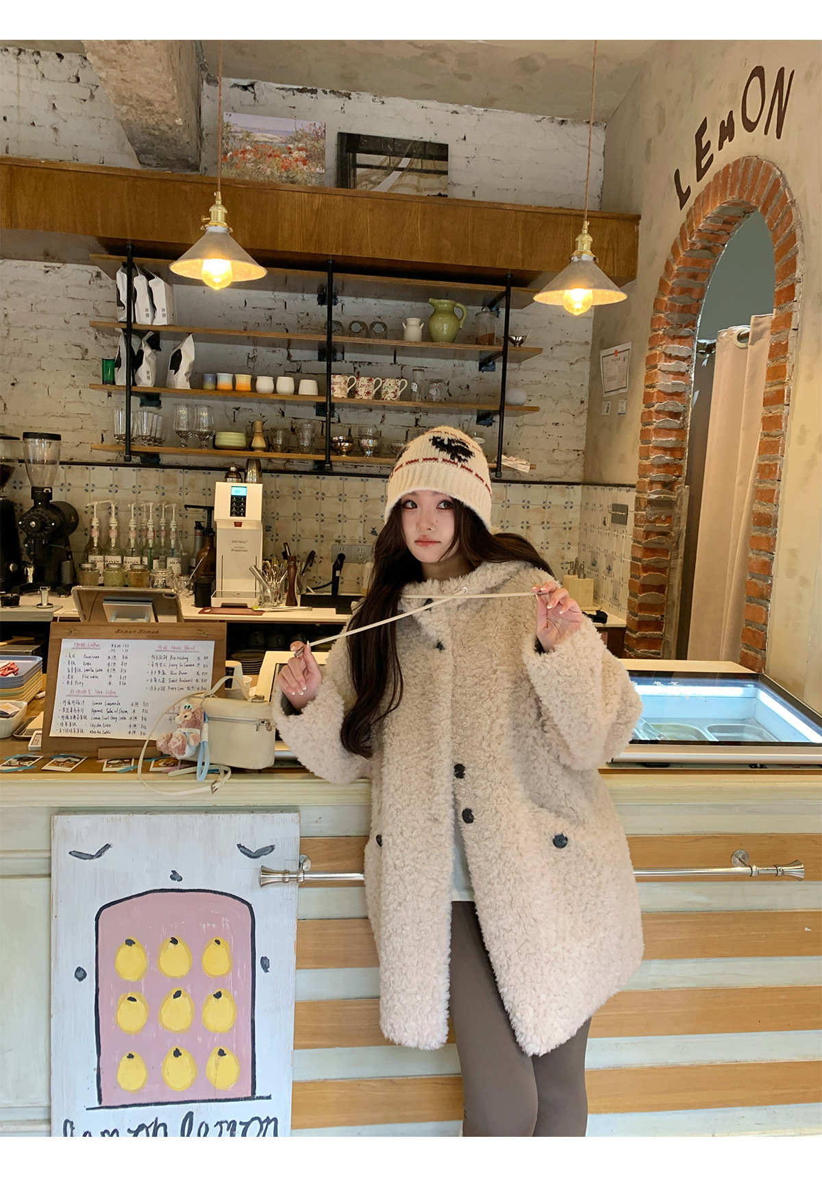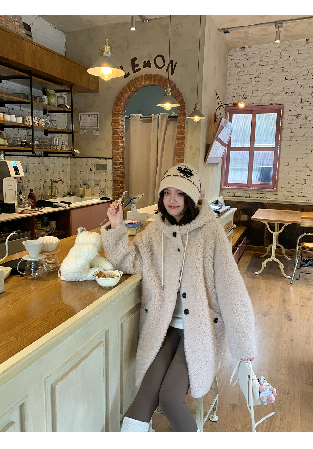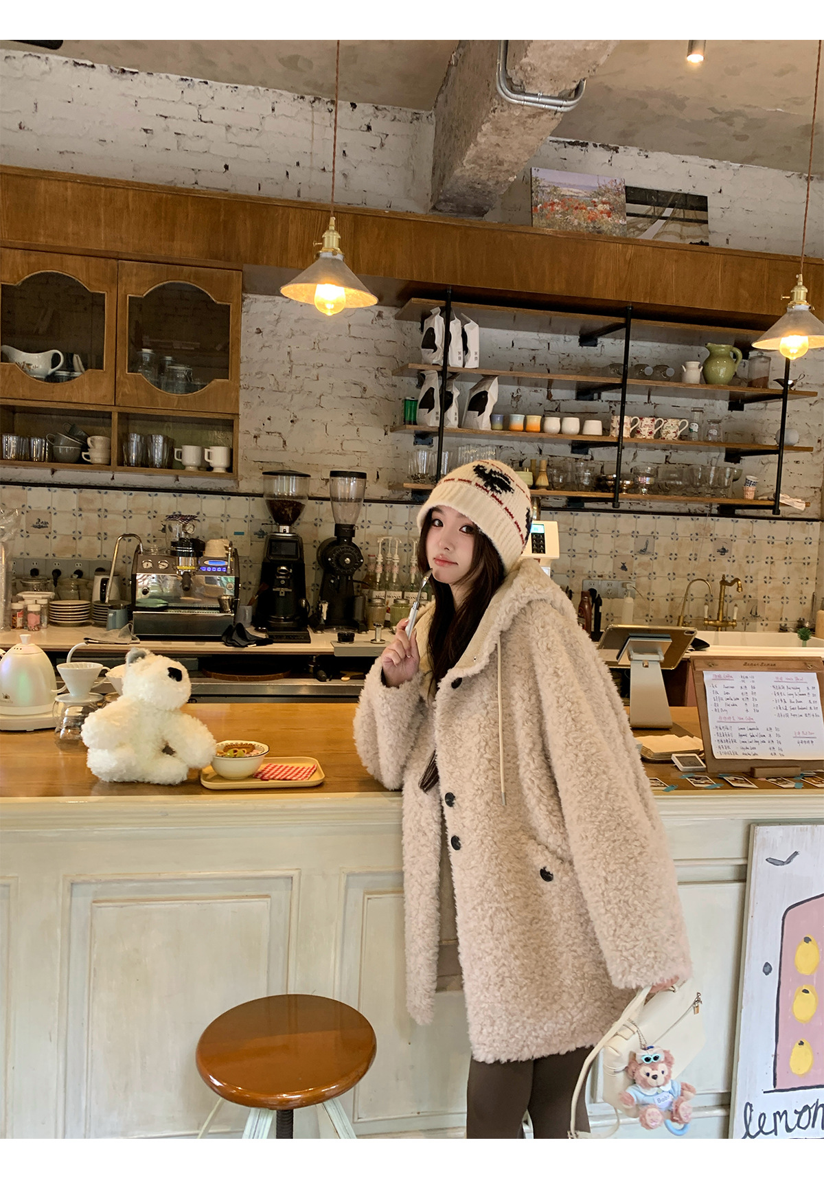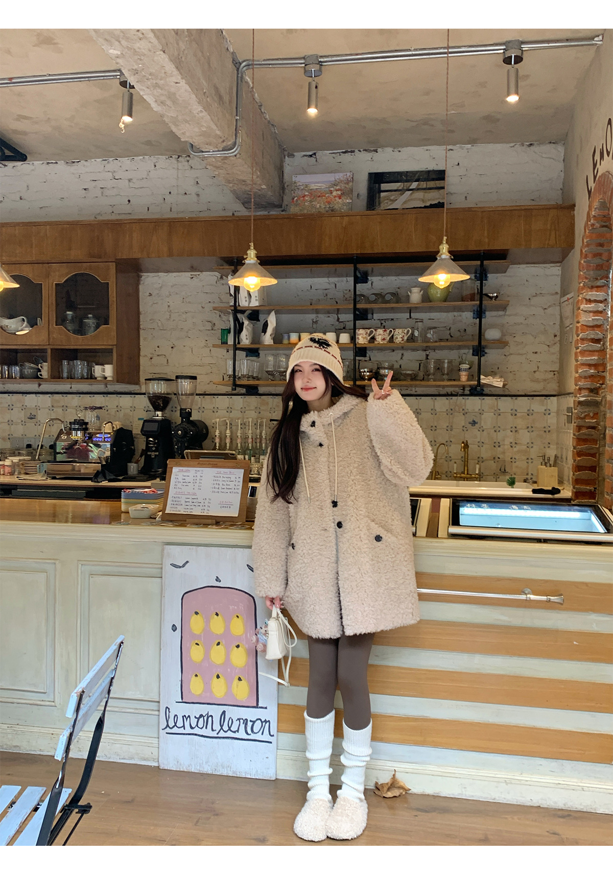 후드 양고기 모피 코트 여성용 스웨이드 원피스 곡물 벨벳 캐시미어 양털 스웨트 셔츠 24 겨울 의류스토어 가기