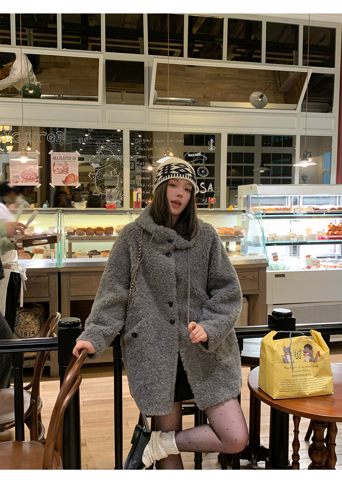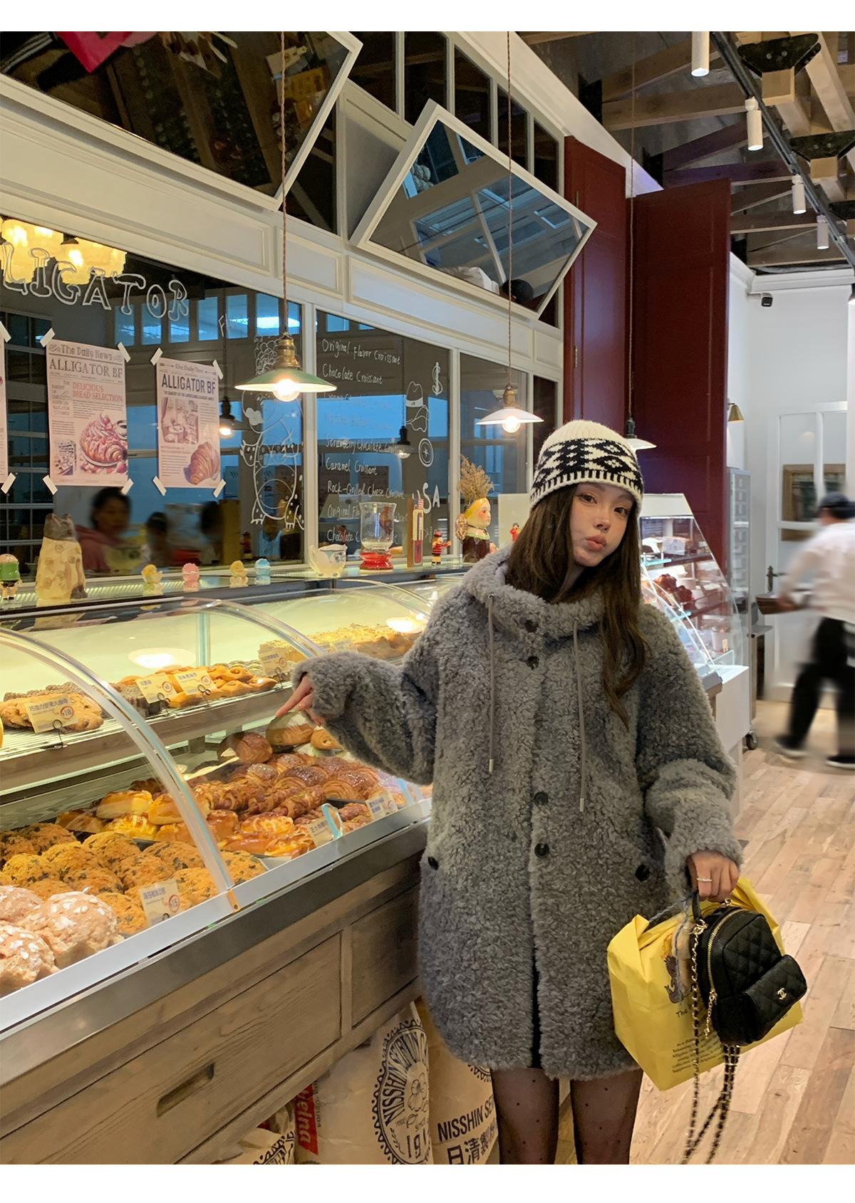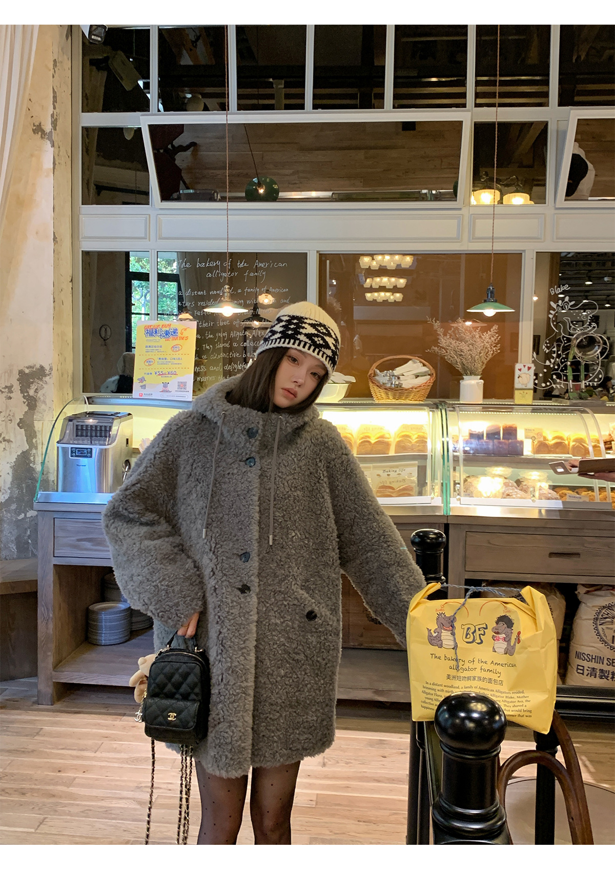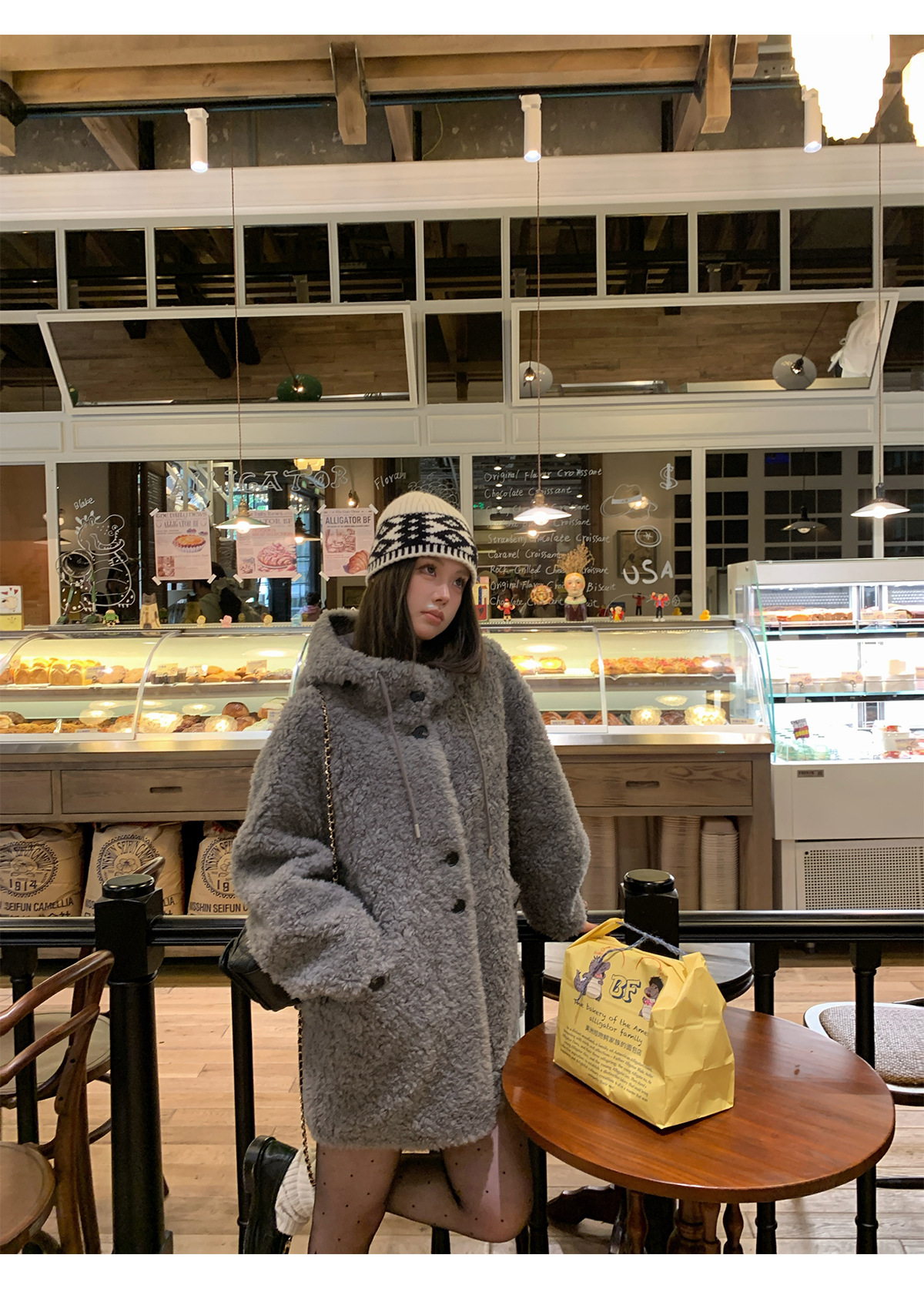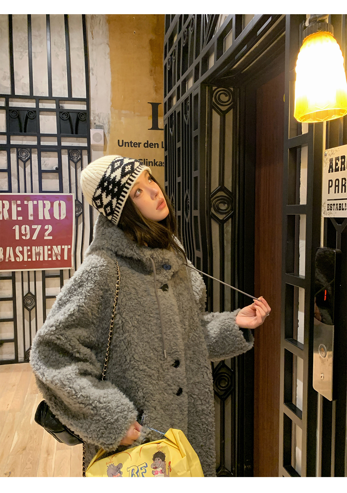 후드 양고기 모피 코트 여성용 스웨이드 원피스 곡물 벨벳 캐시미어 양털 스웨트 셔츠 24 겨울 의류스토어 가기