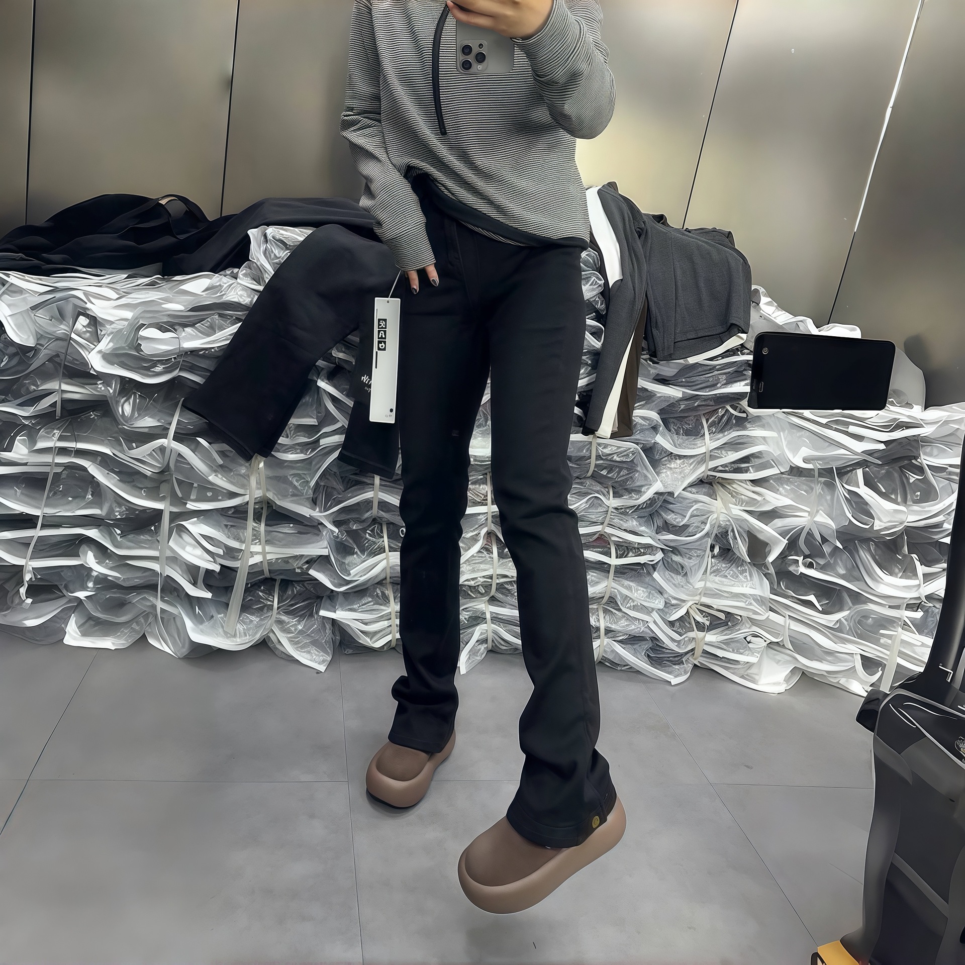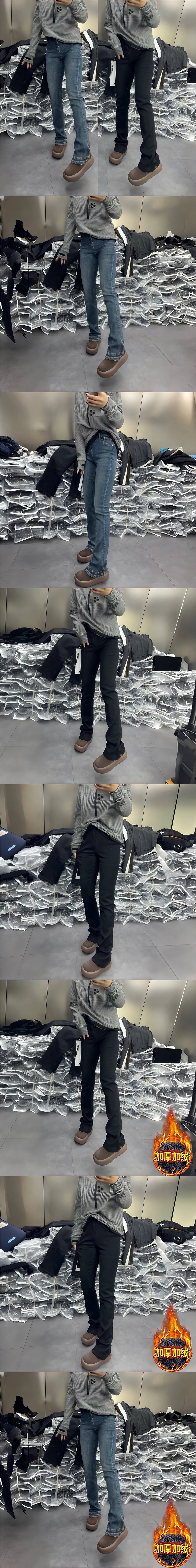 좁은 높은 허리 데님 말굽 바지 여성 가을과 겨울 2024 새로운 플러스 사이즈 통통 자매 슬림 핏 올매치 슬림 핏 바지스토어 가기