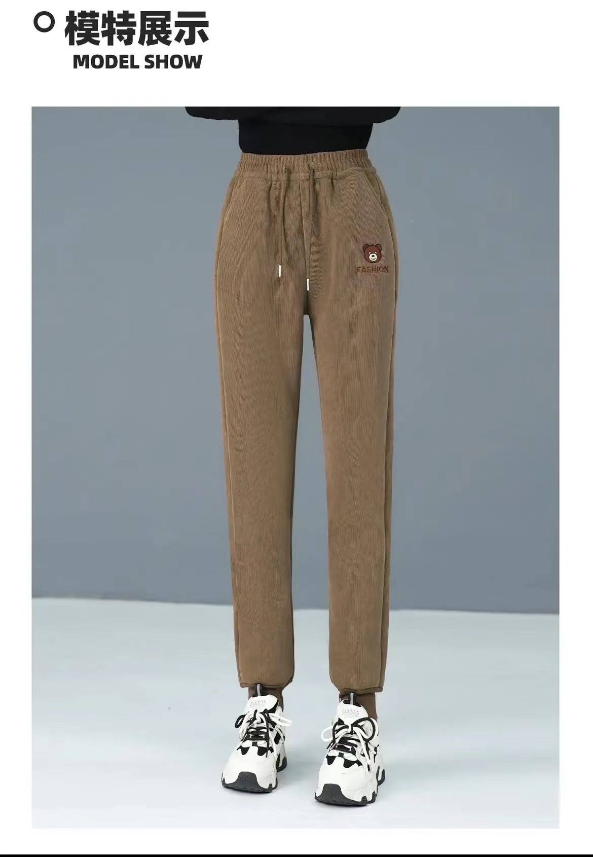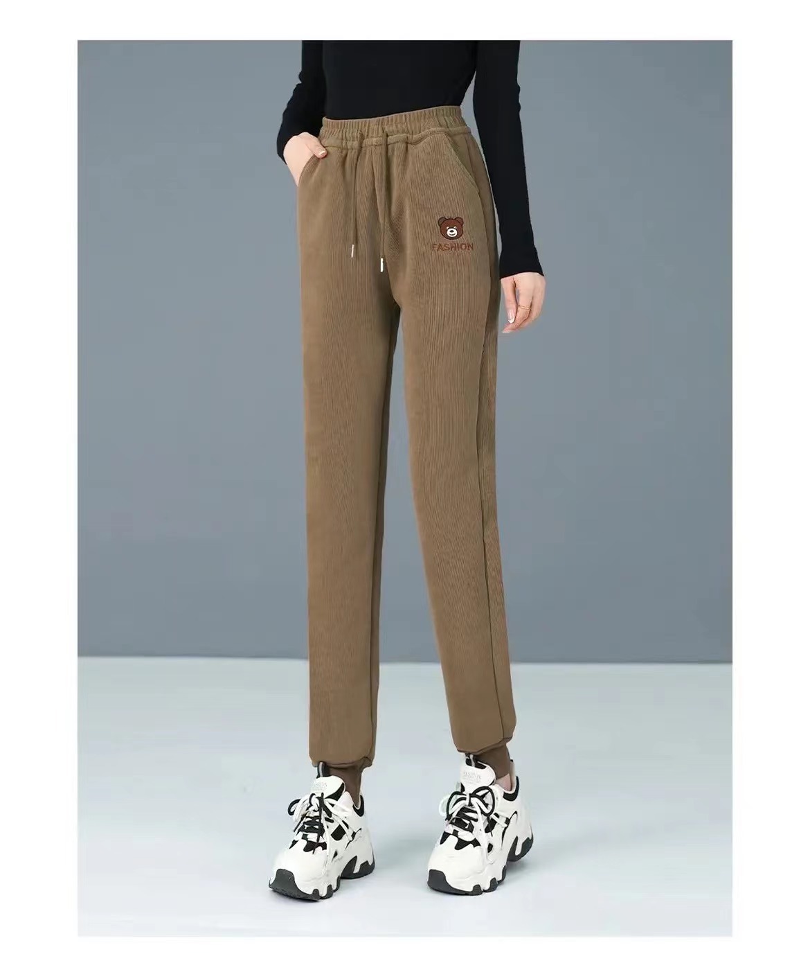기모 두꺼운 다리 캐주얼 바지 여성용 2024 년 겨울 새로운 느슨한 긴 울 바지 패션 올 매치 할란 바지 스웨트 팬츠