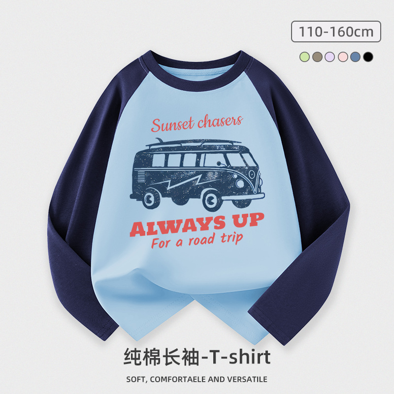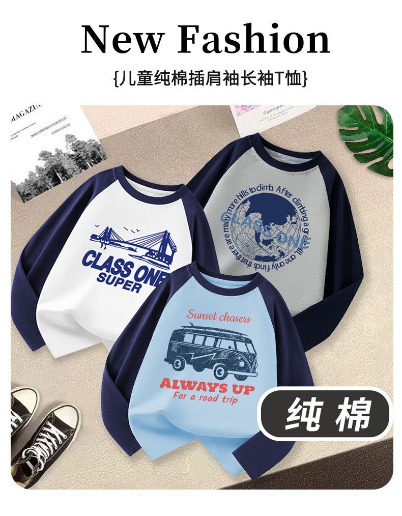 아동복 아동용 긴팔 티셔츠 소년 '봄과 가을 2025 뉴 스타일 퓨어 코튼 중대형 어린이 스타일베이스 셔츠 탑 트렌디스토어 가기
