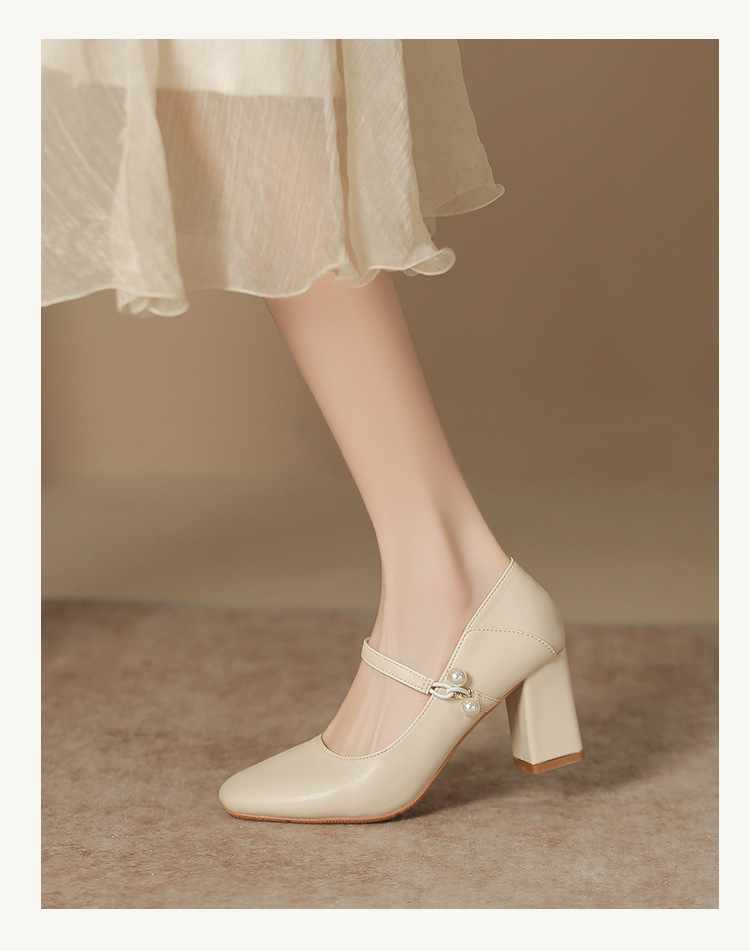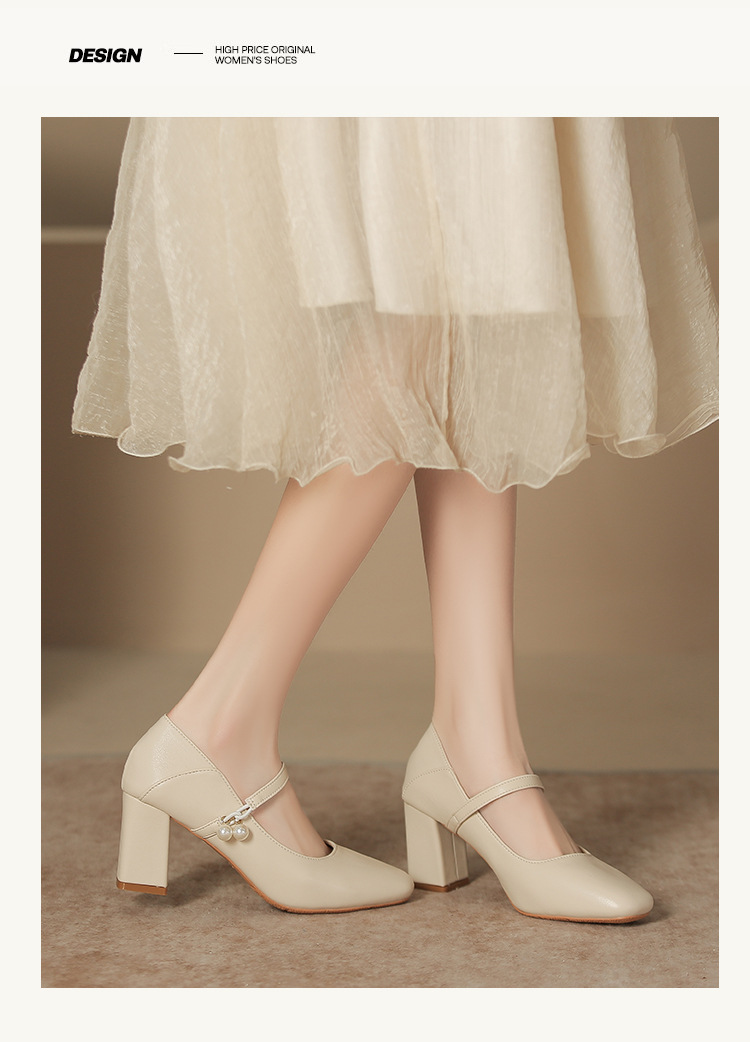 스퀘어 힐 하이힐 플러스 사이즈 플러스 지방 넓어진 진주 여성 신발 통근 모든 경기 스몰 사이즈 피곤하지 않음