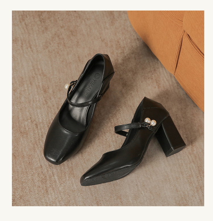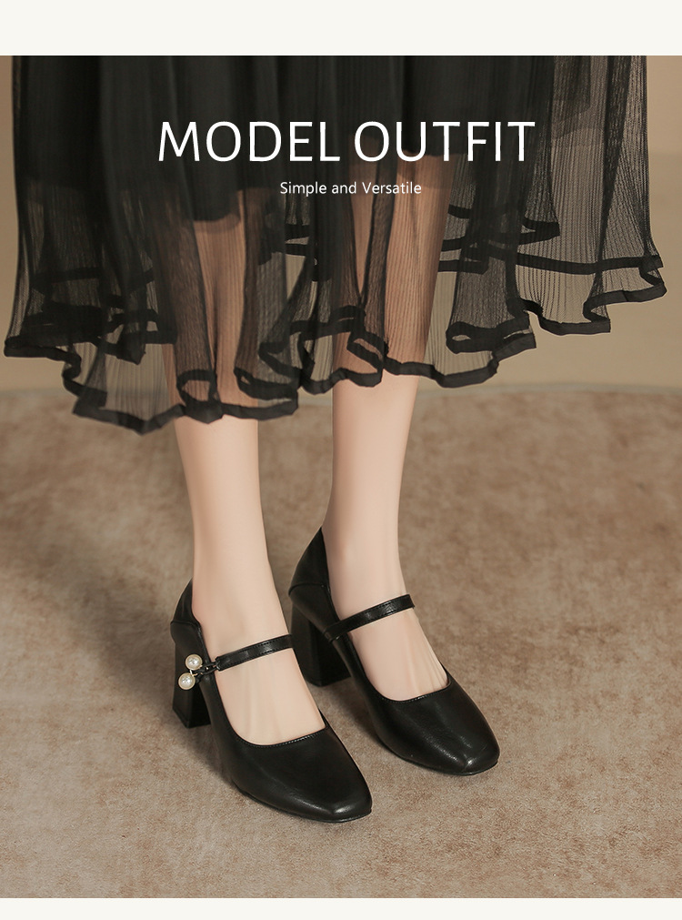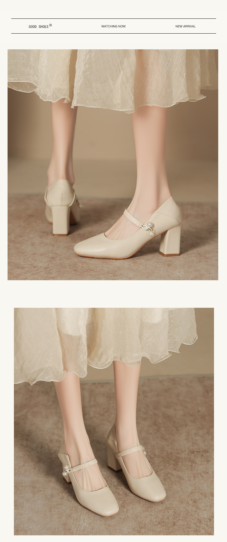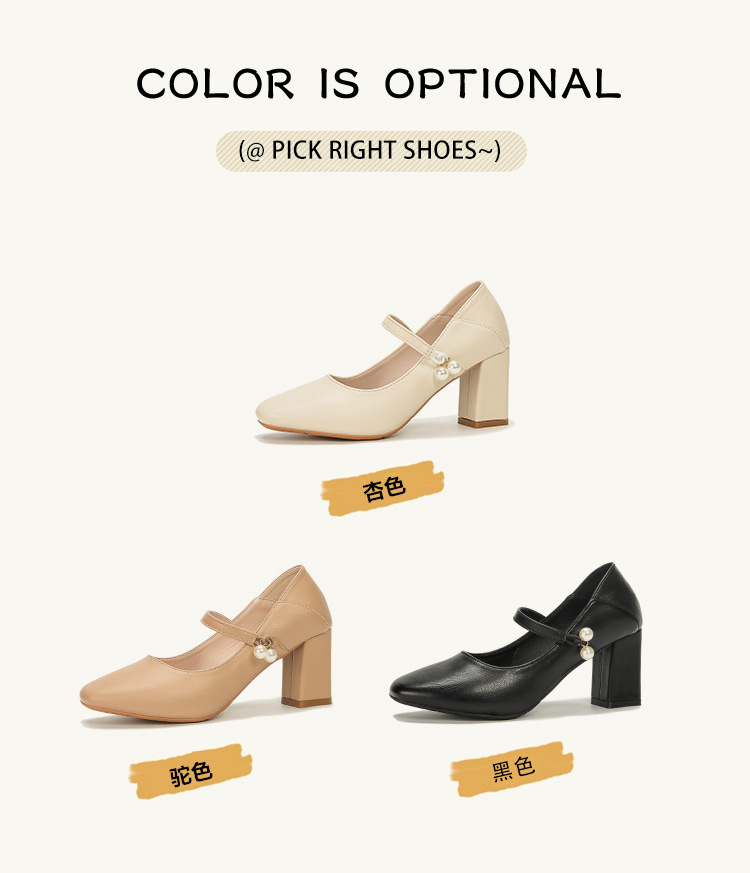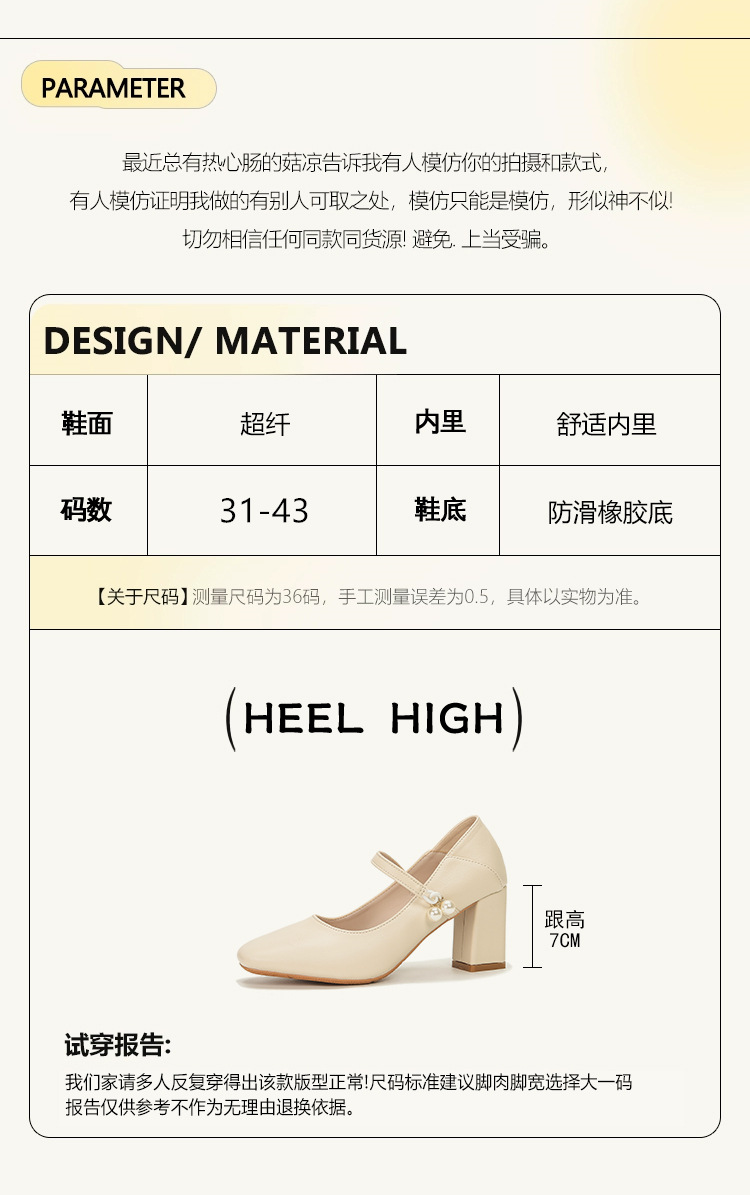 스퀘어 힐 하이힐 플러스 사이즈 플러스 지방 넓어진 진주 여성 신발 통근 모든 경기 스몰 사이즈 피곤하지 않음스토어 가기