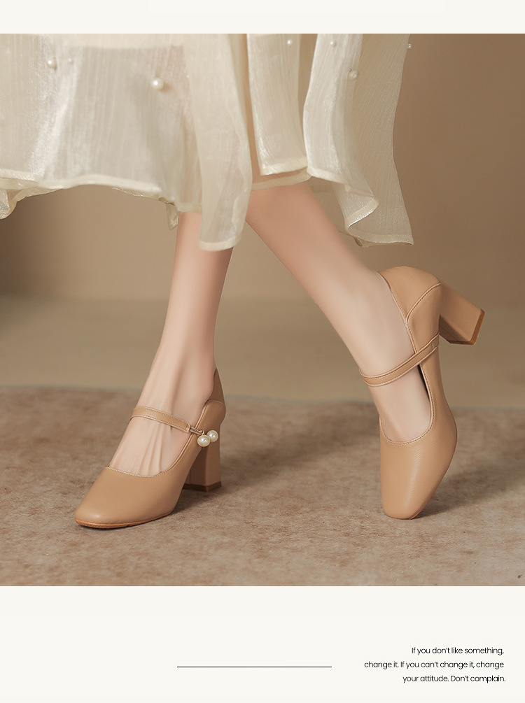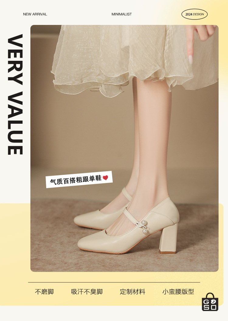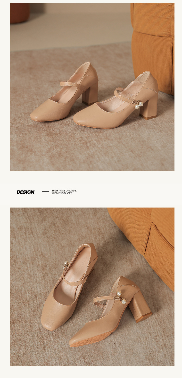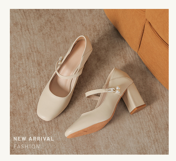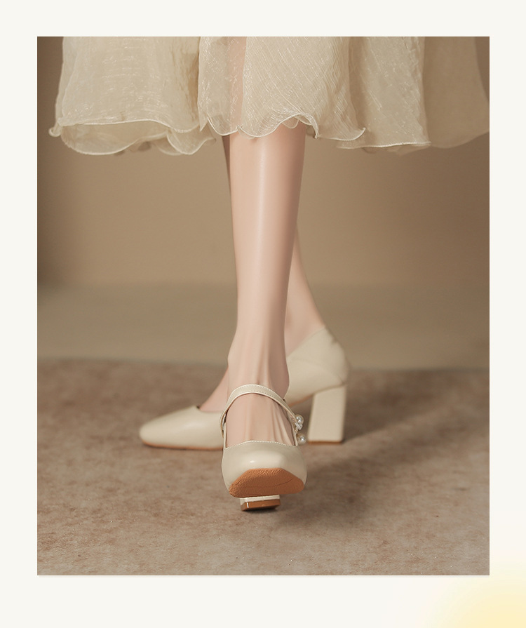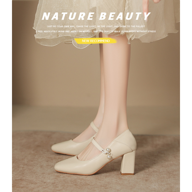 스퀘어 힐 하이힐 플러스 사이즈 플러스 지방 넓어진 진주 여성 신발 통근 모든 경기 스몰 사이즈 피곤하지 않음스토어 가기