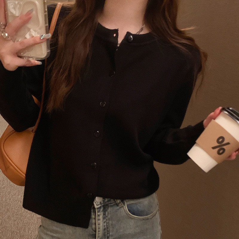 여성을 위한 우아하고 부드럽고 루즈한 라운드 넥 스웨터 가디건 25 봄 솔리드 컬러 스웨터 재킷 레이어드 슬리밍 탑