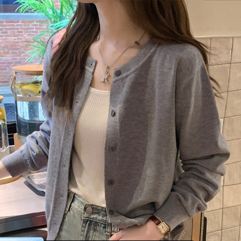 여성을 위한 우아하고 부드럽고 루즈한 라운드 넥 스웨터 가디건 25 봄 솔리드 컬러 스웨터 재킷 레이어드 슬리밍 탑스토어 가기
