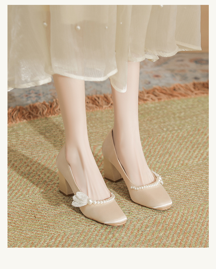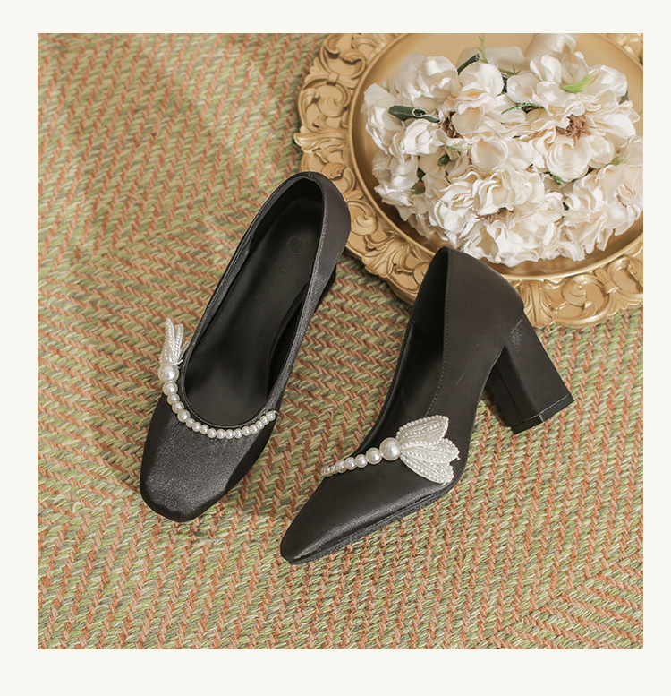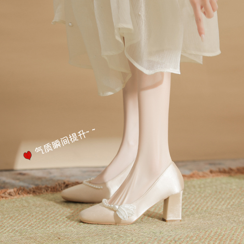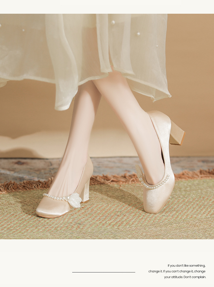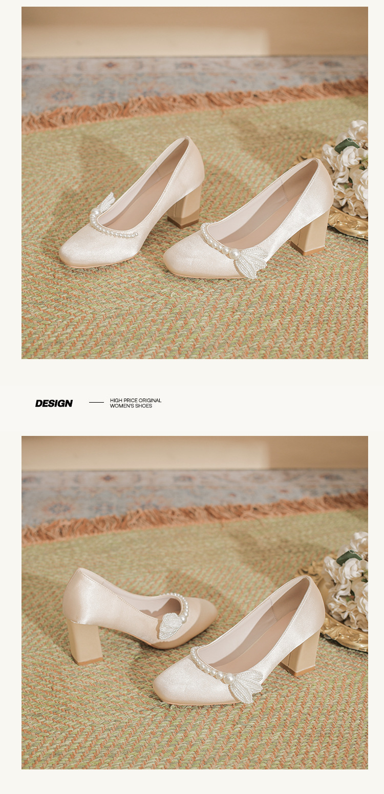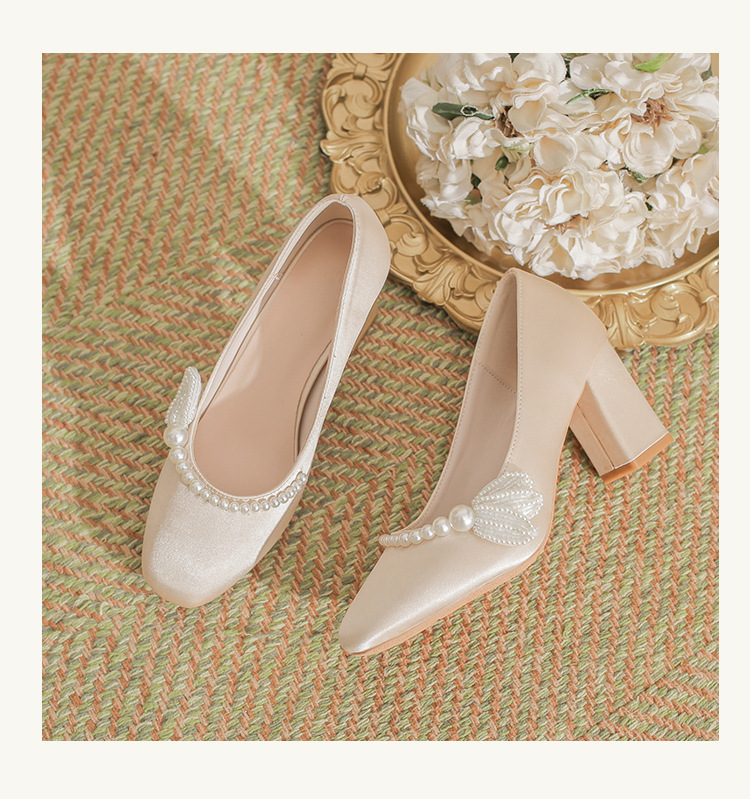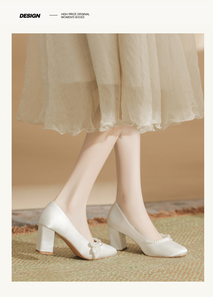 2025 새로운 스퀘어 헤드 두꺼운 힐 하이힐 플러스 사이즈 플러스 뚱뚱한 확장 된 결혼식 신발 웨딩 신부 신발 쇼 의류스토어 가기