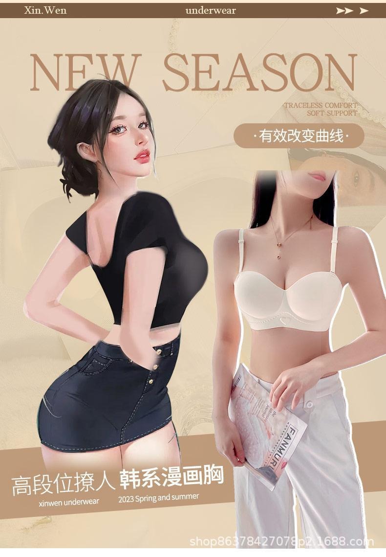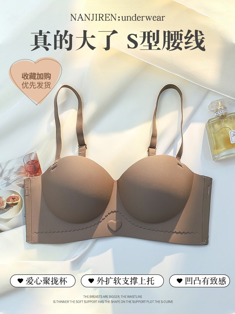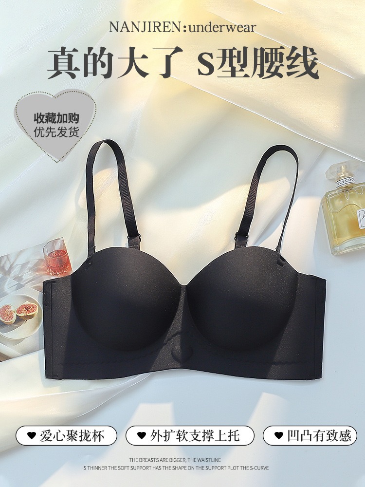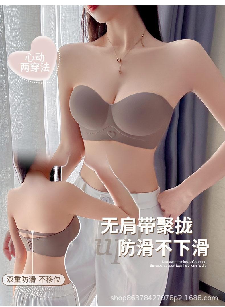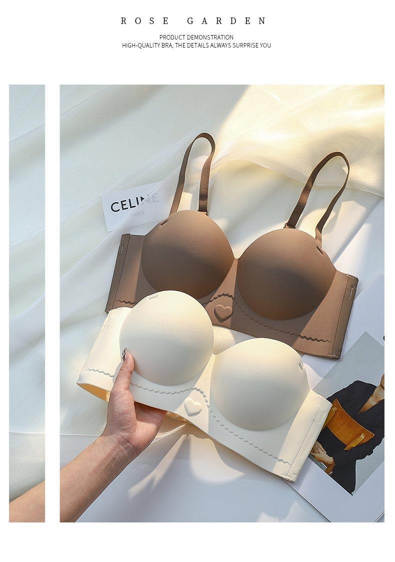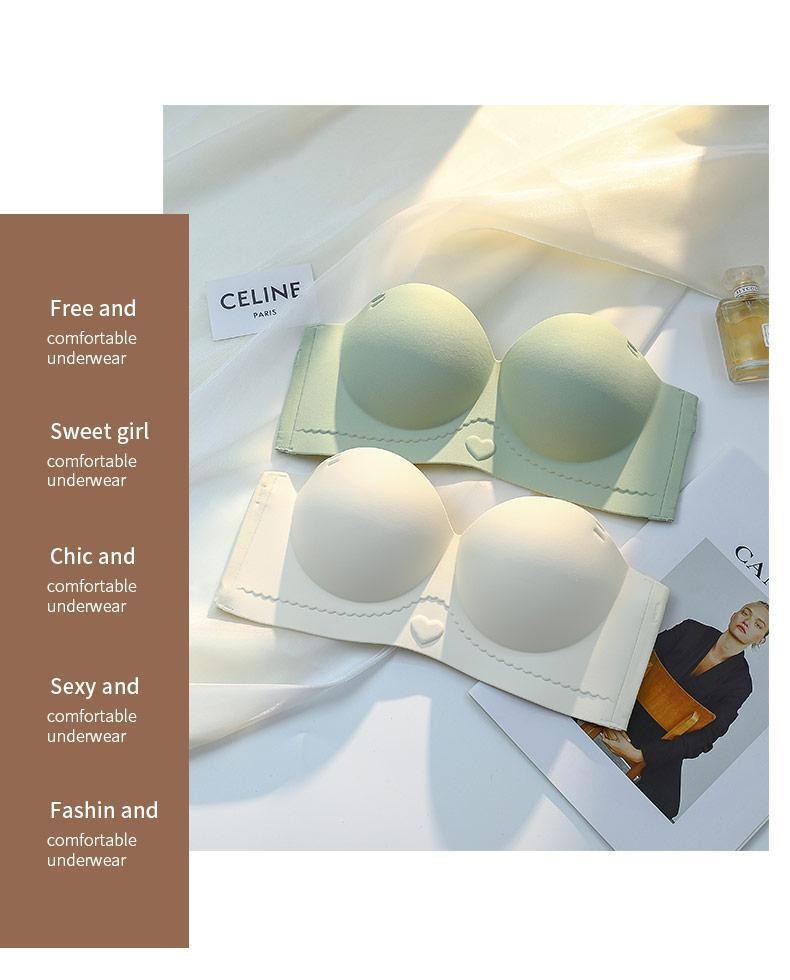 가슴이 작은 여성을 위한 가슴 확장 속옷, 푸쉬업 효과가 있는 이음매 없는 반컵 브라, 끈이 없는 미끄럼 방지 브라, 편안한 착용감