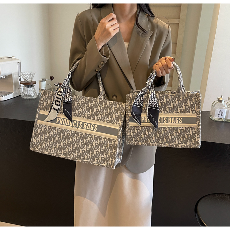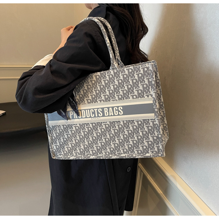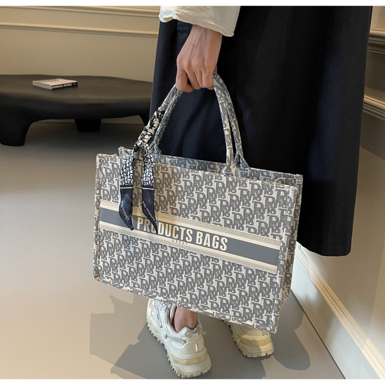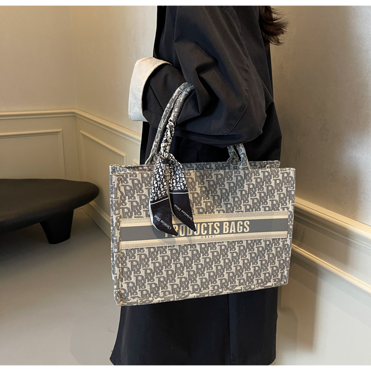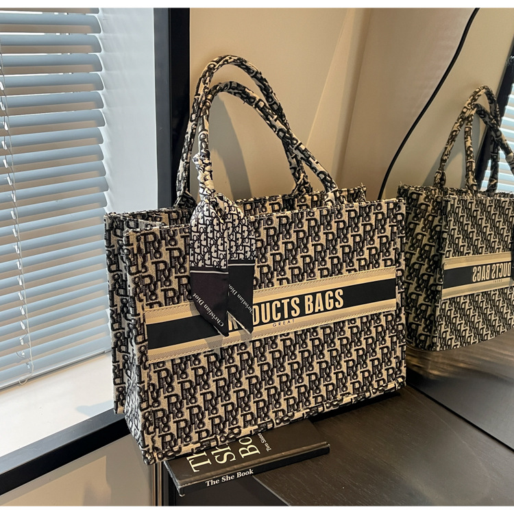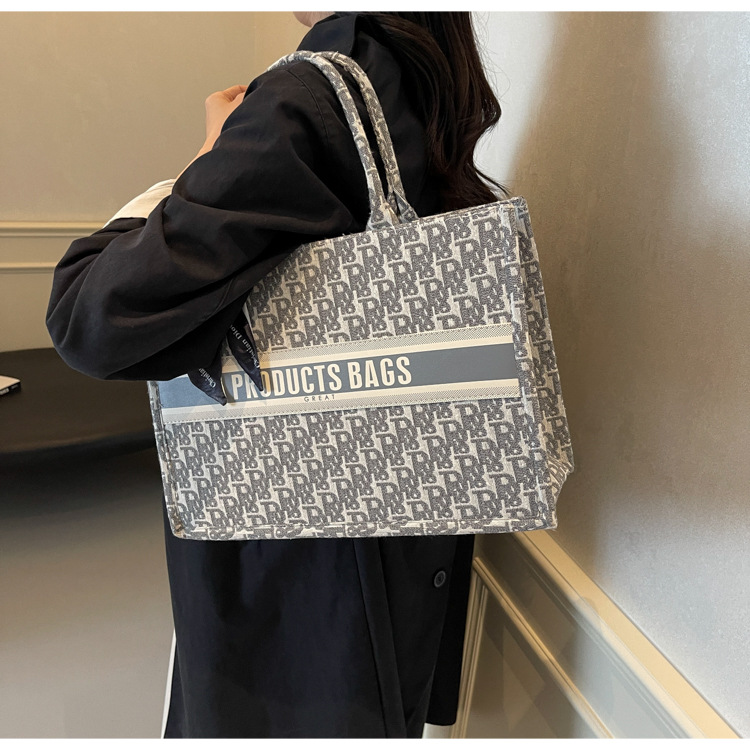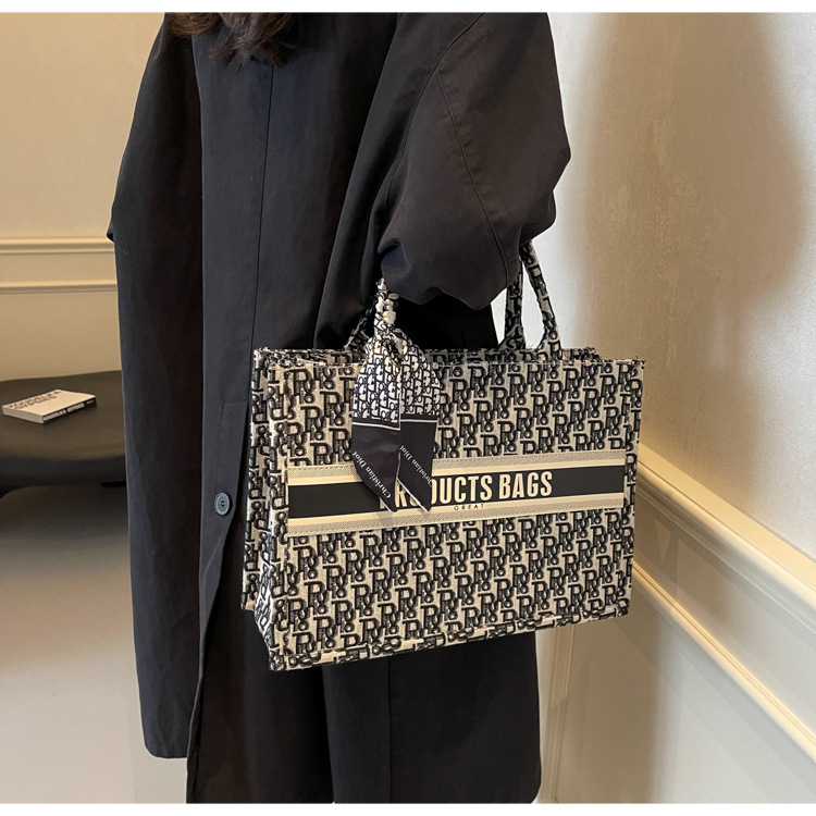 통근 패션 휴대용 토트 백 여성의 2024 새로운 올 매치 유행 인쇄 편지 대용량 어깨 가방