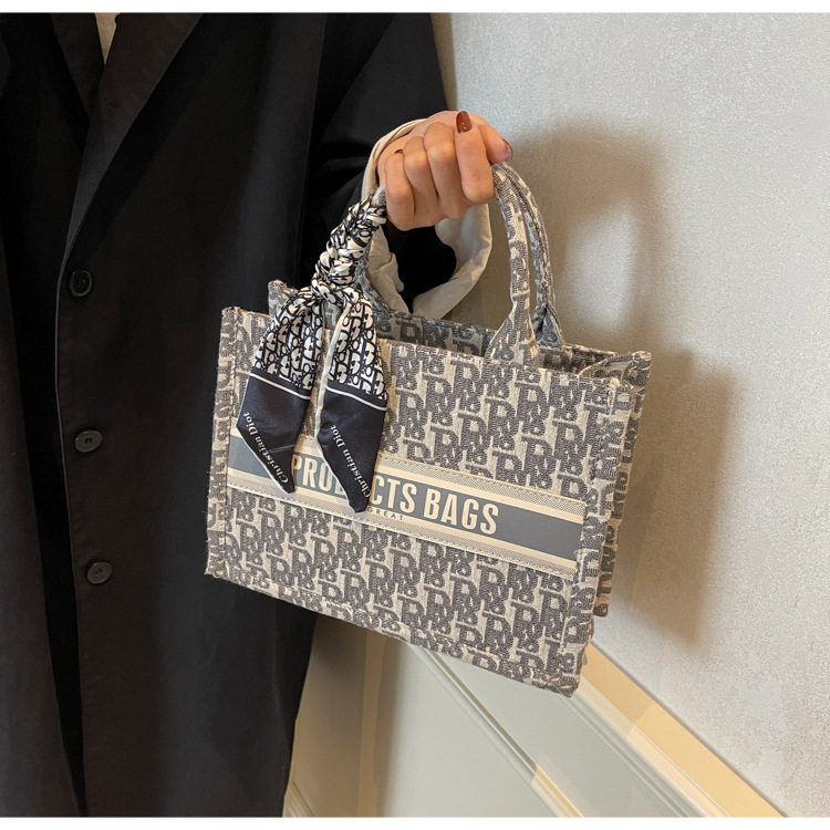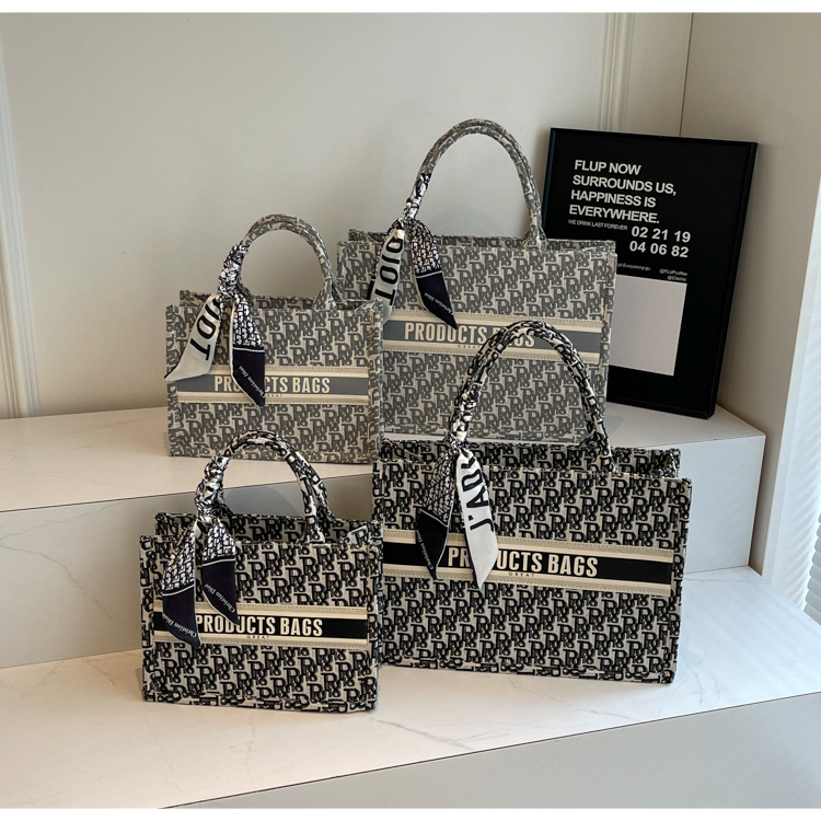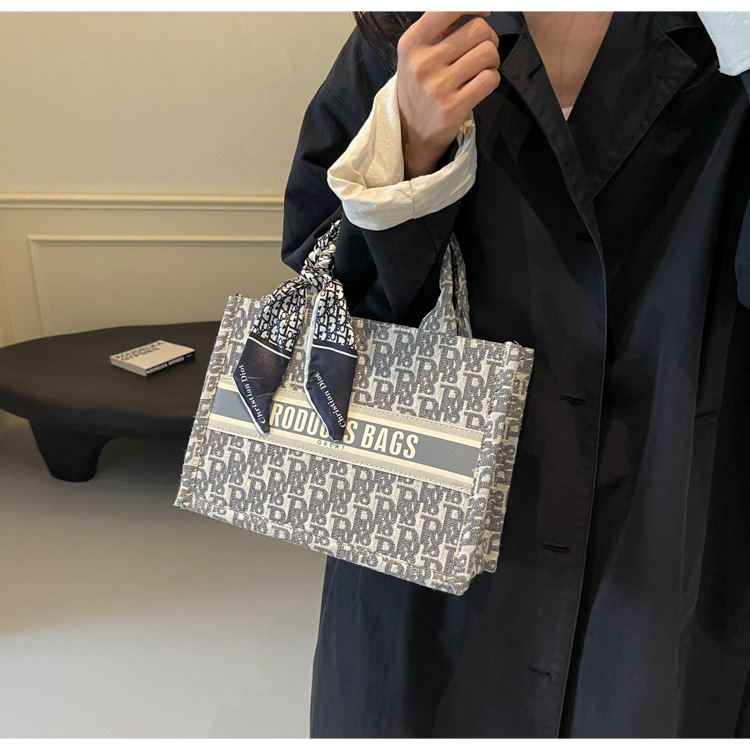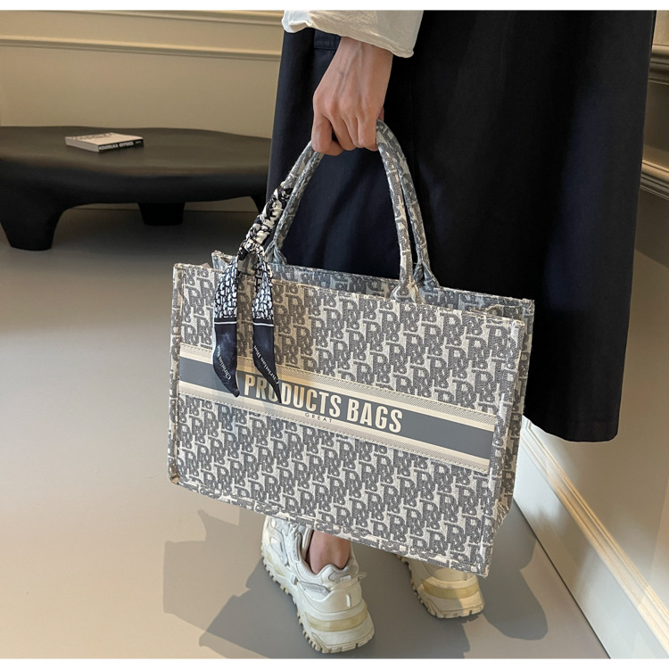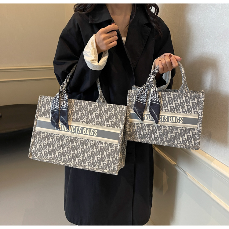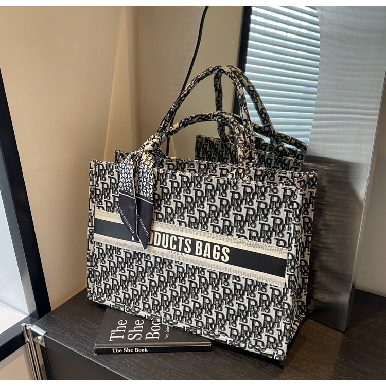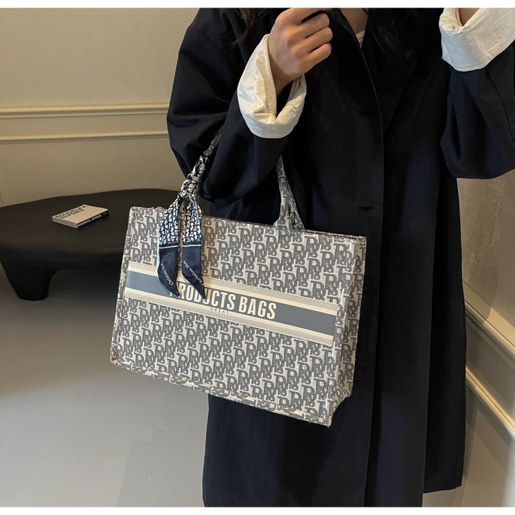 통근 패션 휴대용 토트 백 여성의 2024 새로운 올 매치 유행 인쇄 편지 대용량 어깨 가방