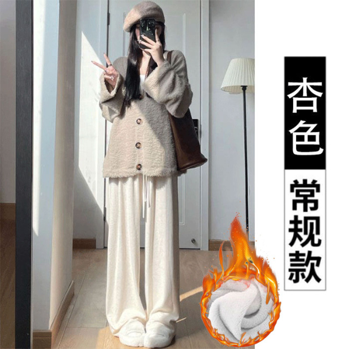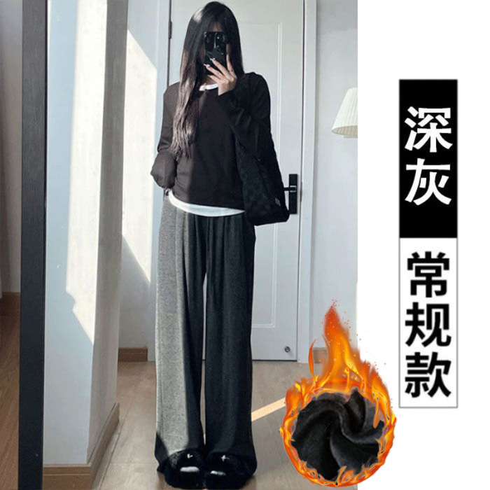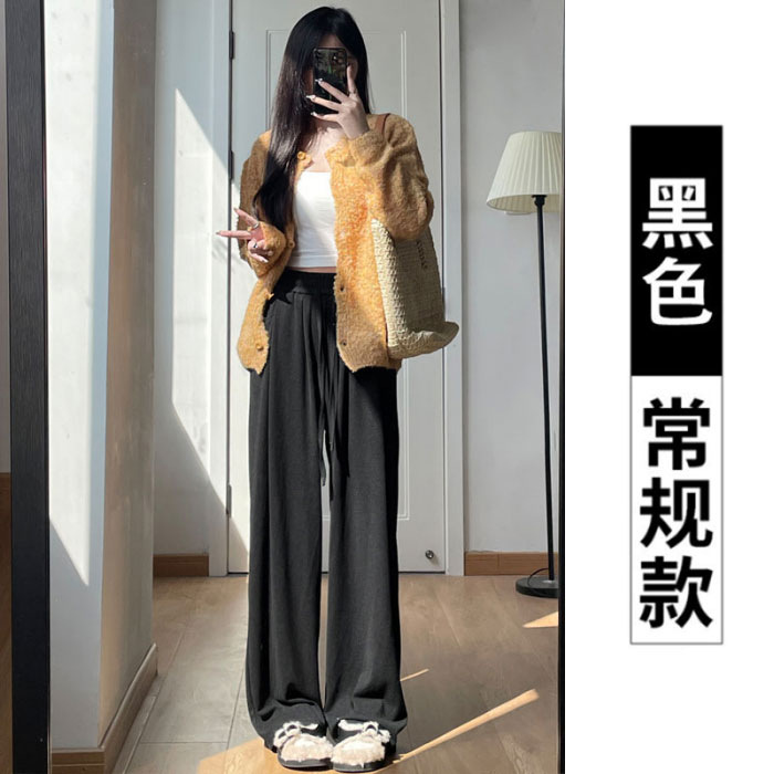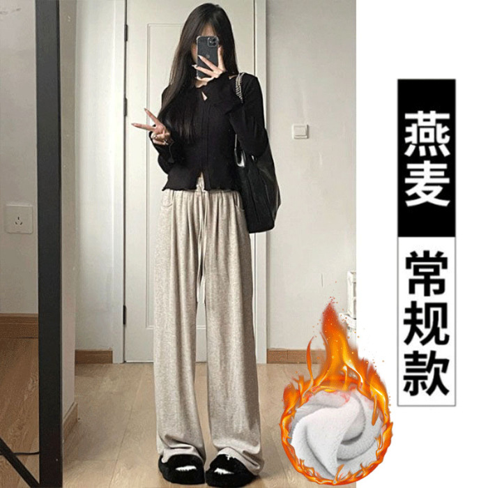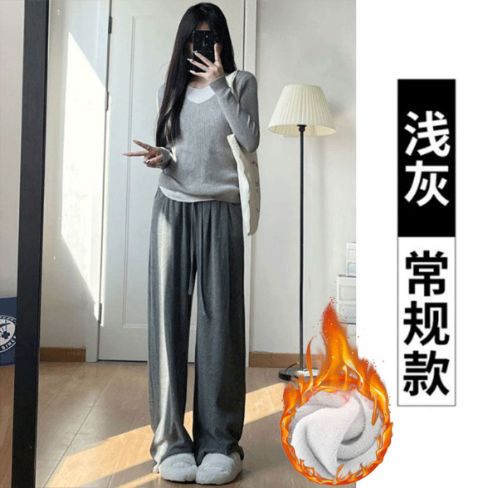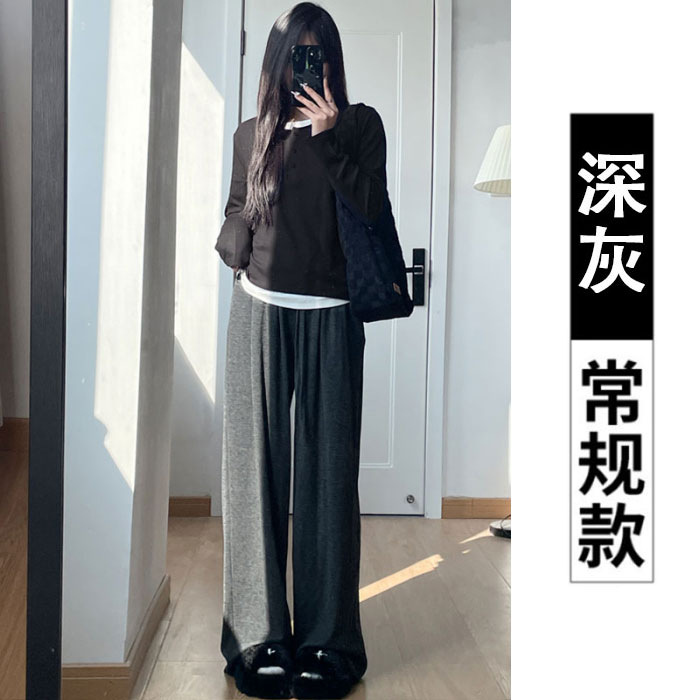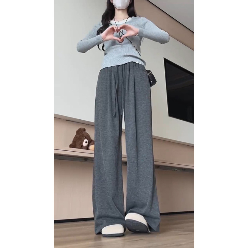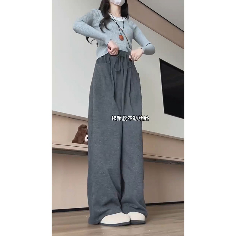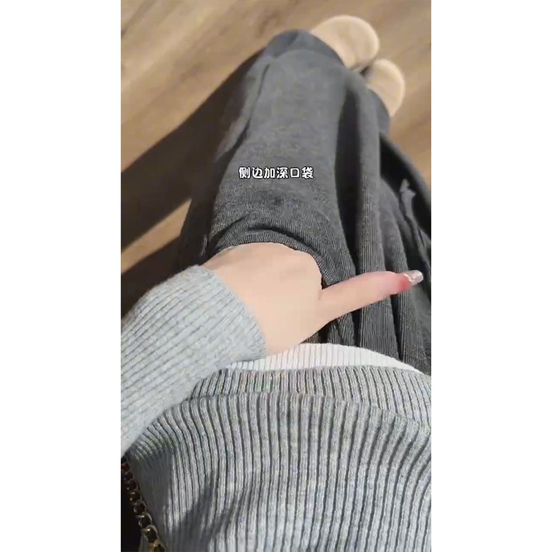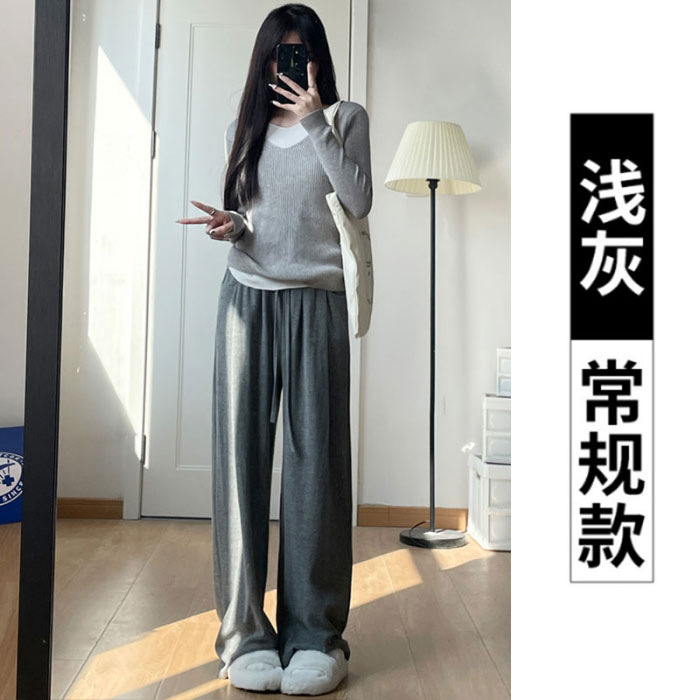 넓은 다리 바지 여자 운동복 천 (찹쌀 스트립) 봄 가을과 겨울 높은 허리 느슨한 한국 스포츠 찹쌀 바지 칠리스토어 가기