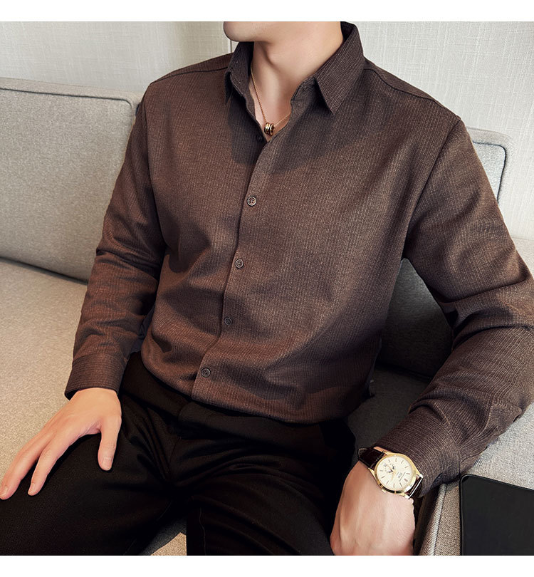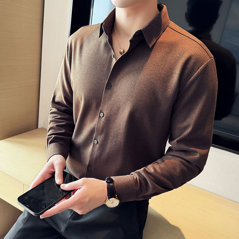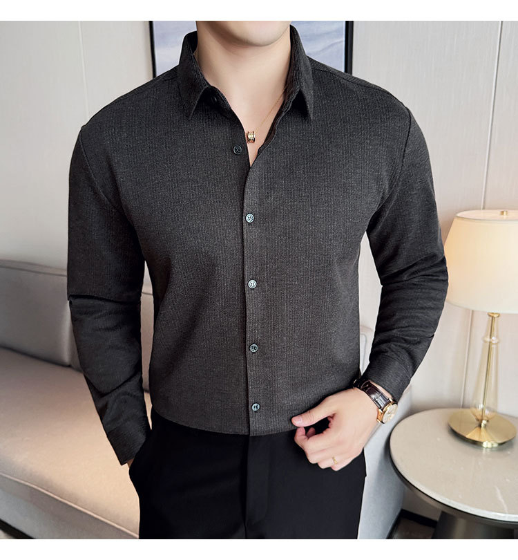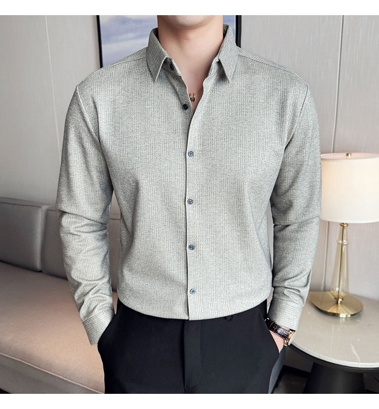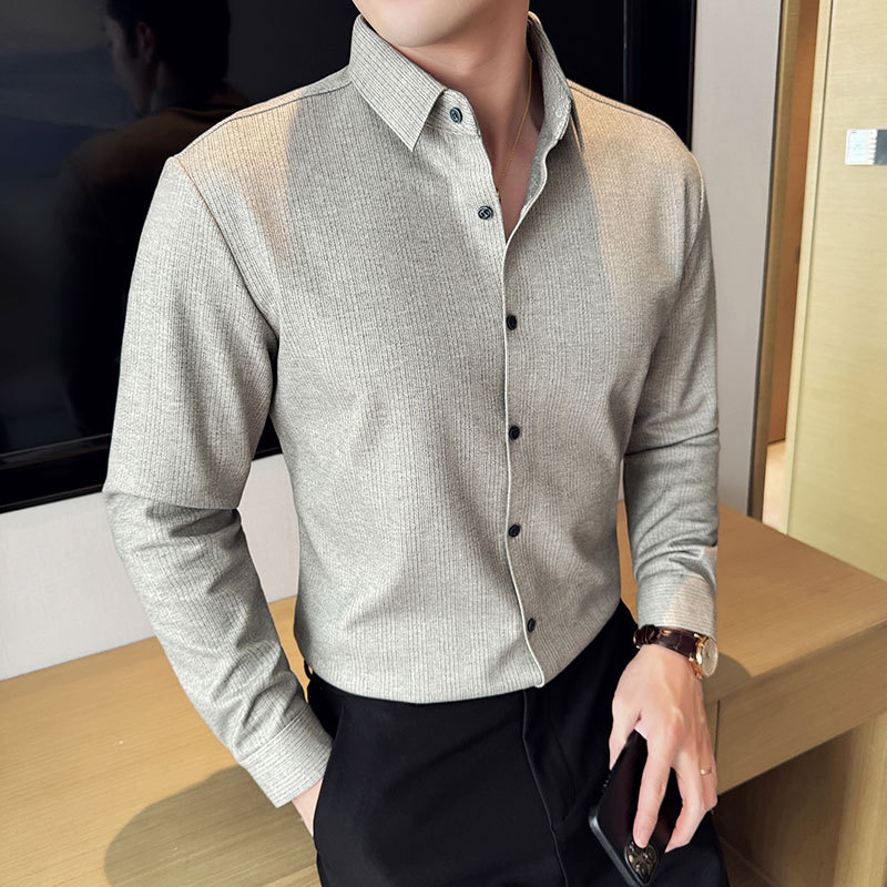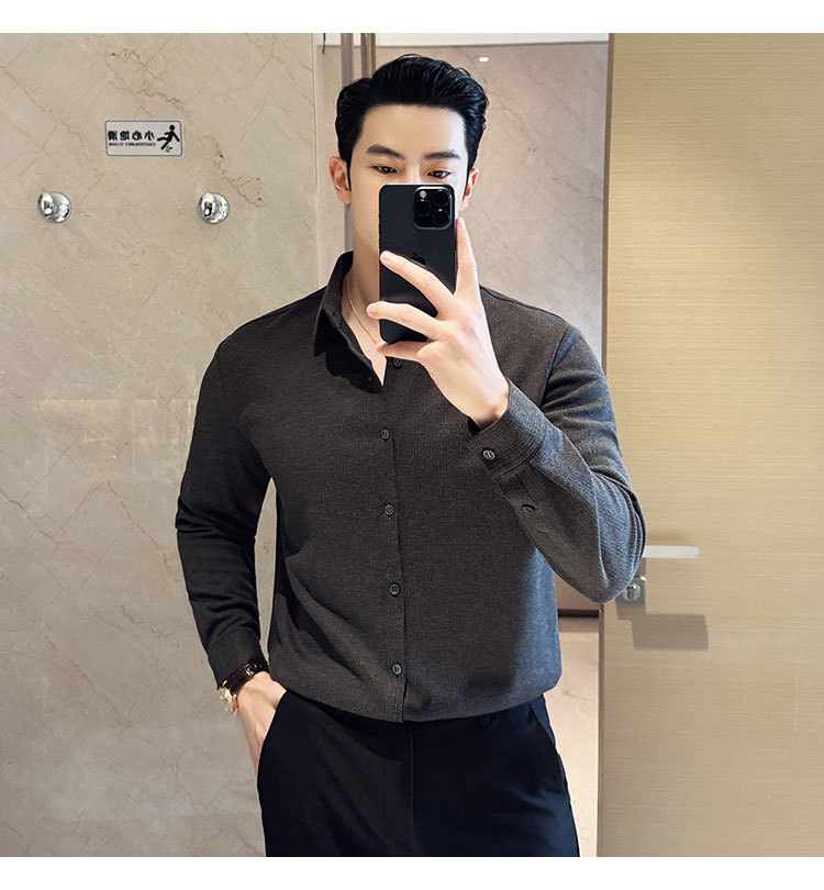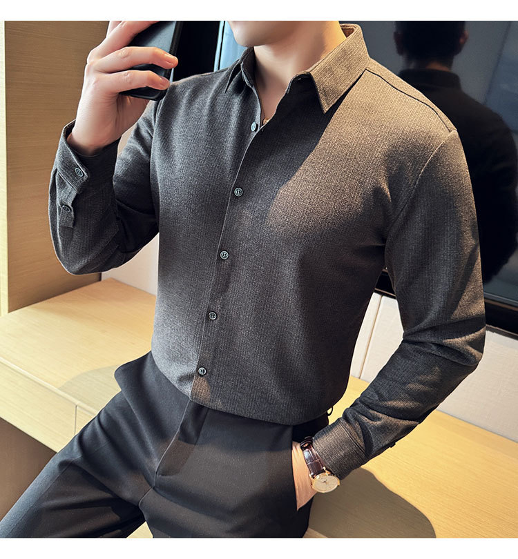 2024 가을과 겨울 모직 소재 남성용 긴팔 셔츠베이스 두꺼운 셔츠 독특한 비즈니스 캐주얼 트레이스 셔츠 남성 스타일