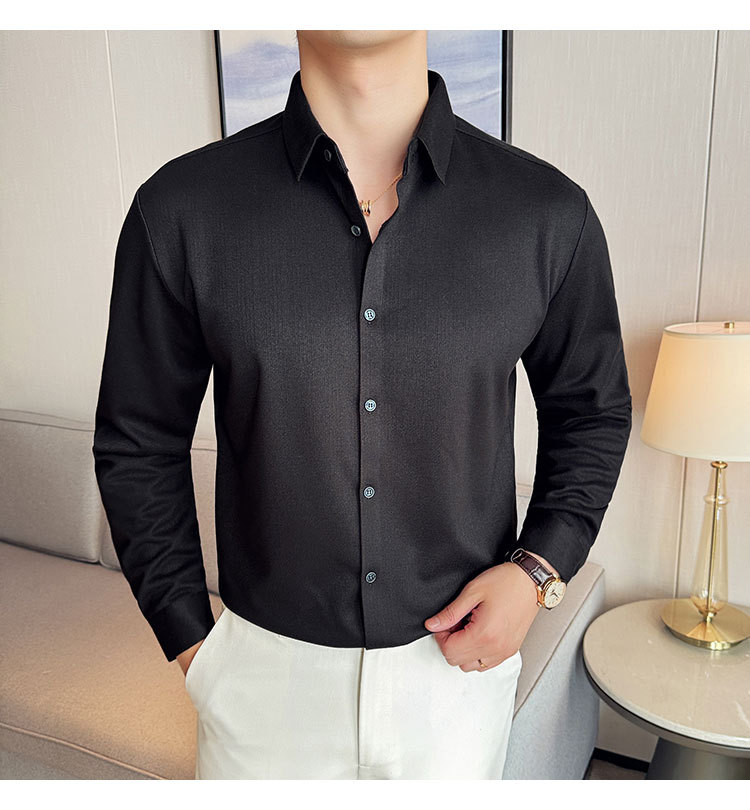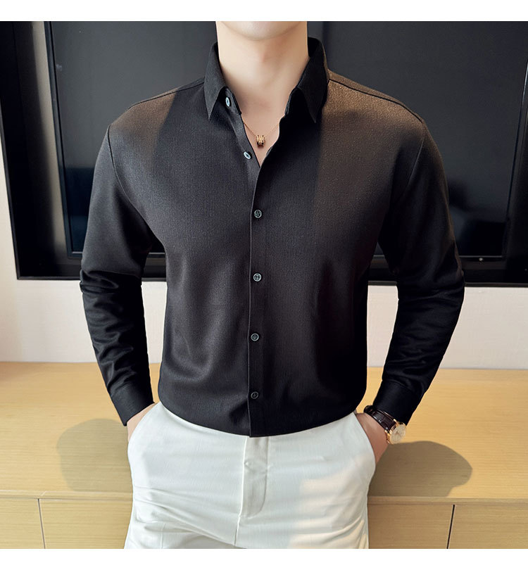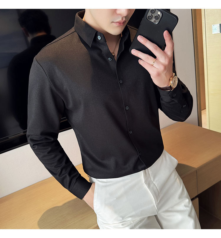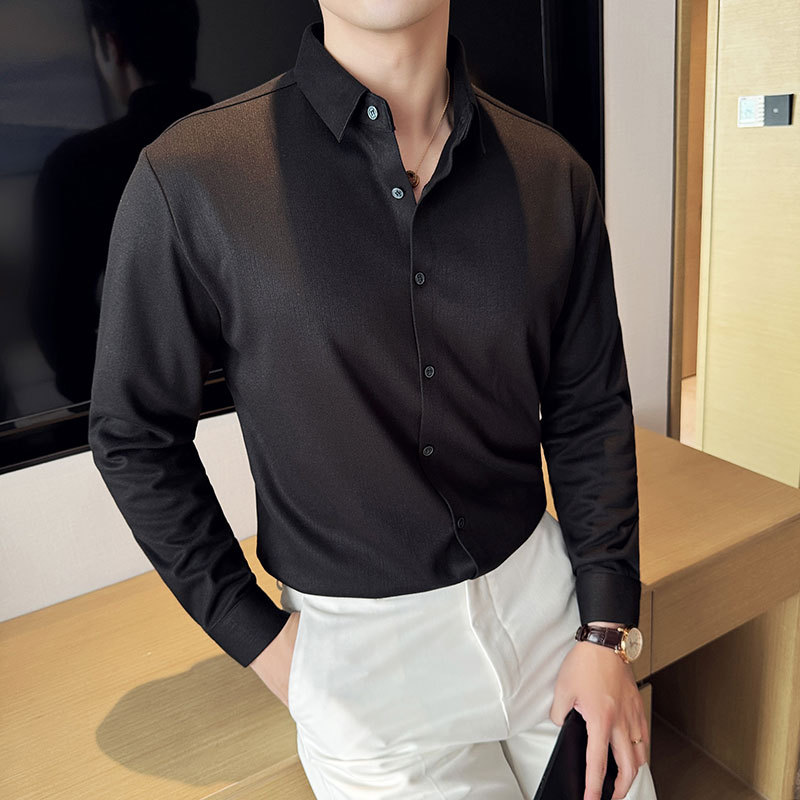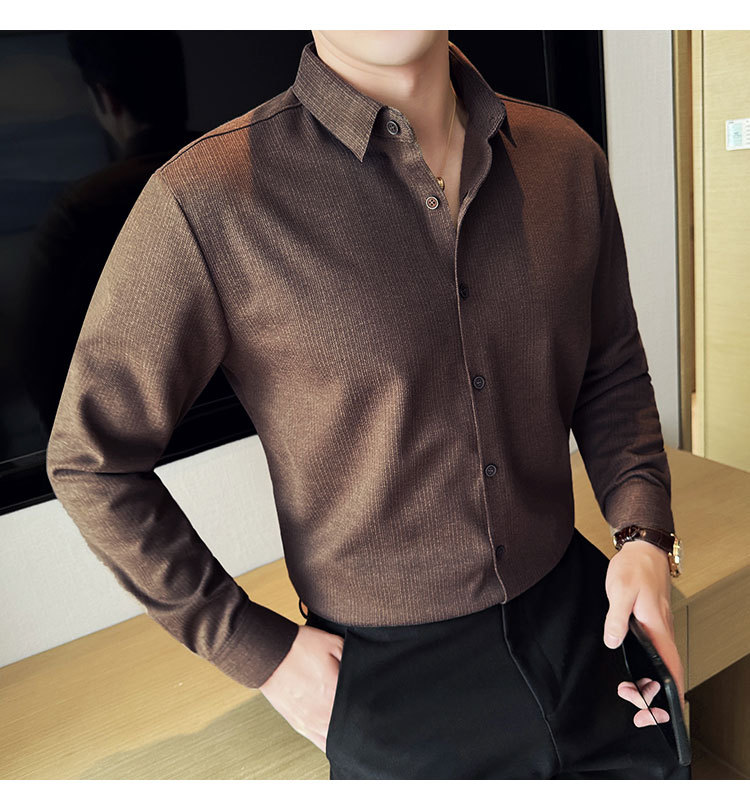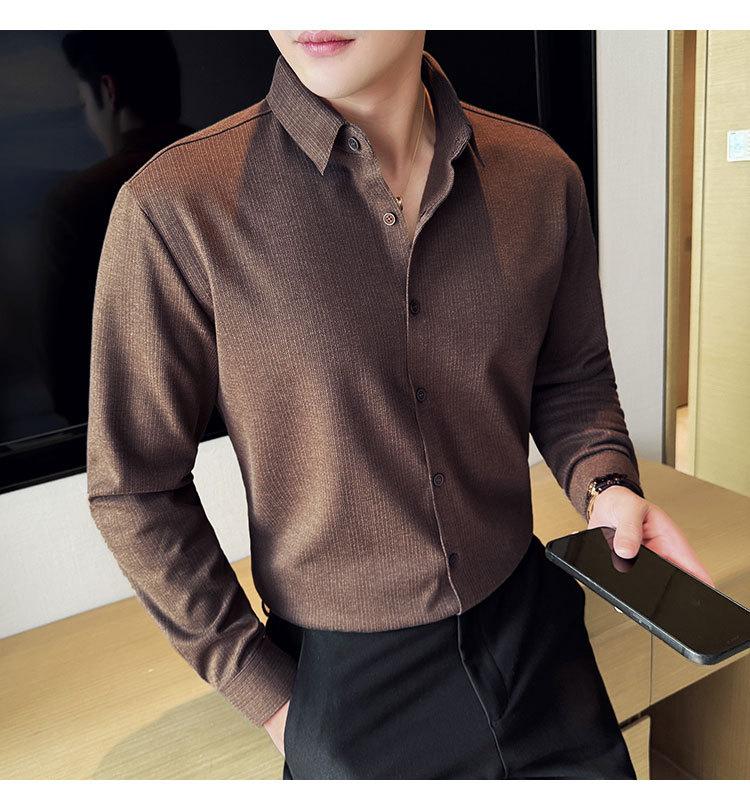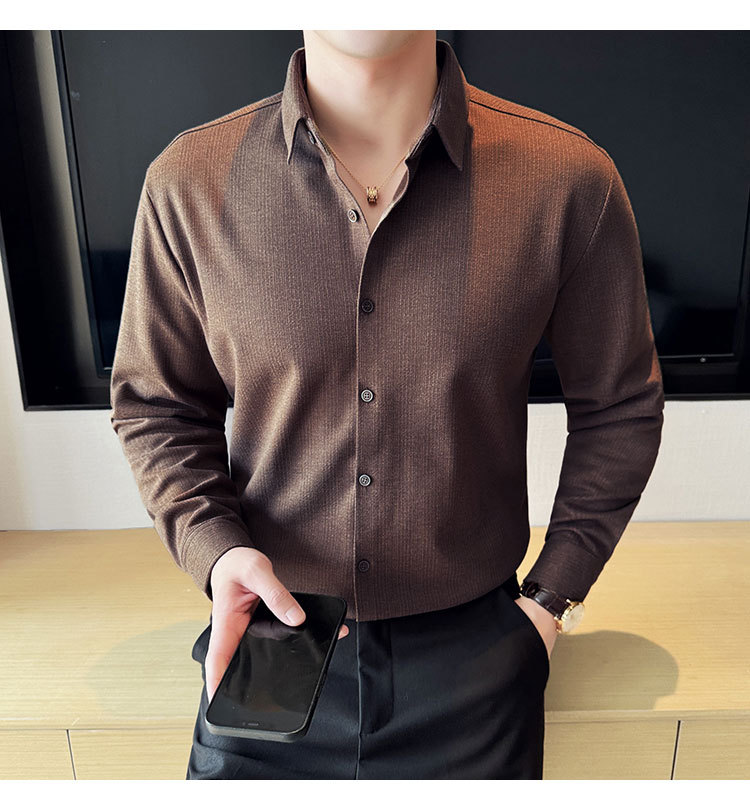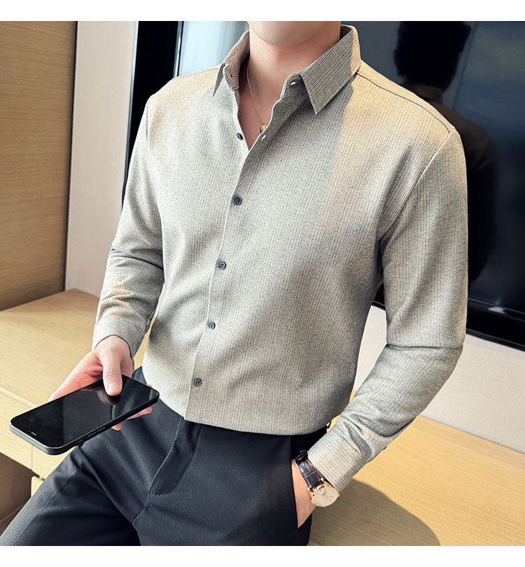 2024 가을과 겨울 모직 소재 남성용 긴팔 셔츠베이스 두꺼운 셔츠 독특한 비즈니스 캐주얼 트레이스 셔츠 남성 스타일