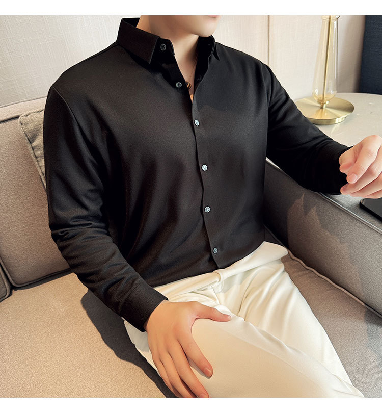 2024 가을과 겨울 모직 소재 남성용 긴팔 셔츠베이스 두꺼운 셔츠 독특한 비즈니스 캐주얼 트레이스 셔츠 남성 스타일스토어 가기