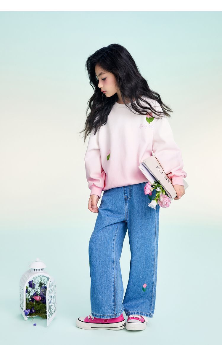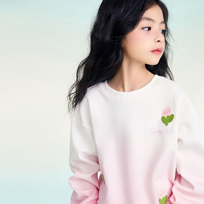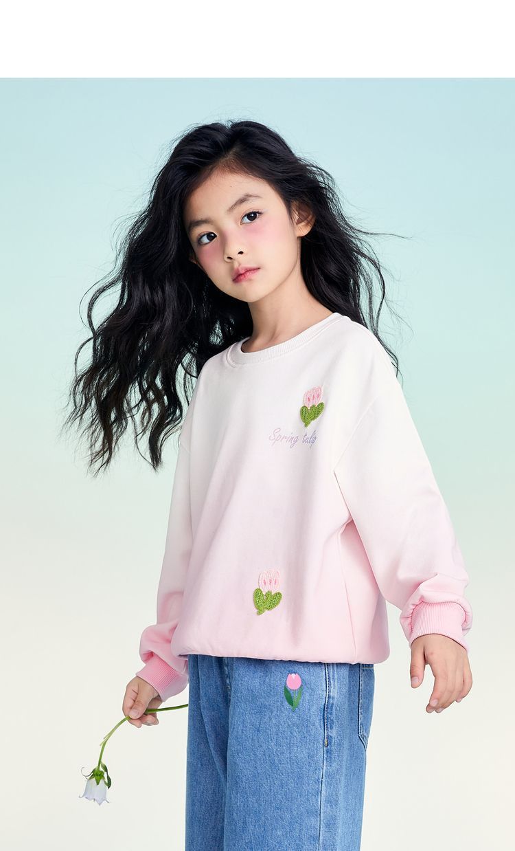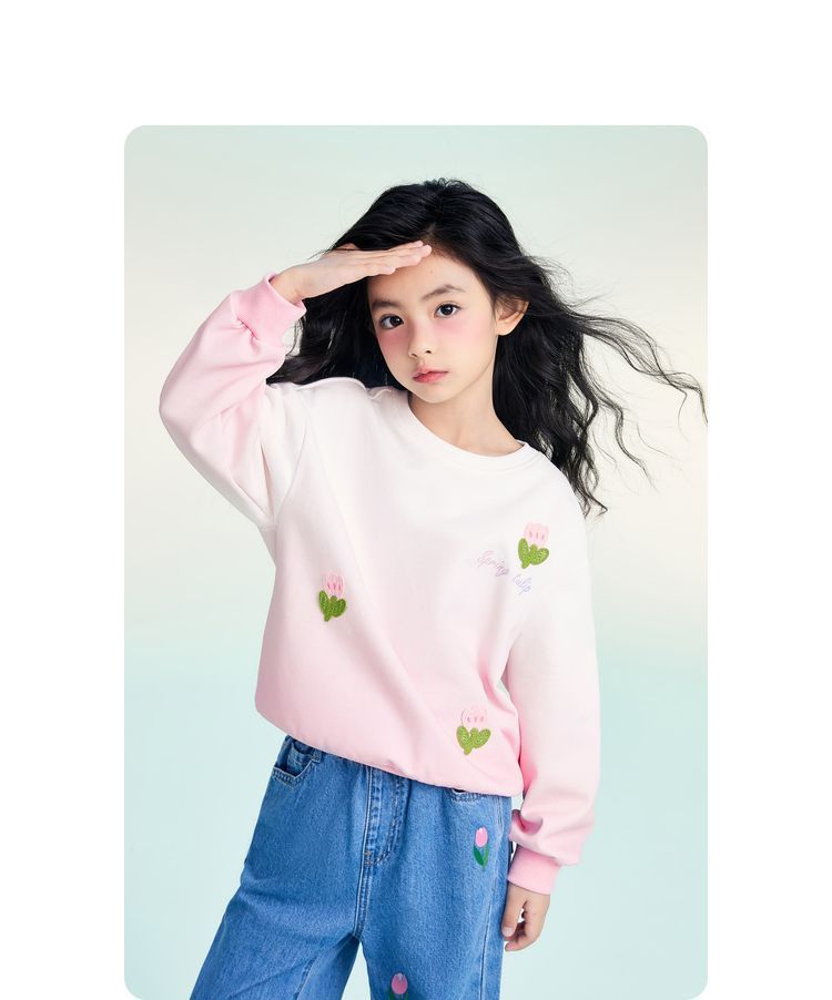 소녀 스웨트 셔츠 가을 2025 새로운 한국식 어린이 만화 자수 그라디언트 색상 변경 긴 소매 탑스토어 가기