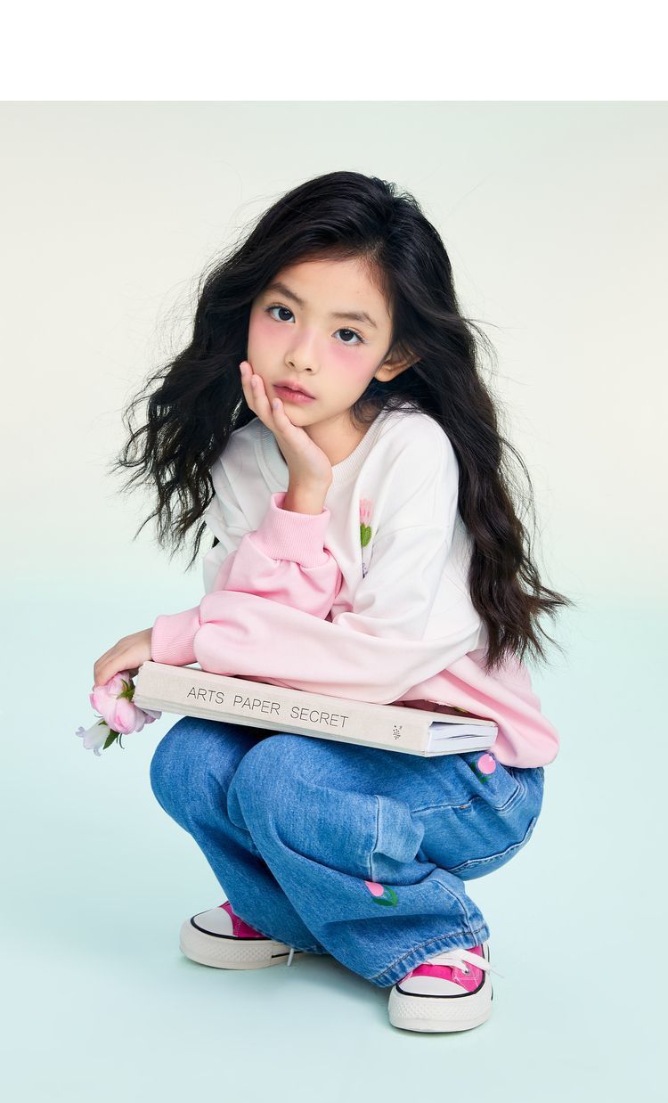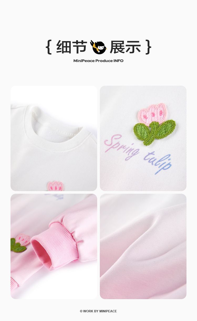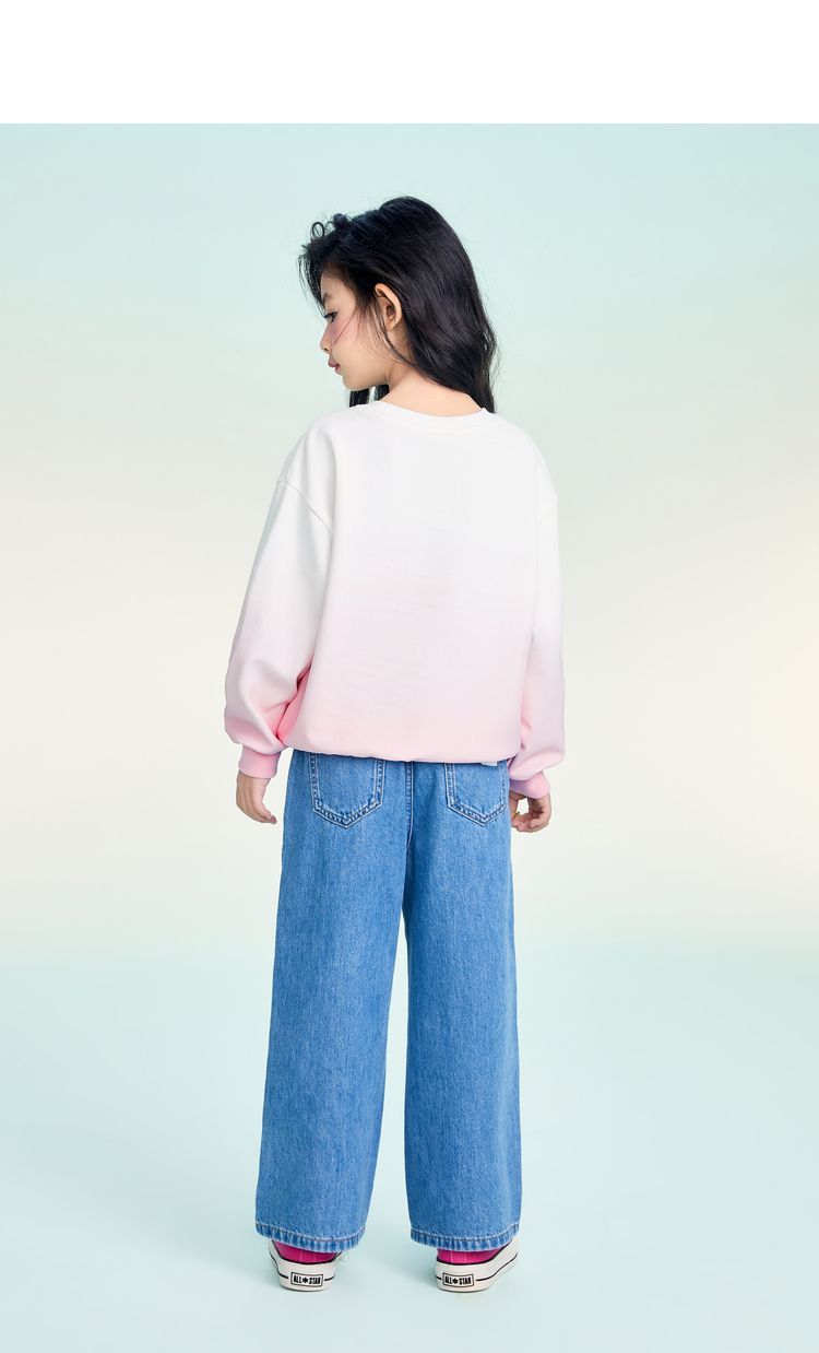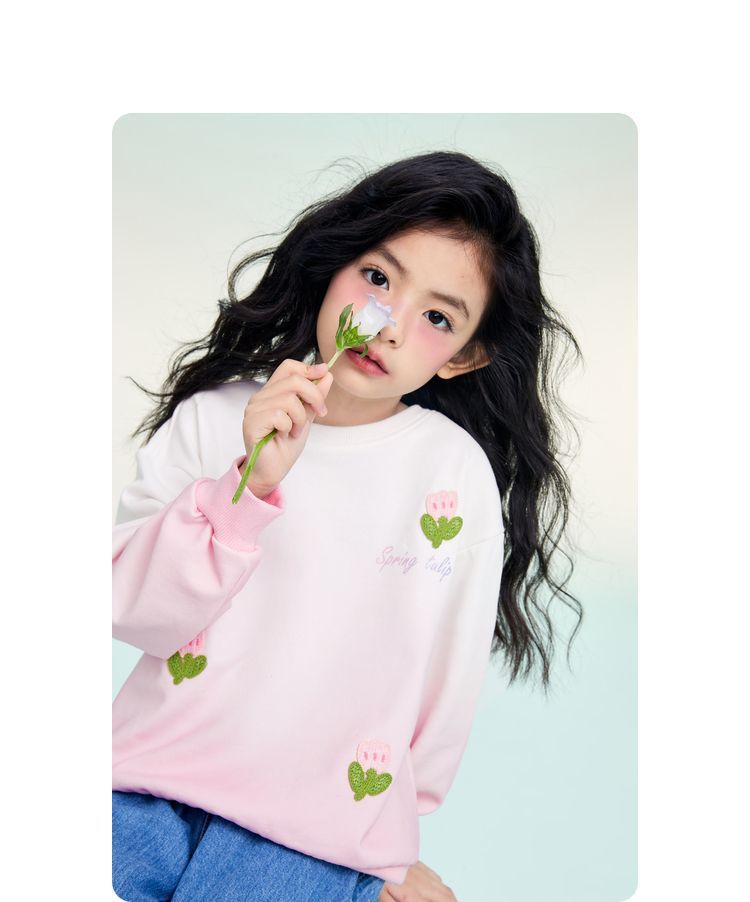소녀 스웨트 셔츠 가을 2025 새로운 한국식 어린이 만화 자수 그라디언트 색상 변경 긴 소매 탑스토어 가기