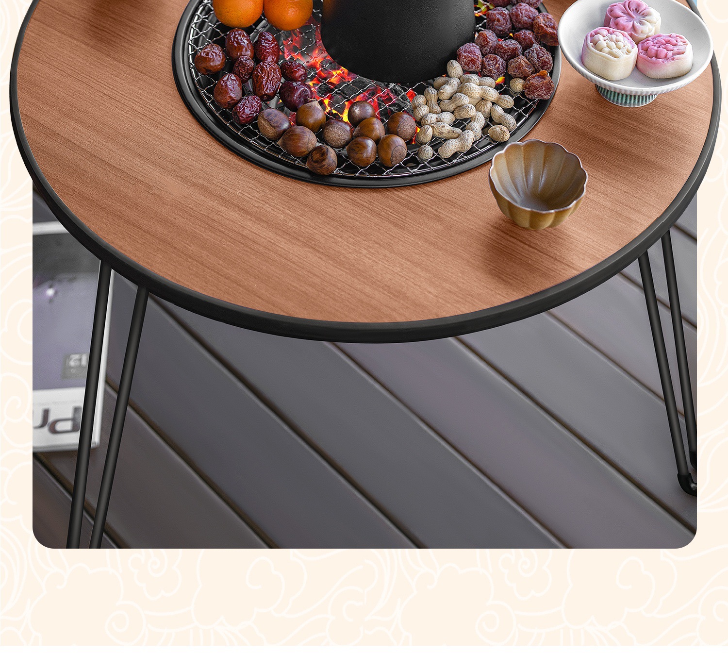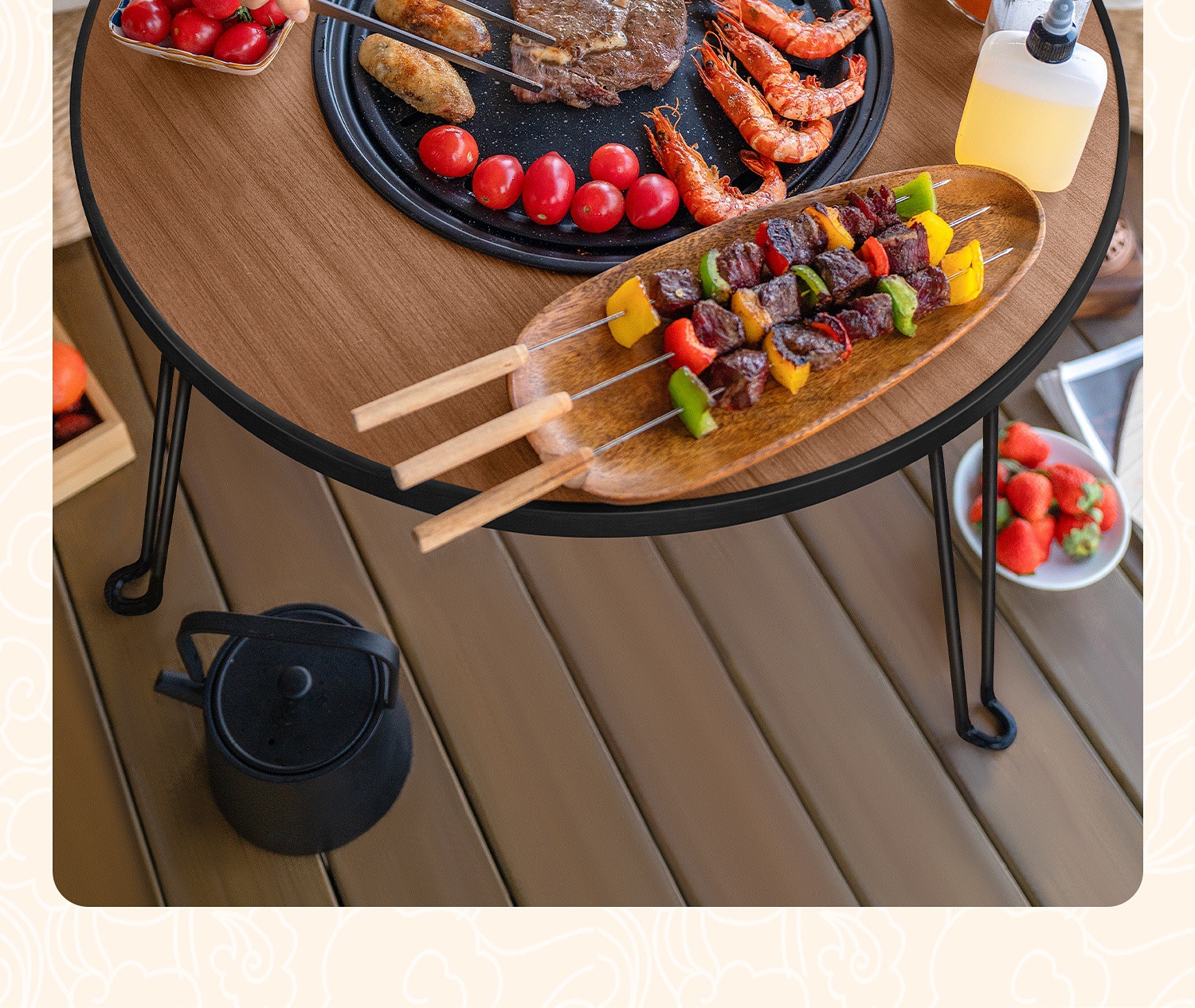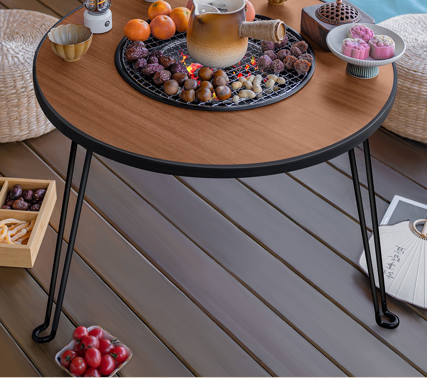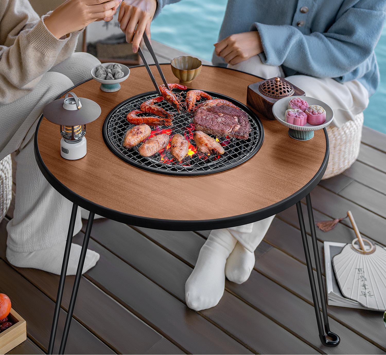 • 두꺼운 나뭇결 난로 원형 테이블(그릴 세트 + 수납 가방)