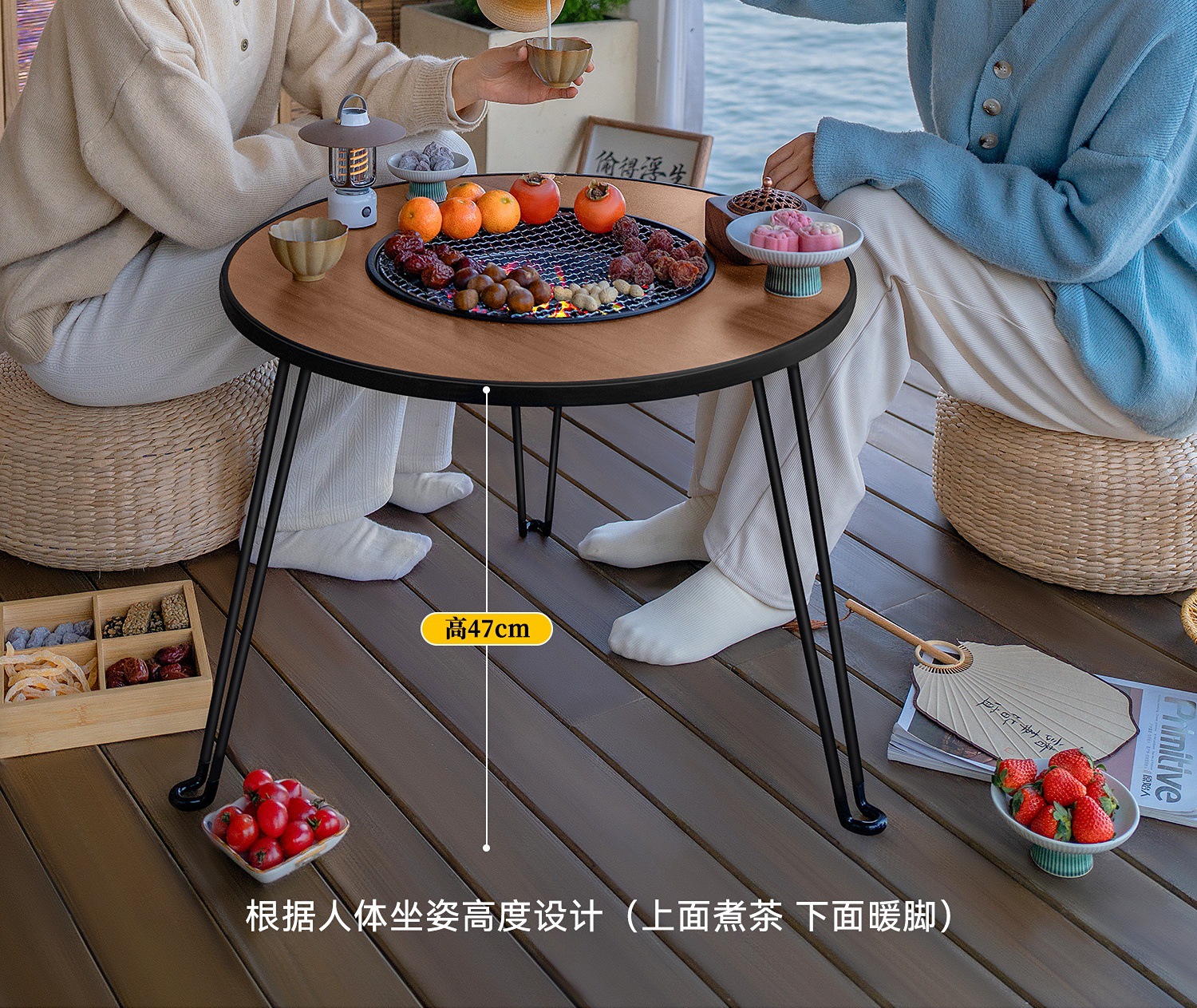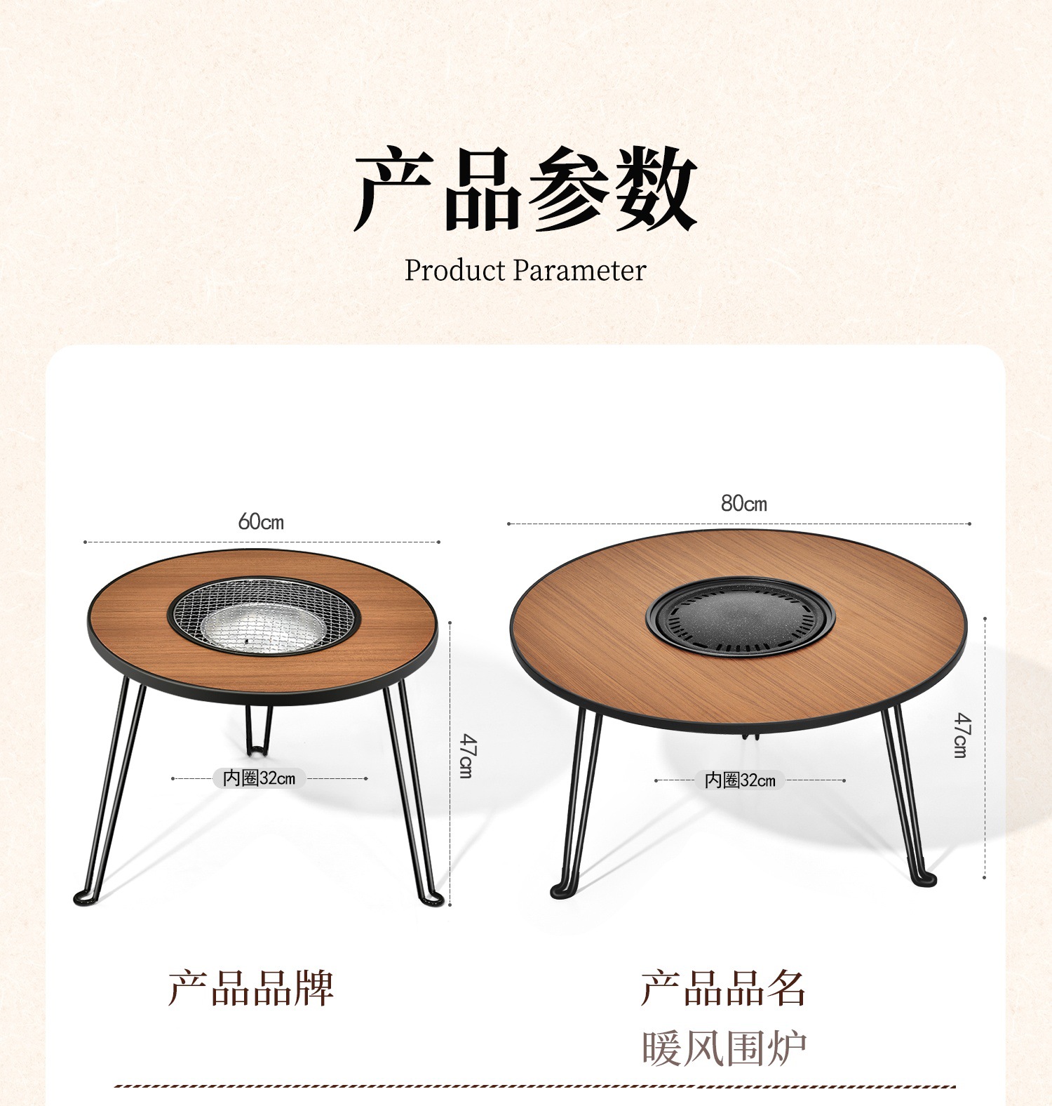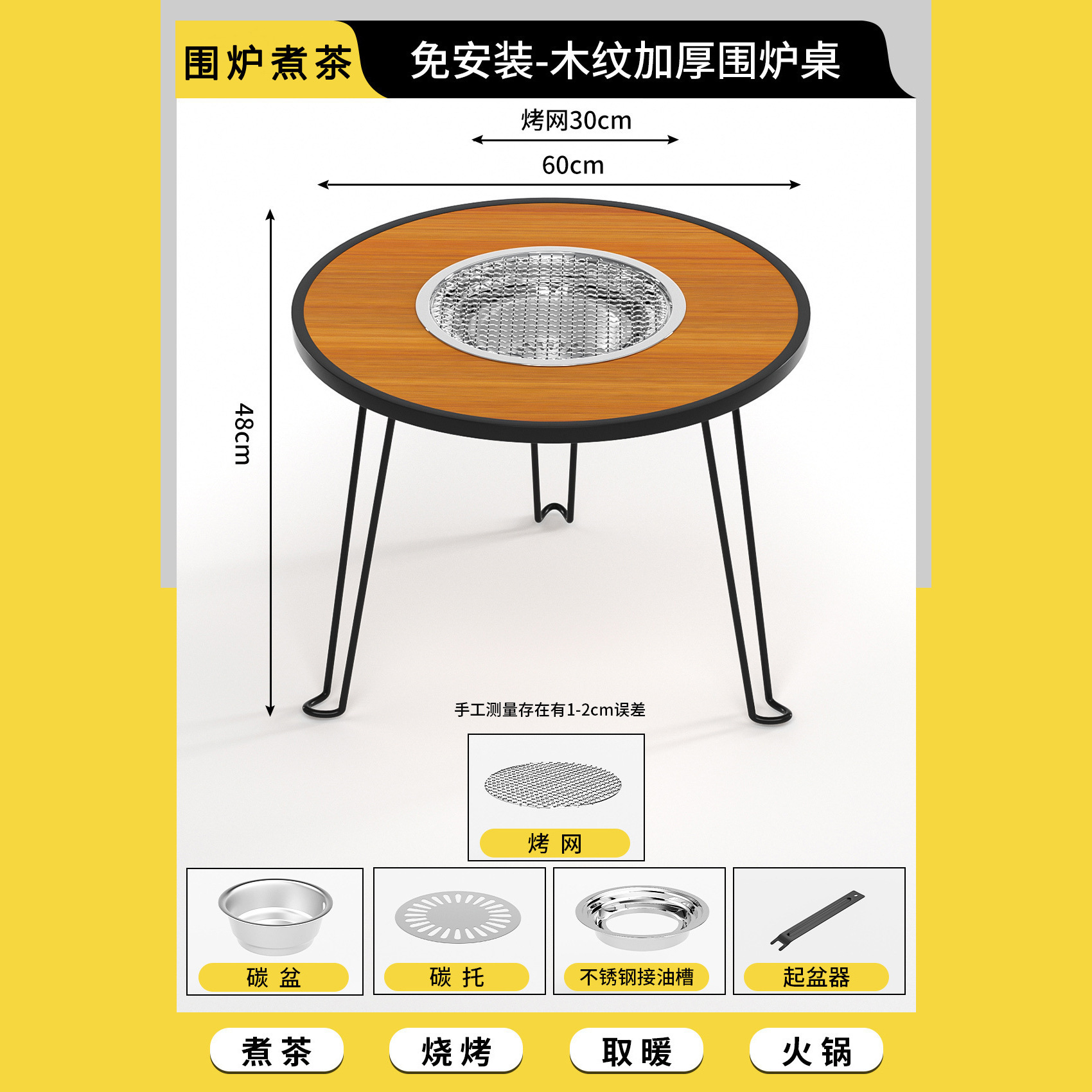 • 두꺼운 나뭇결 난로 원형 테이블(그릴 세트 + 수납 가방)