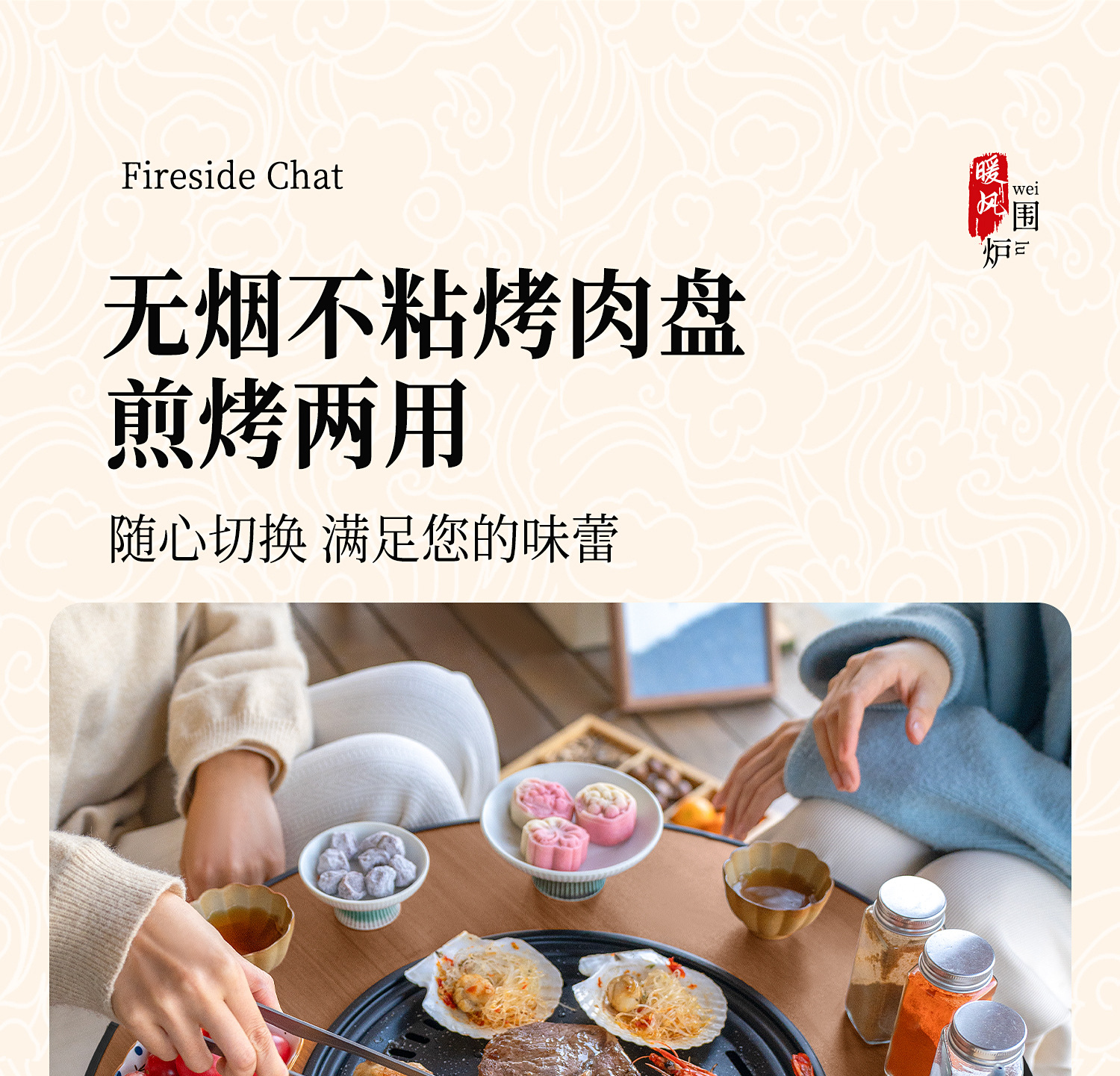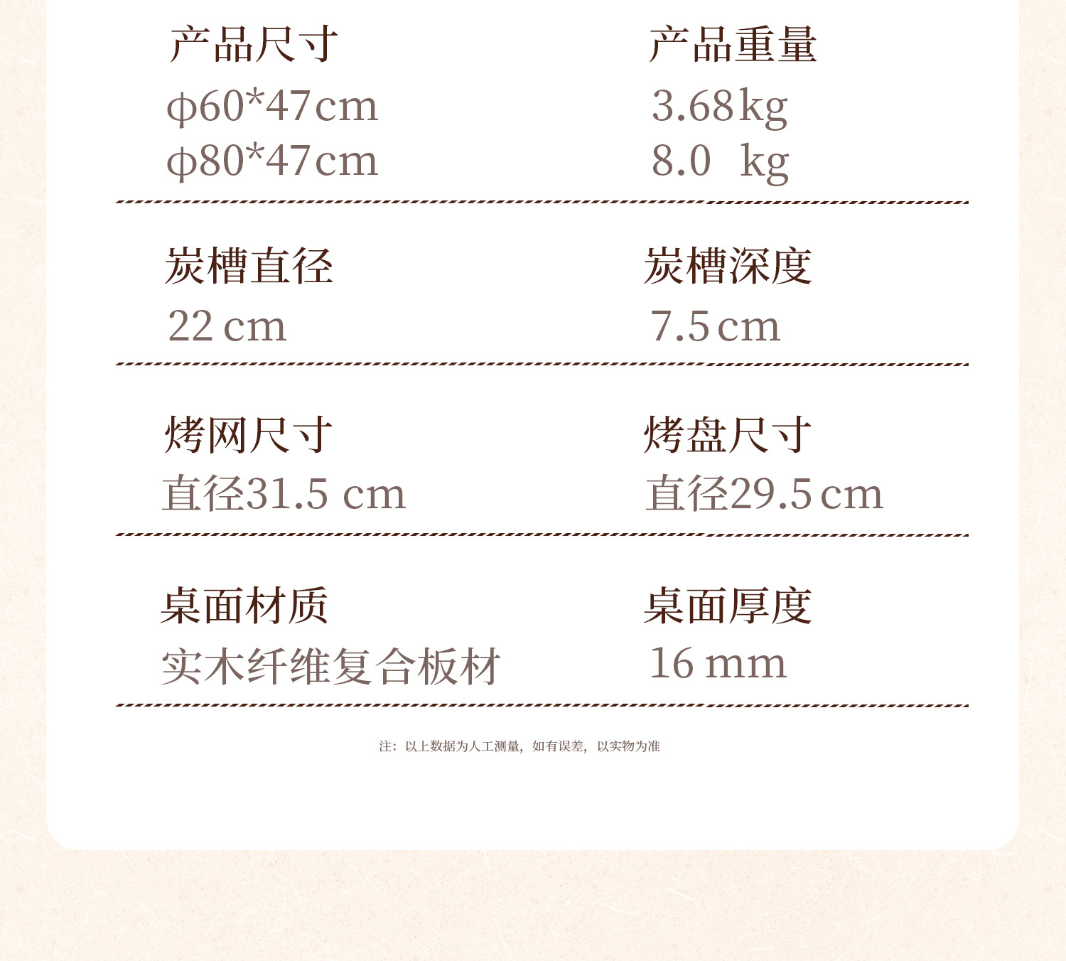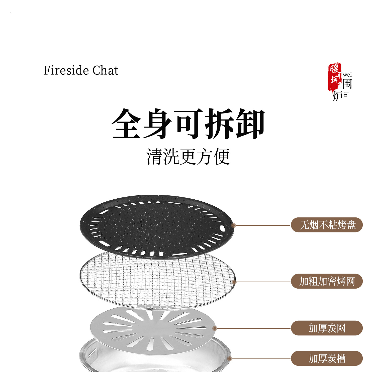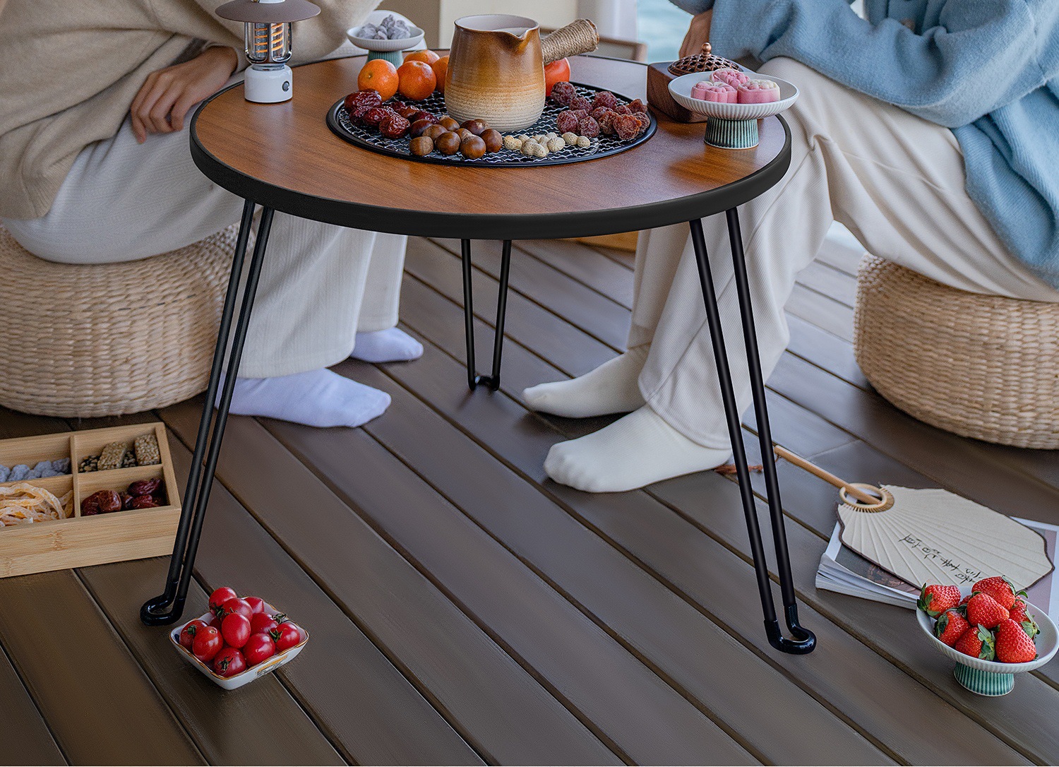 • 두꺼운 나뭇결 난로 원형 테이블(그릴 세트 + 수납 가방)