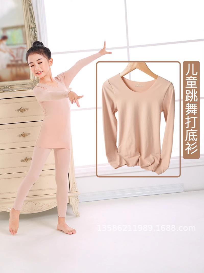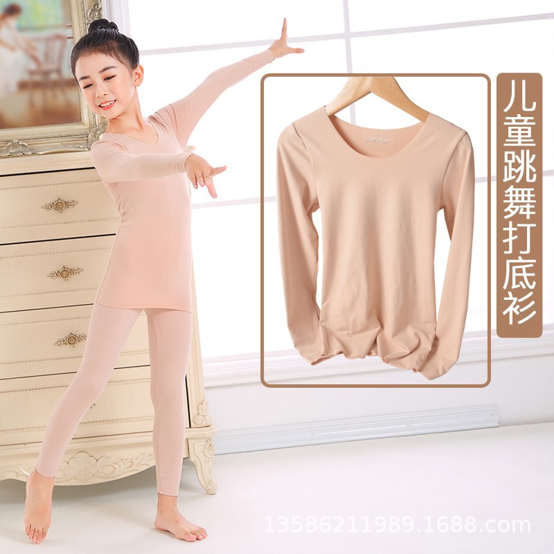 어린이 살색베이스 코트 보이지 않는 의류 소녀 댄스 베이스 셔츠 벨벳 속옷 세트 가을과 겨울 스킨 컬러 따뜻한 의류