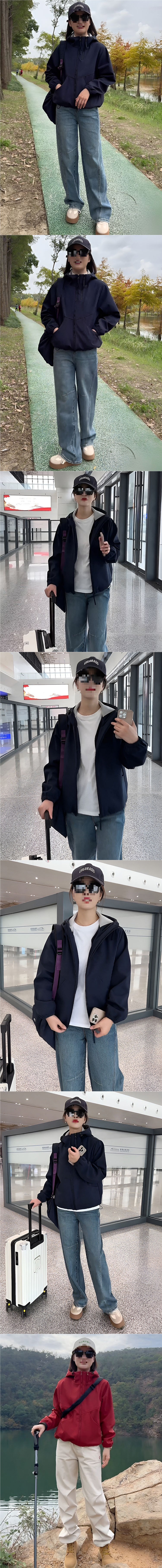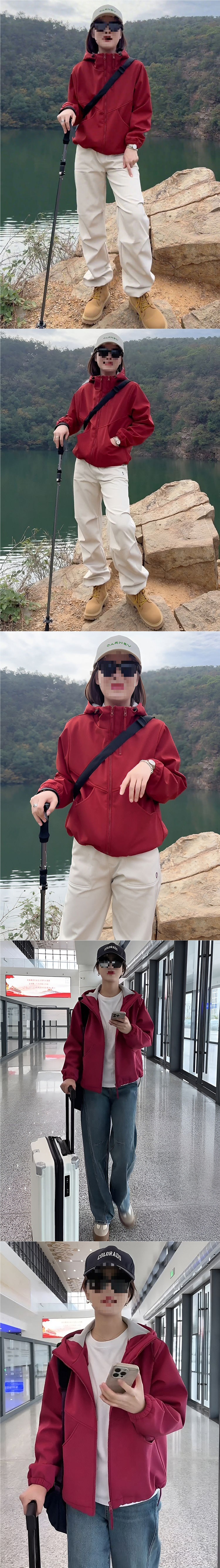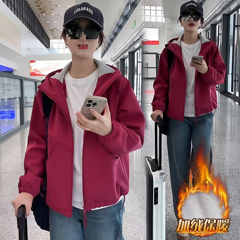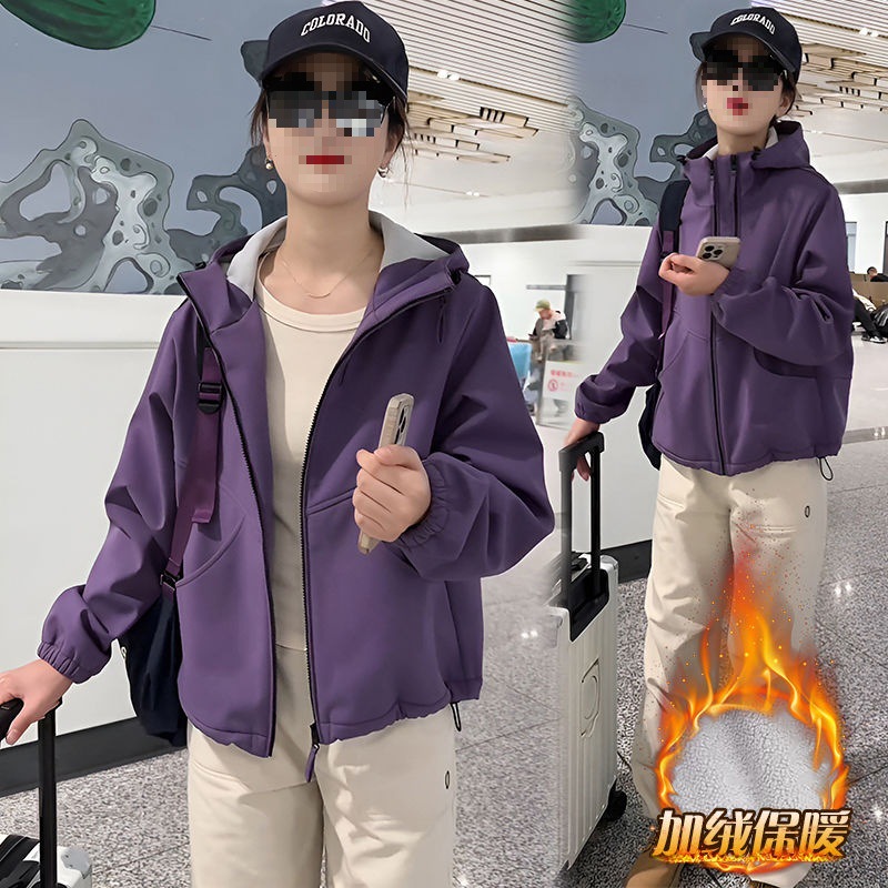 기모 두꺼운 후드 더블 지퍼 재킷 여성의 2024 가을과 겨울 새로운 스타일 작은 재킷 탑스토어 가기