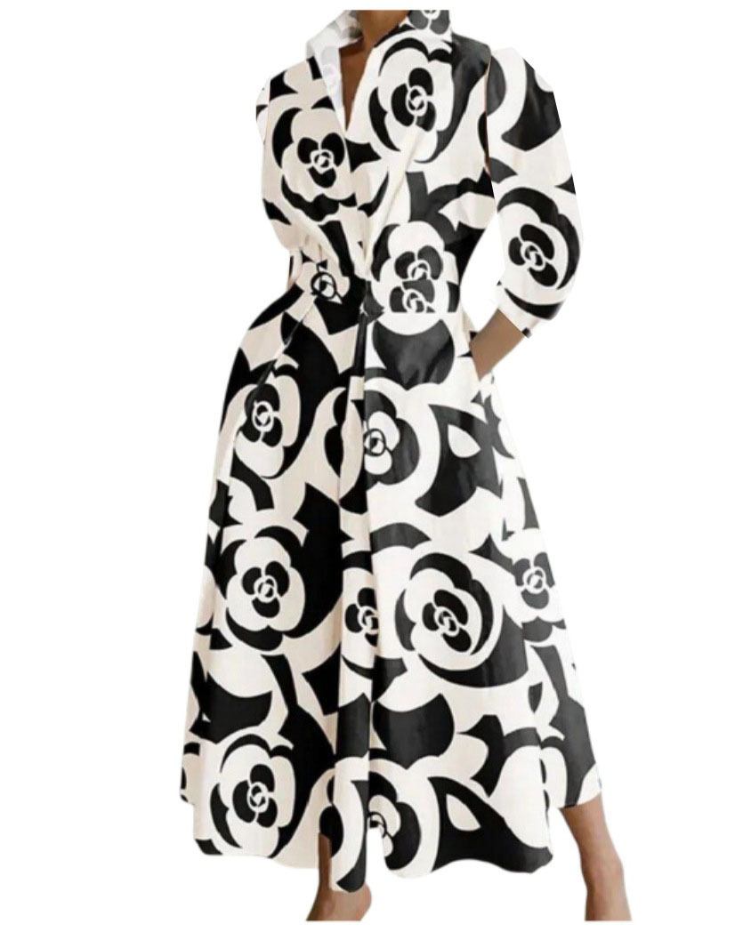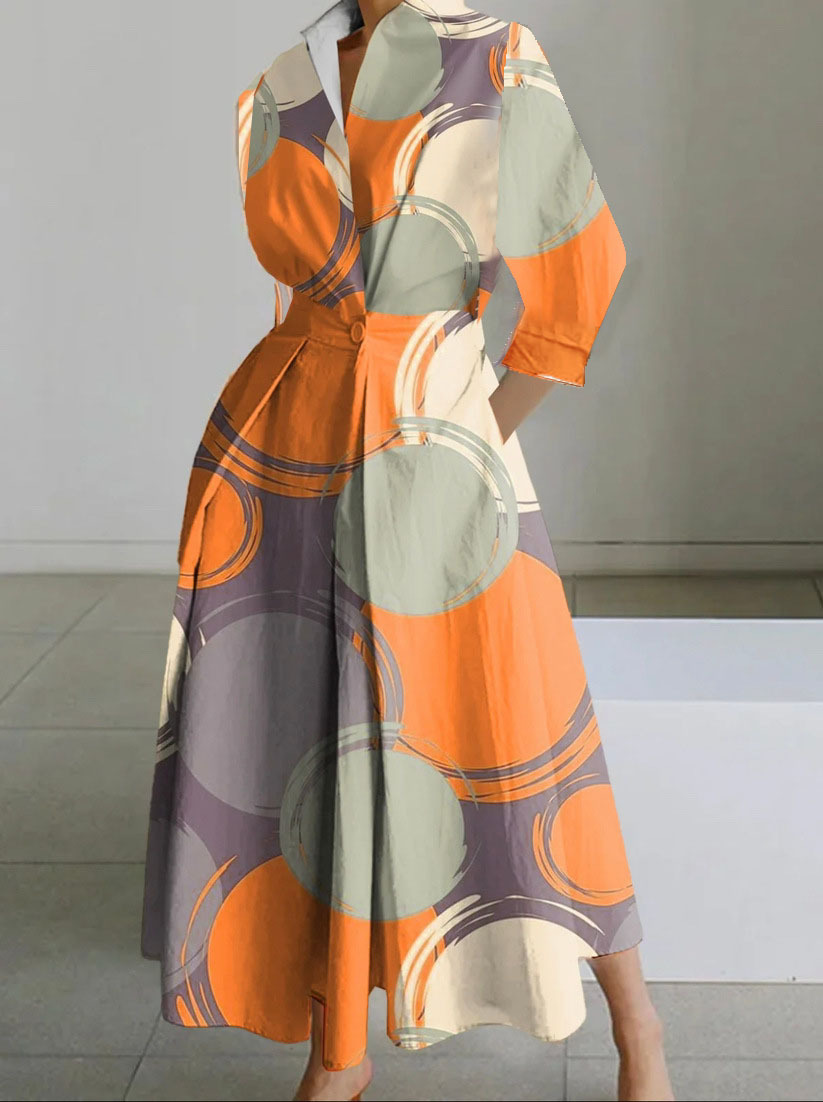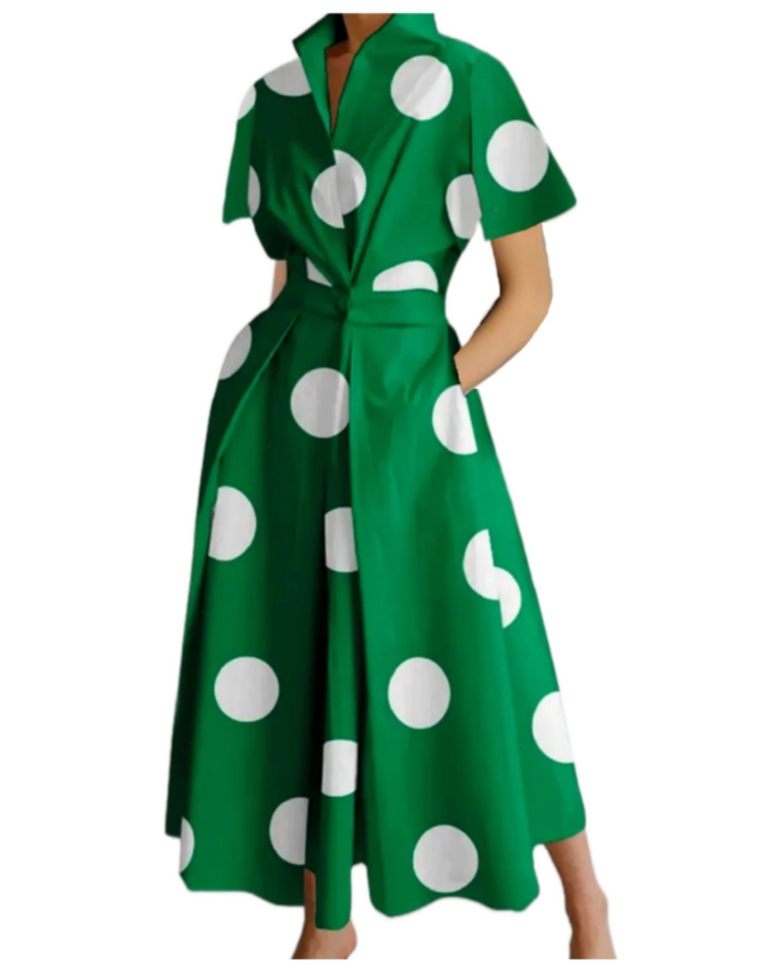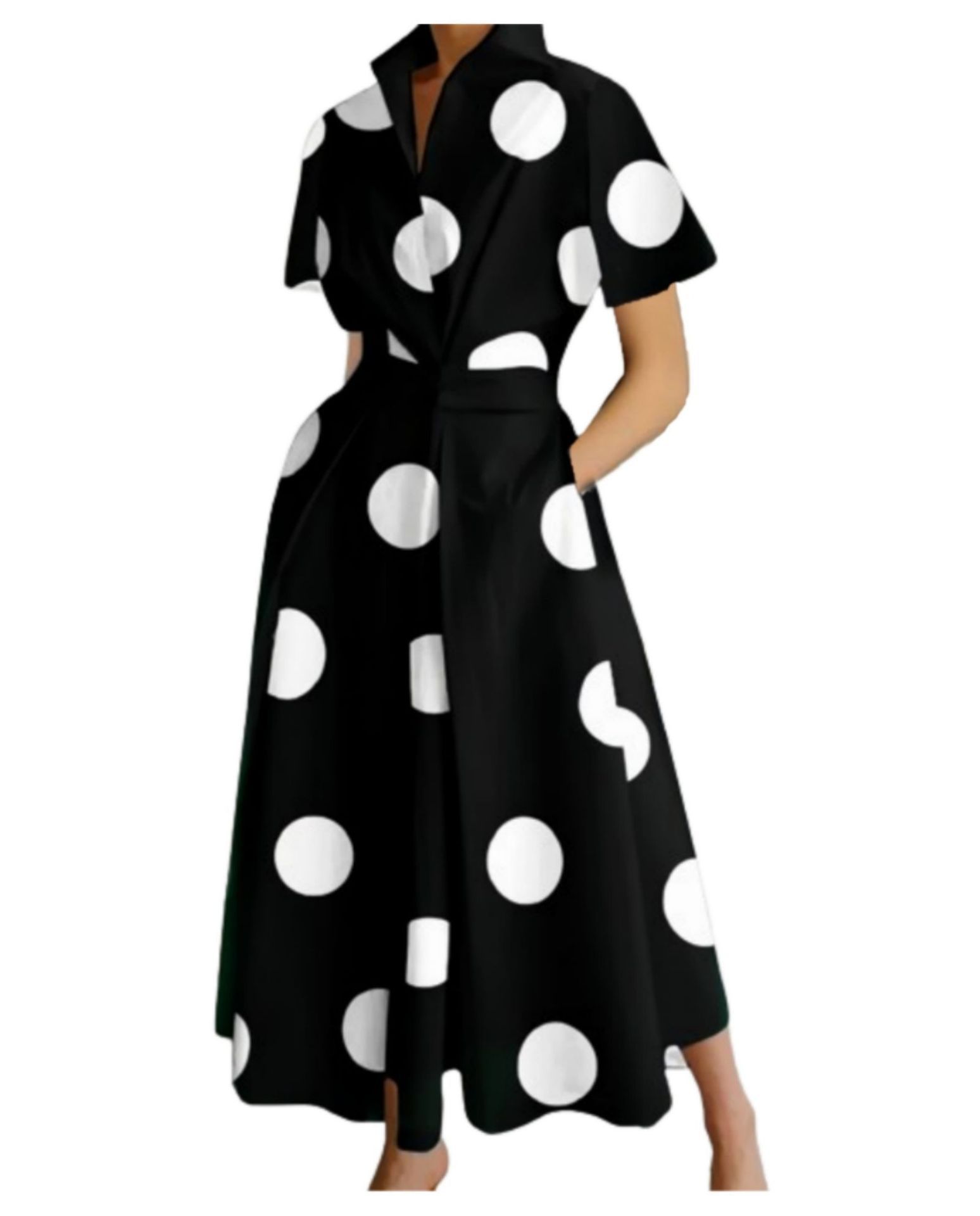 국경 간 새로운 대외 무역 중세 복고풍 플러스 사이즈 패션 POLO 칼라 느슨한 큰 진자 여성의 원피스 세대 머리카락