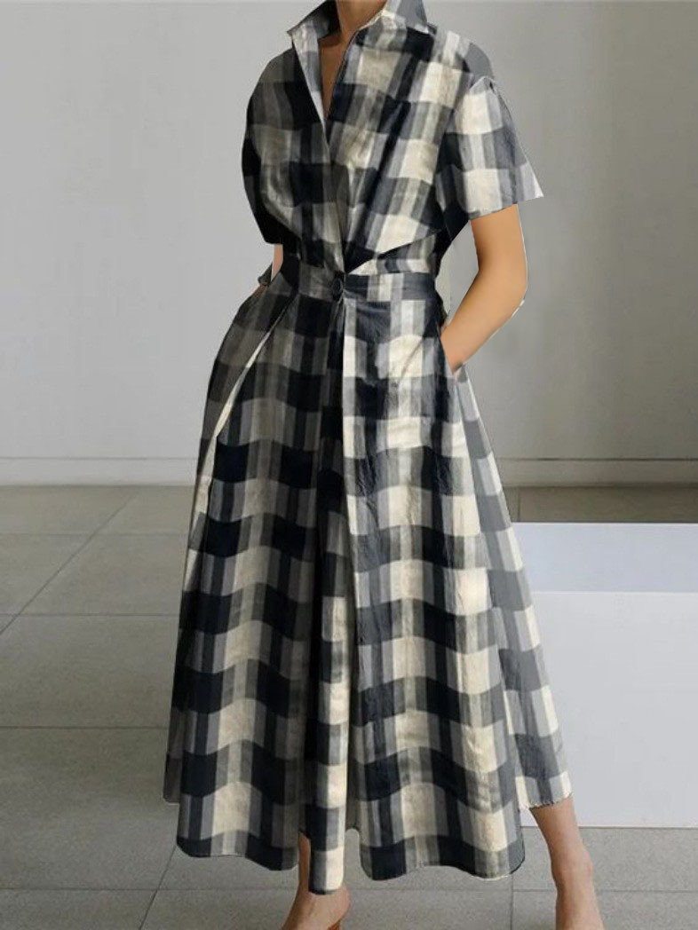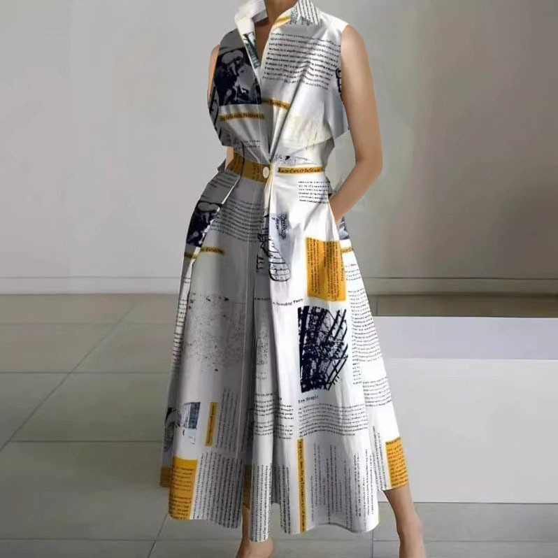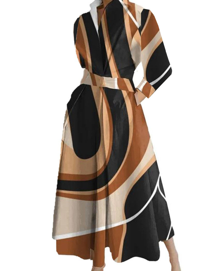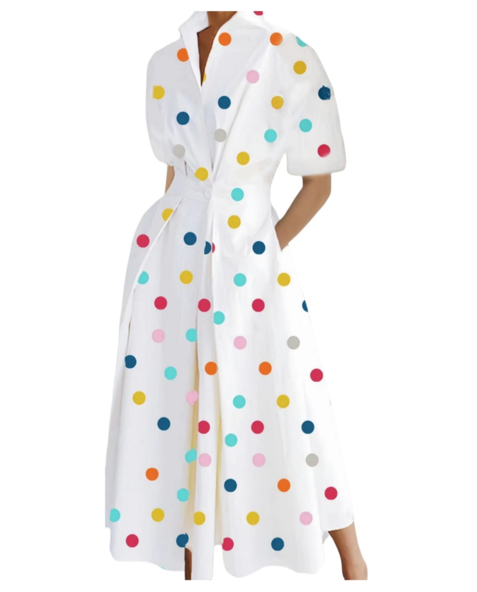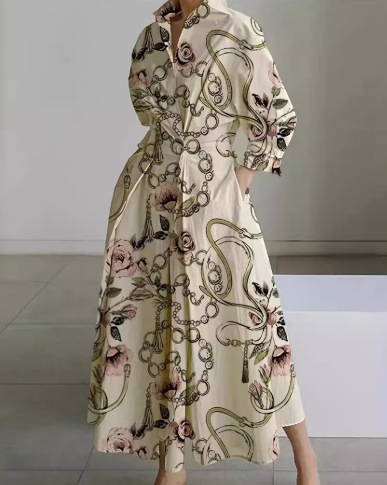 국경 간 새로운 대외 무역 중세 복고풍 플러스 사이즈 패션 POLO 칼라 느슨한 큰 진자 여성의 원피스 세대 머리카락
