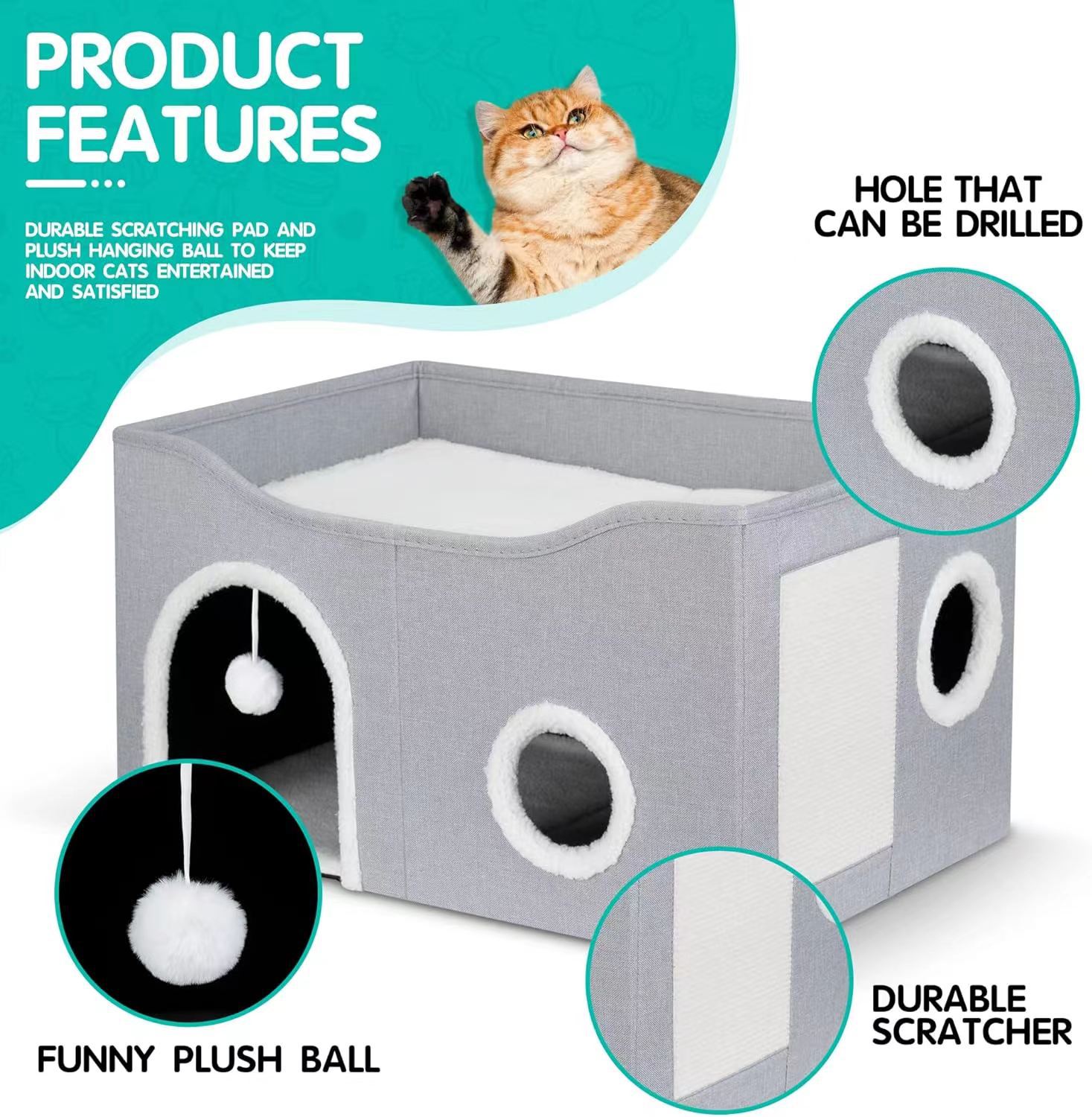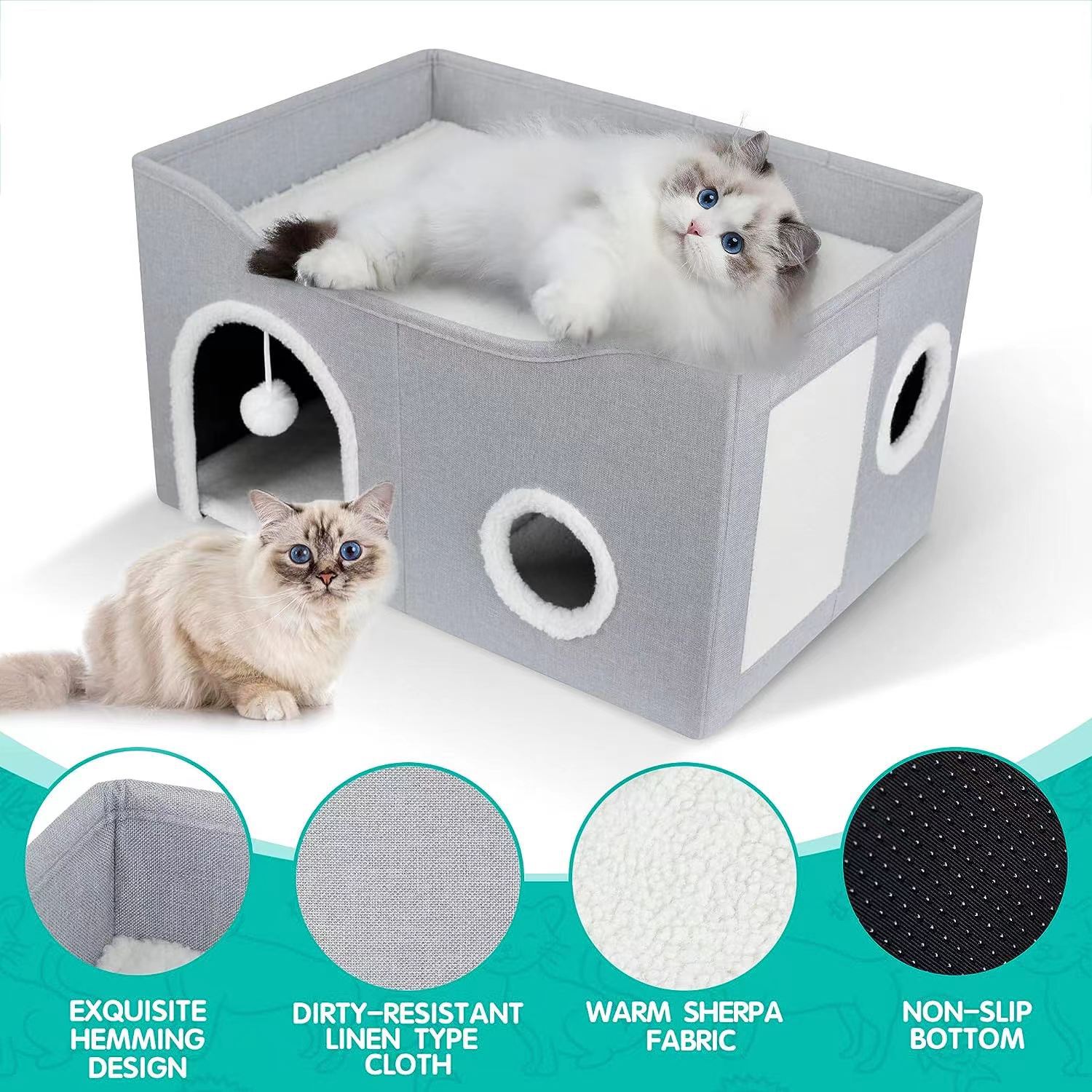 국경을 넘는 인기 판매 대형 접이식 사계절 애완 동물 고양이 둥지 겨울 따뜻한 매트 이동식 및 세탁 가능한 3층 고양이 둥지