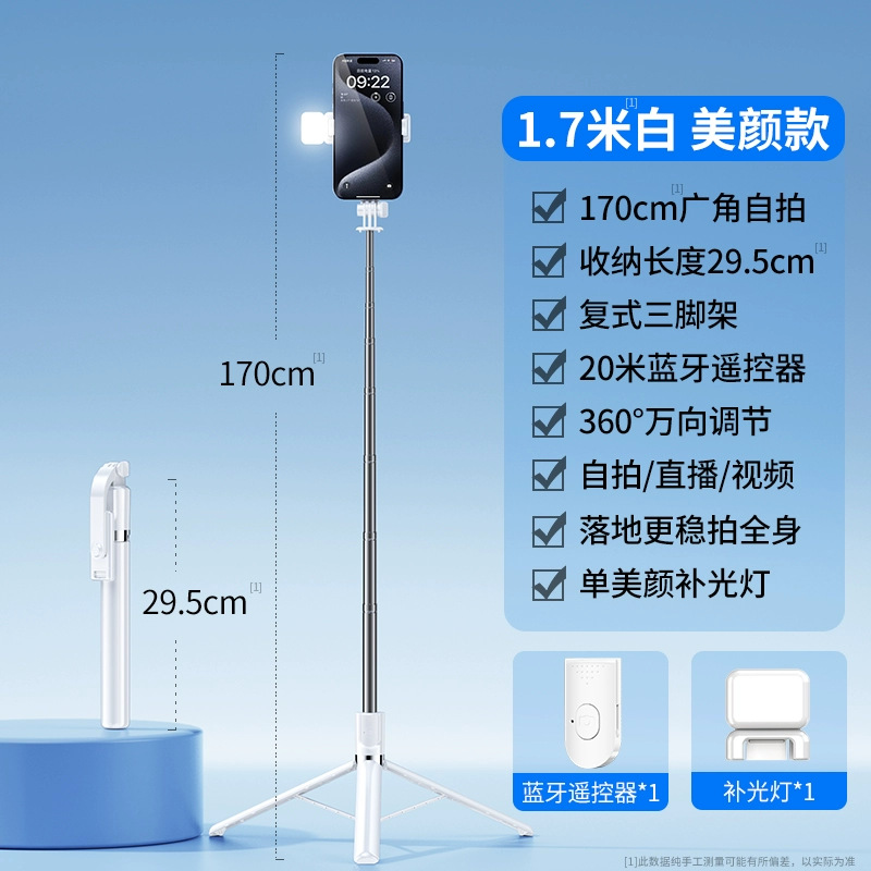 • 1.7m 화이트★뷰티 램프 포함 [일체형 접이식 + 업그레이드된 용골 삼각대 지지대] + 15m 블루투스 리모콘
