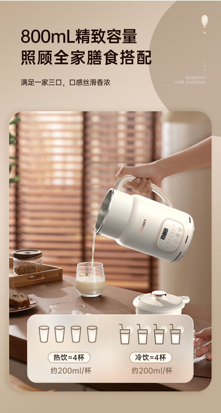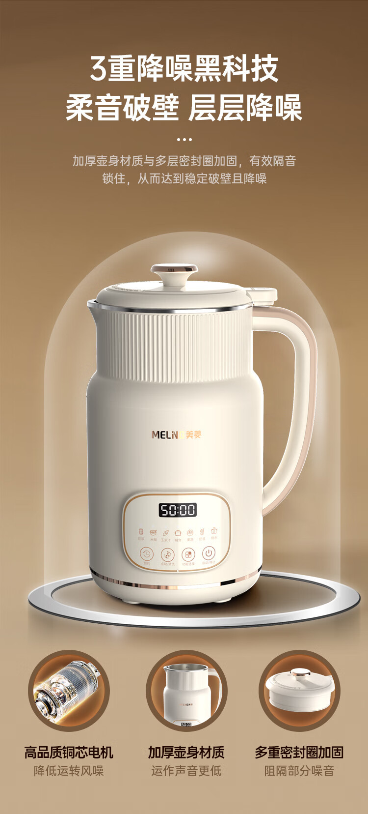 Meiling 벽 파괴 두유 기계 완전 자동 무조리 및 필터링 무음 가정용 0.8L 미니 벽 파괴 두유 기계 MQ-C86
