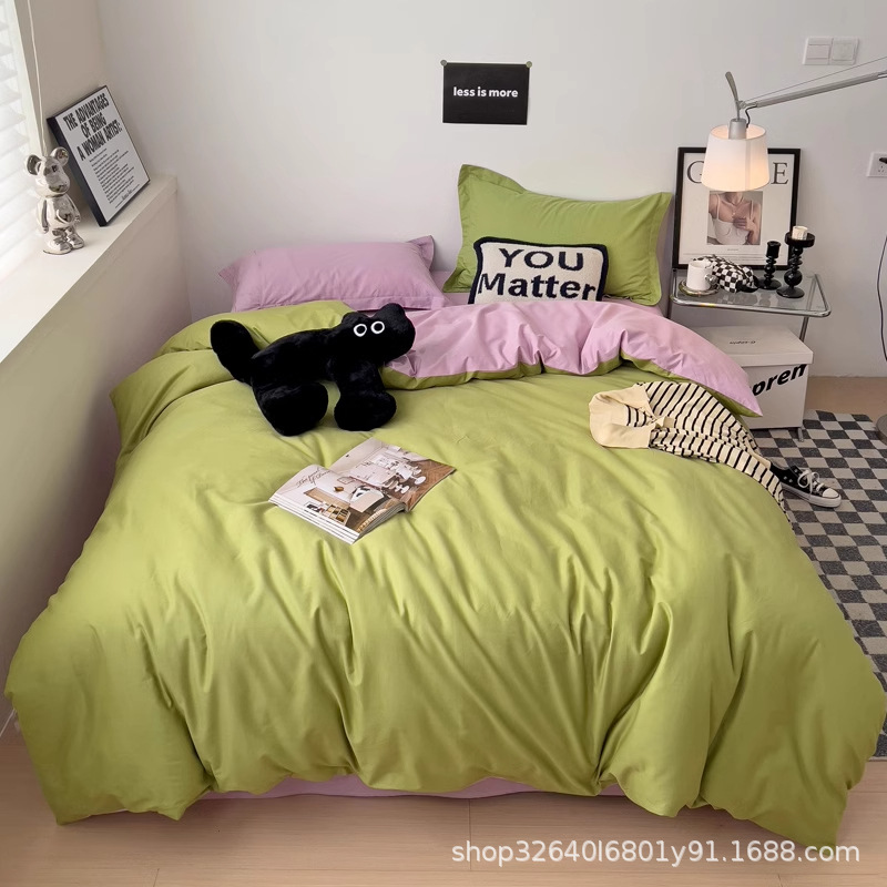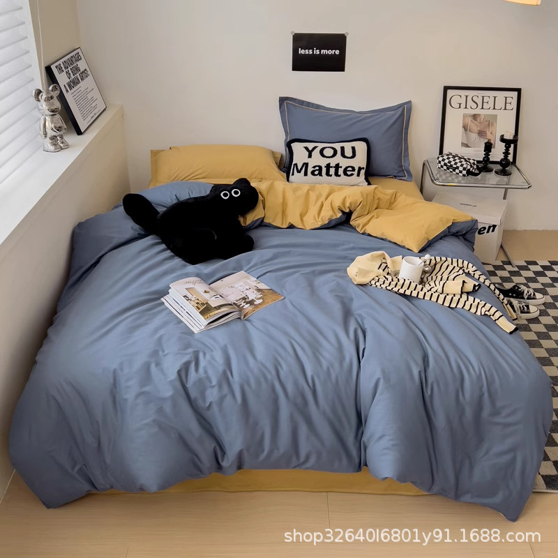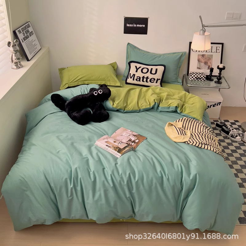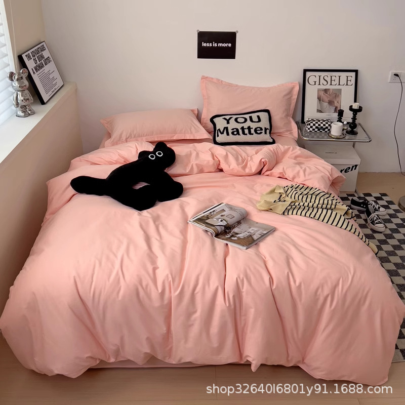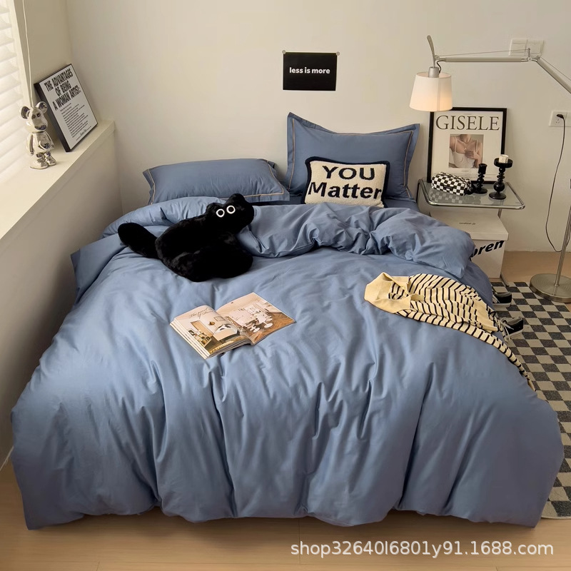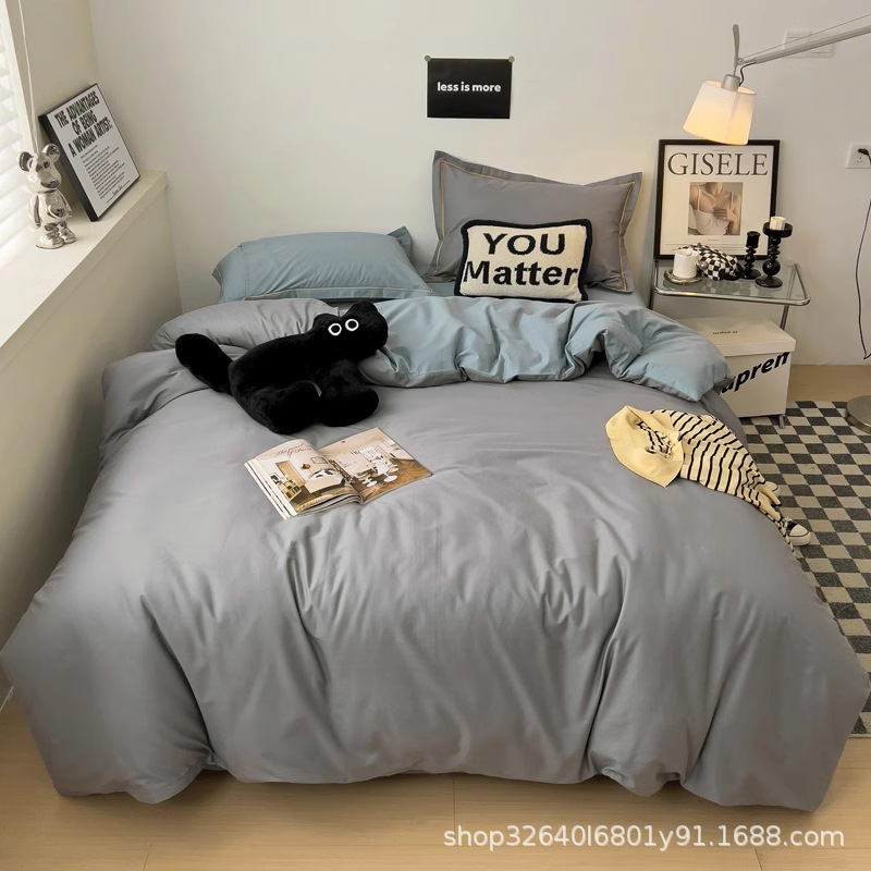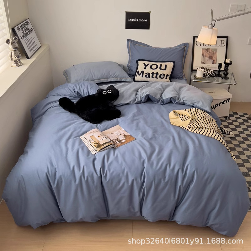 퓨어 코튼 솔리드 컬러 더블 스타일 4 피스 세트 학생 기숙사 퓨어 코튼 3 피스 세트 퀼트 커버 침구 심플 스타일